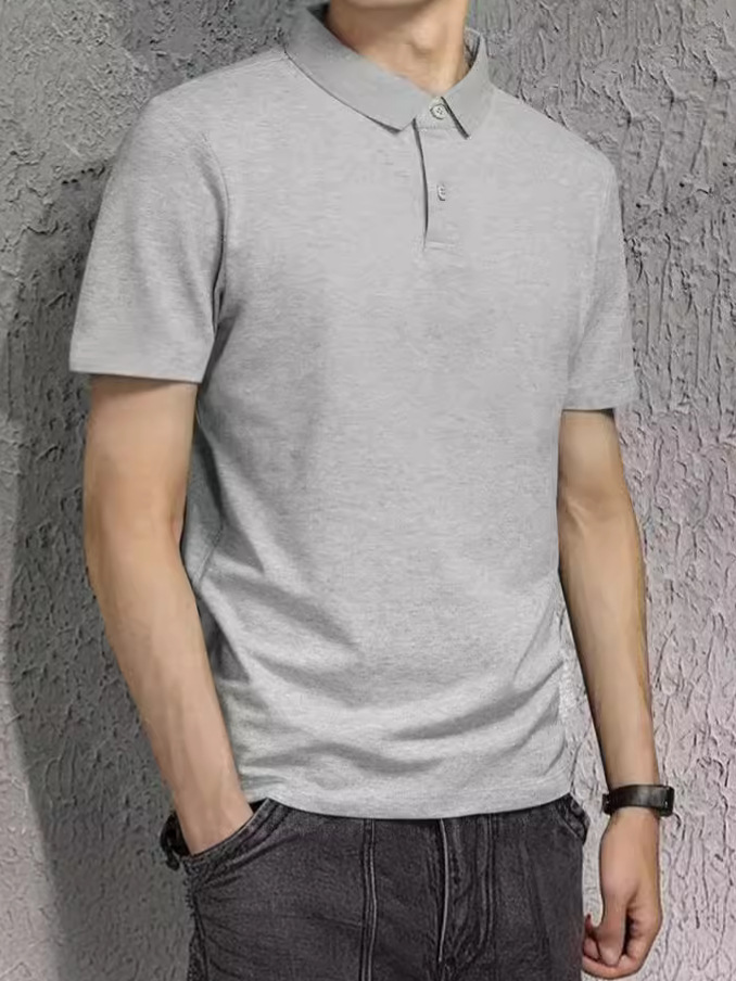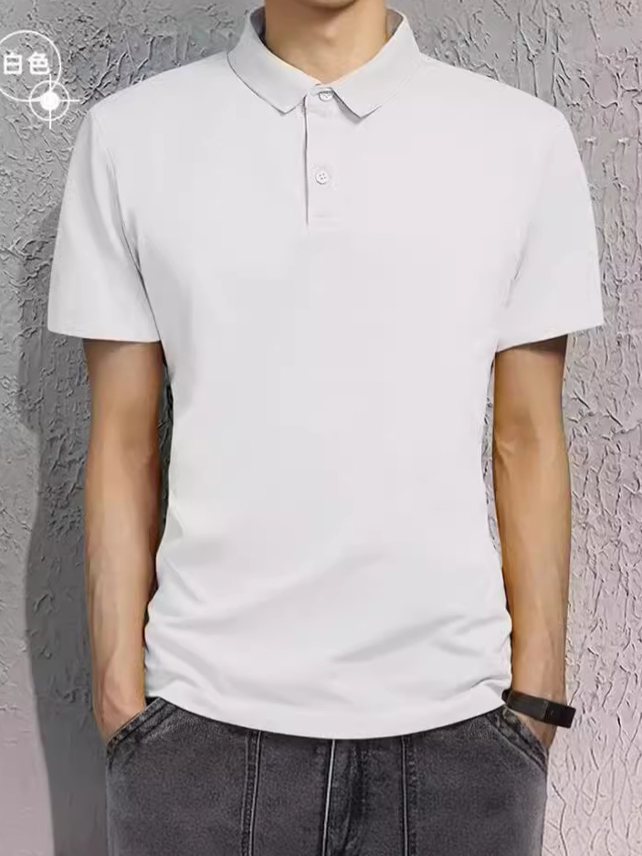 Мужская рубашка с отворотом POLO Летняя сплошная футболка с короткими рукавами свободная повседневная деловая тенденция
