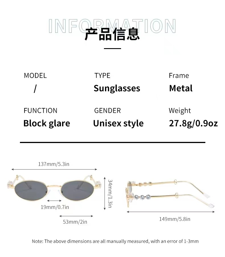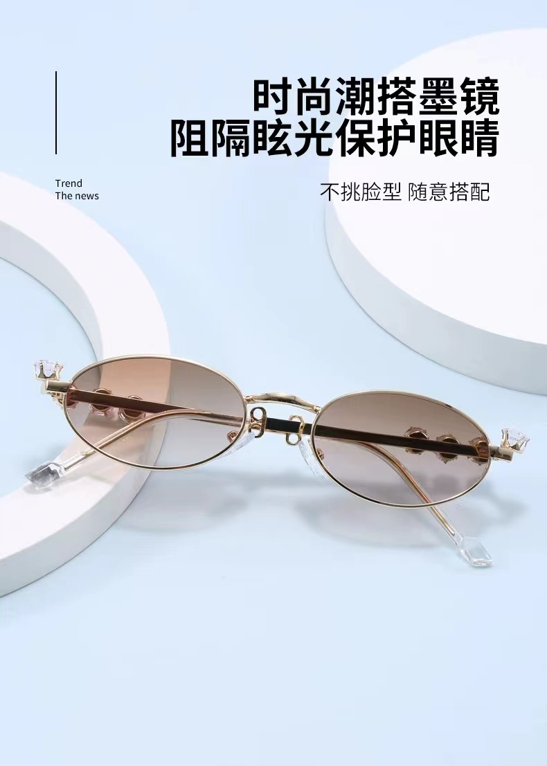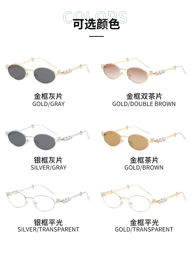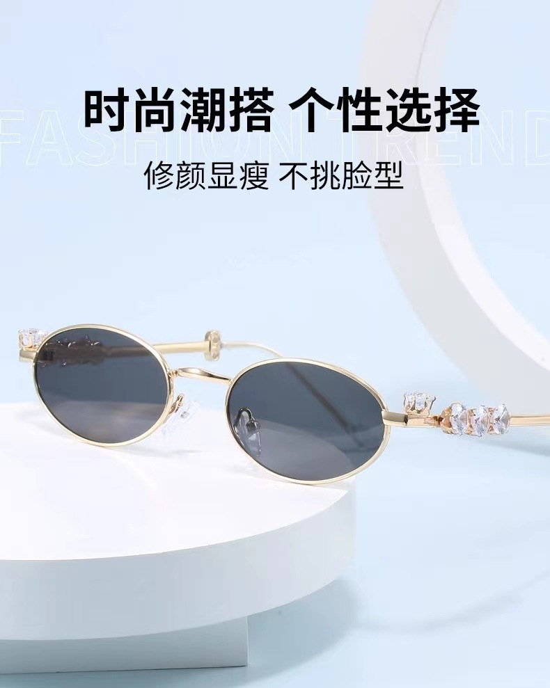 2025 новых винтажных солнцезащитных очков в стиле Y2K с прочной металлической оправой, украшенной стразами, в европейско-американском стиле, с защитой от синего света и без диоптрийных линз.