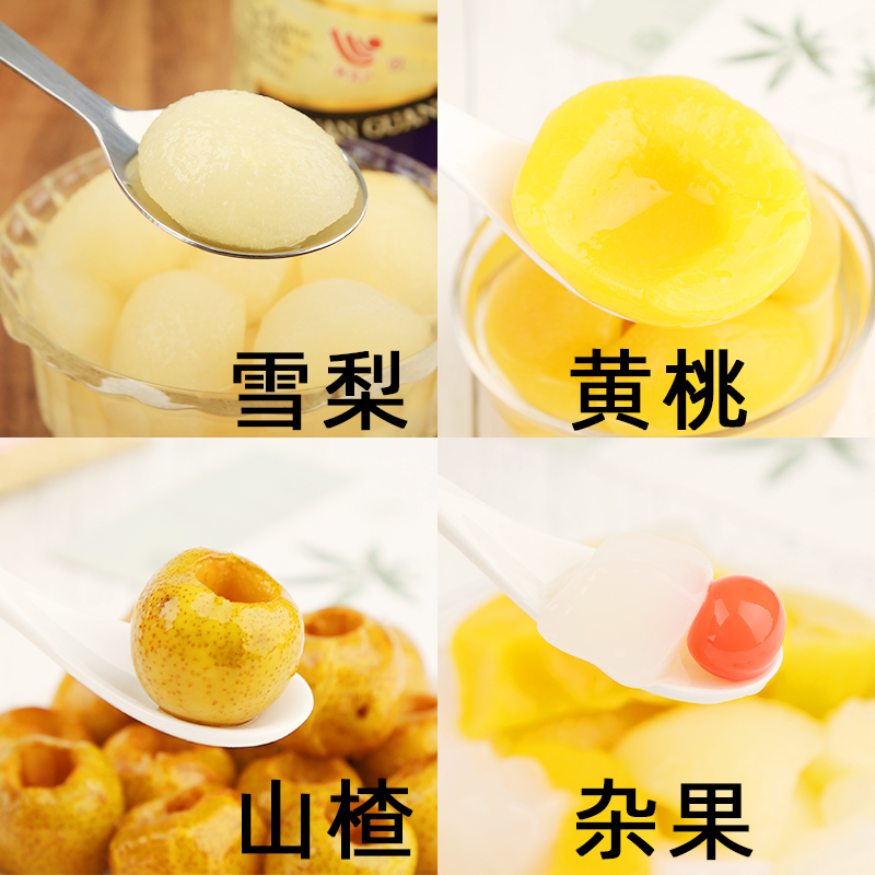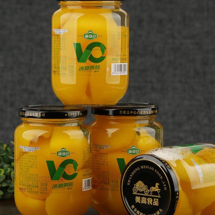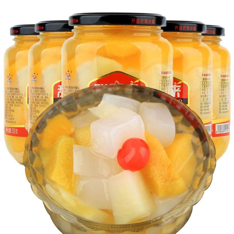 Свежие консервированные желтые персики 510 гX4 банки с сахарной водой желтые персики смешанные фрукты снежная груша большая бутылка консервированный ананас стеклянная бутылка бесплатная доставка
