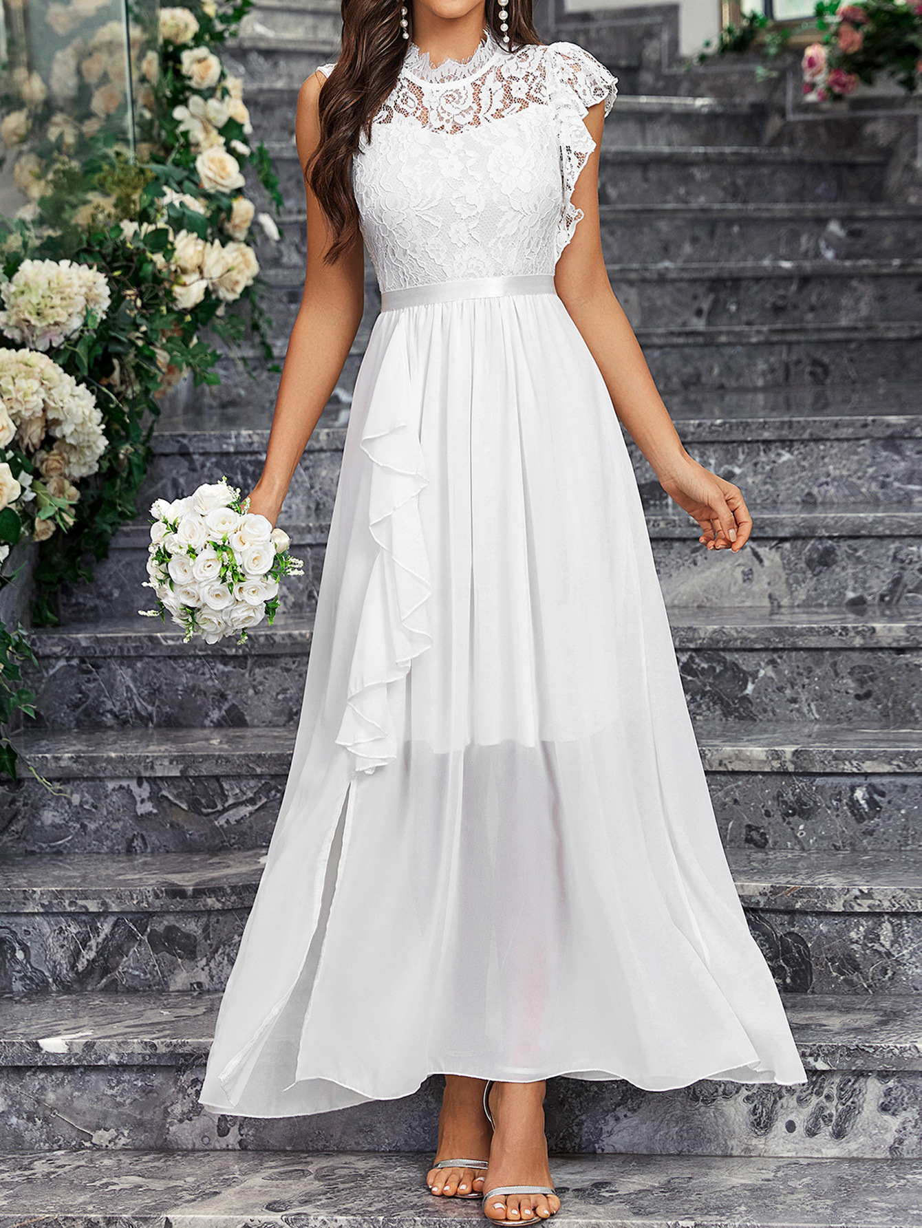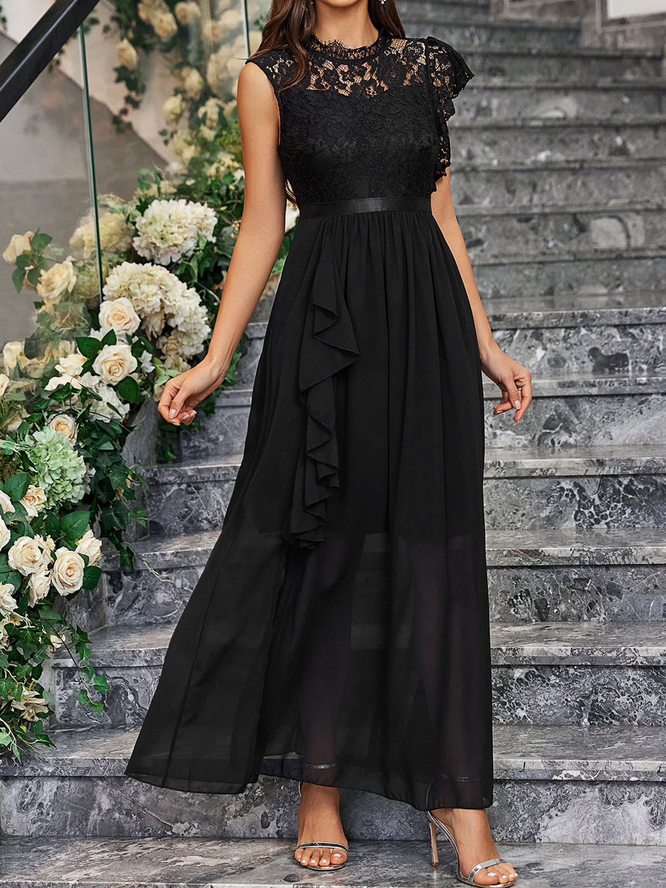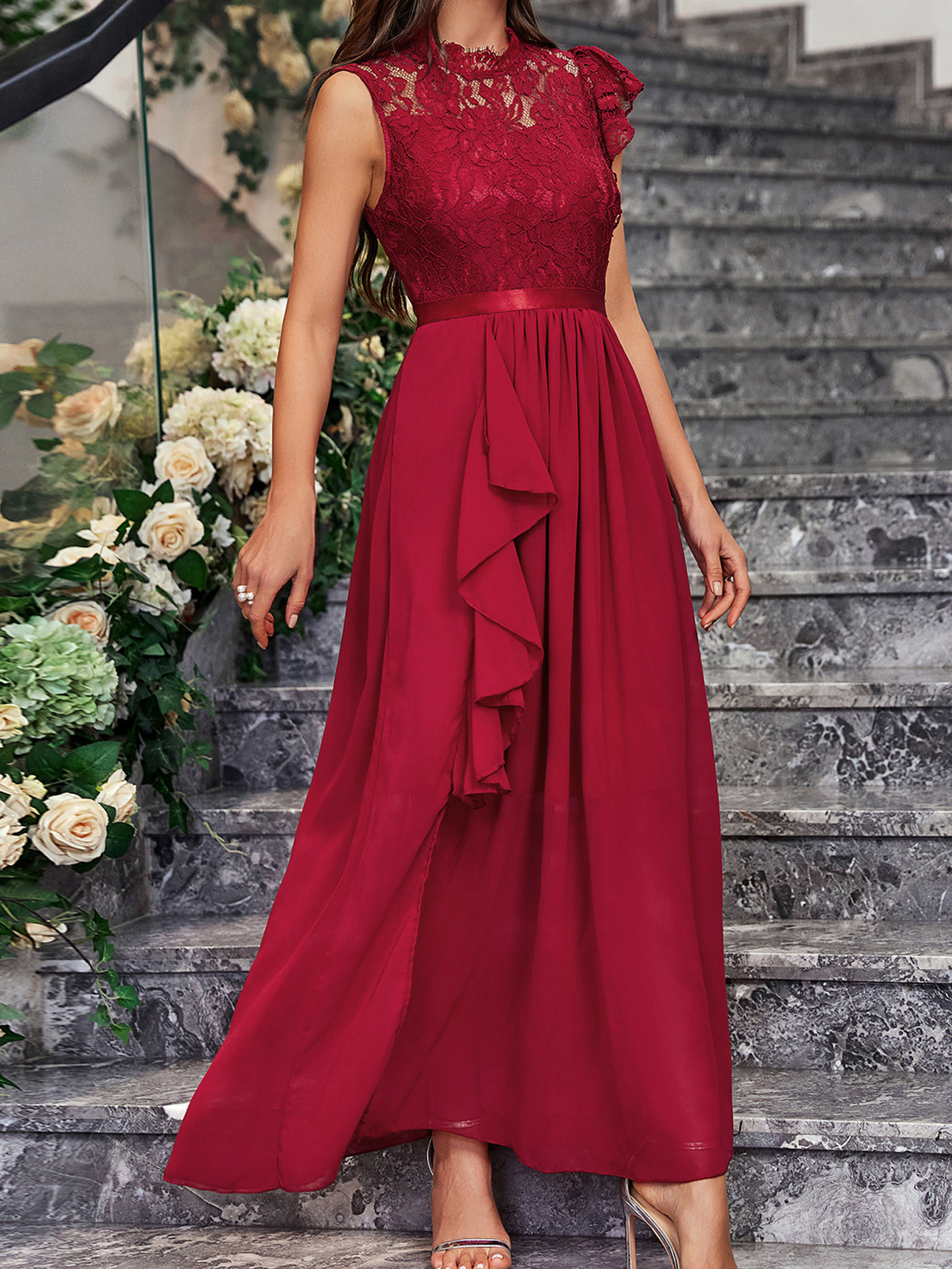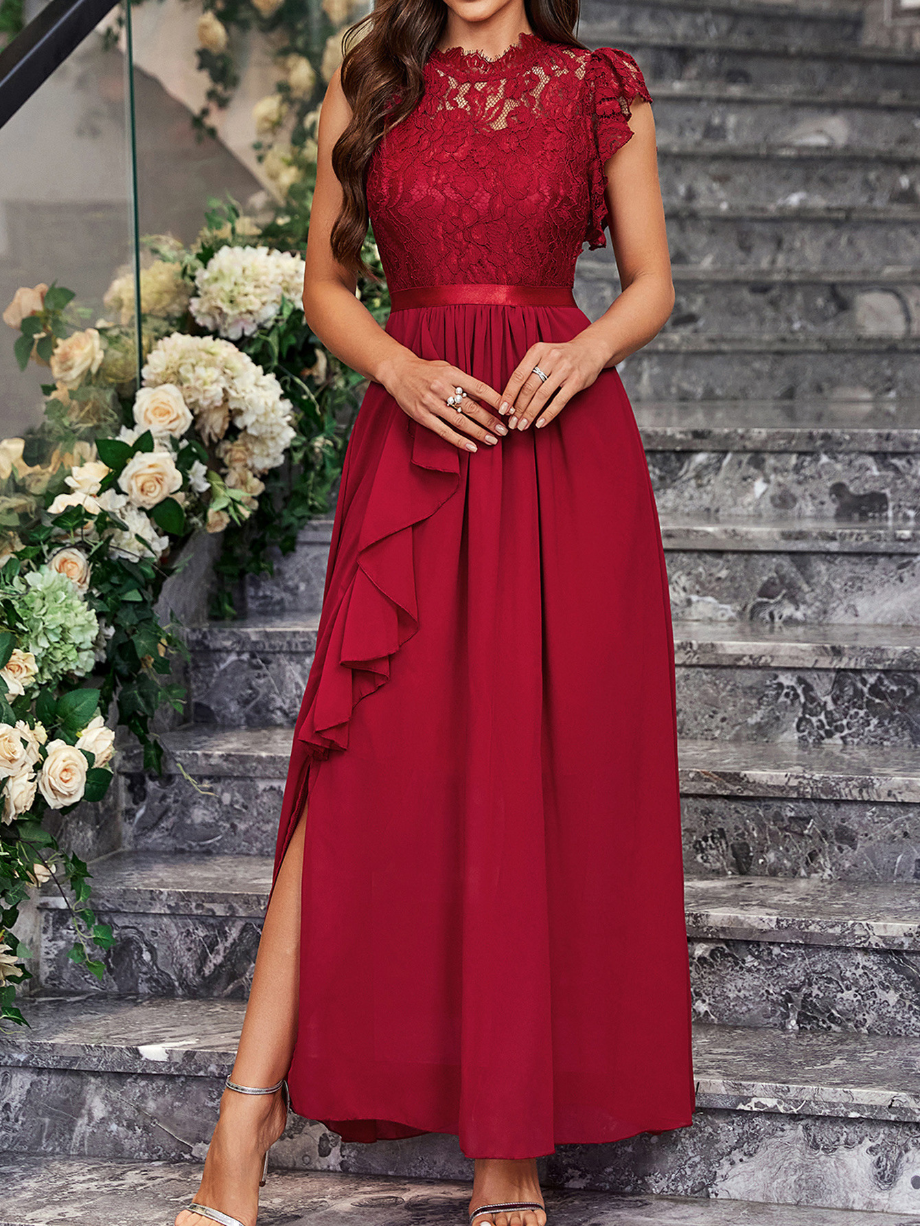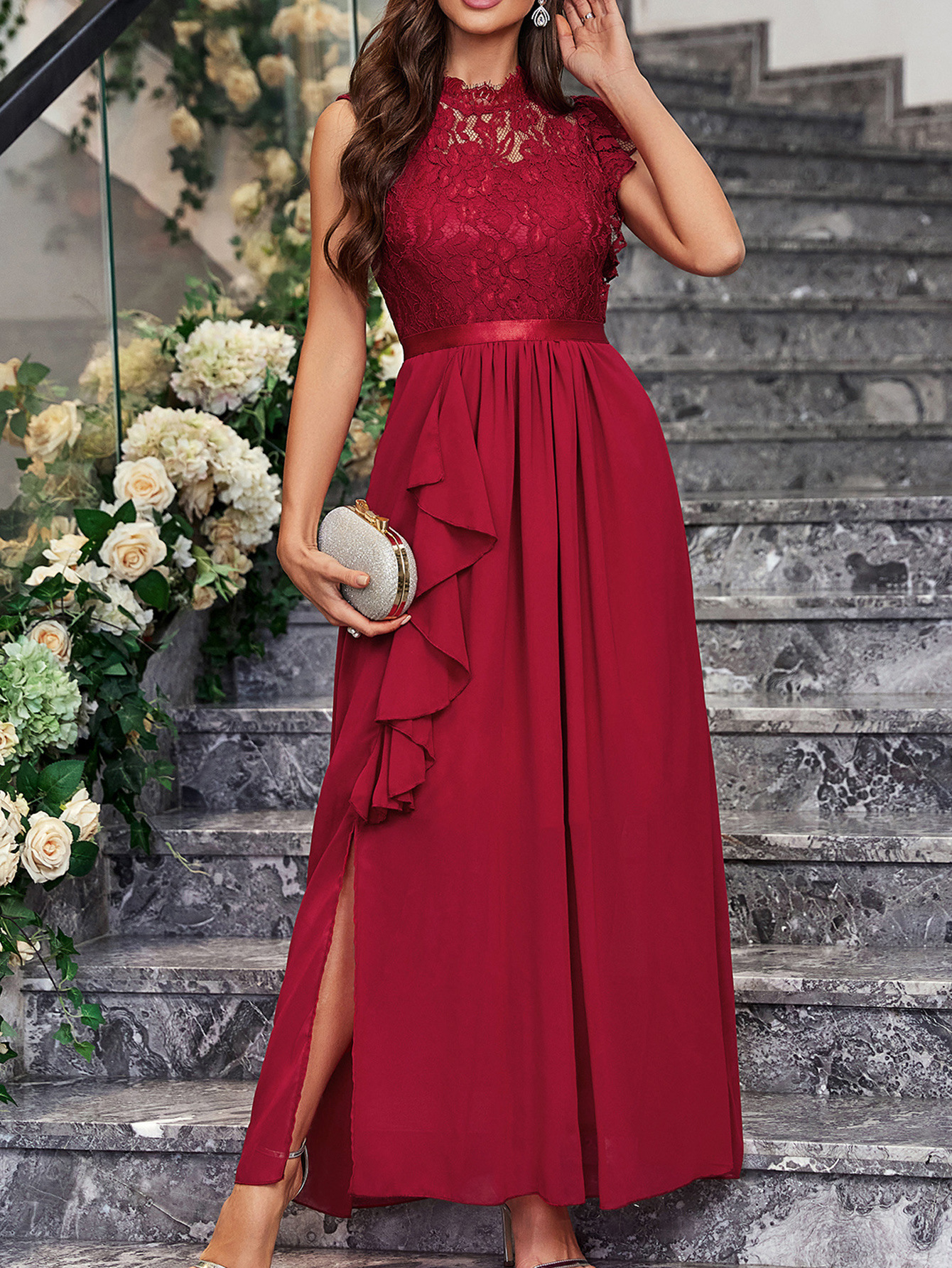Европейская и американская внешнеторговая женская трансграничная новая амазонка сексуальный кружевной шифоновый круглый воротник без рукавов свадебное платье подружки невесты