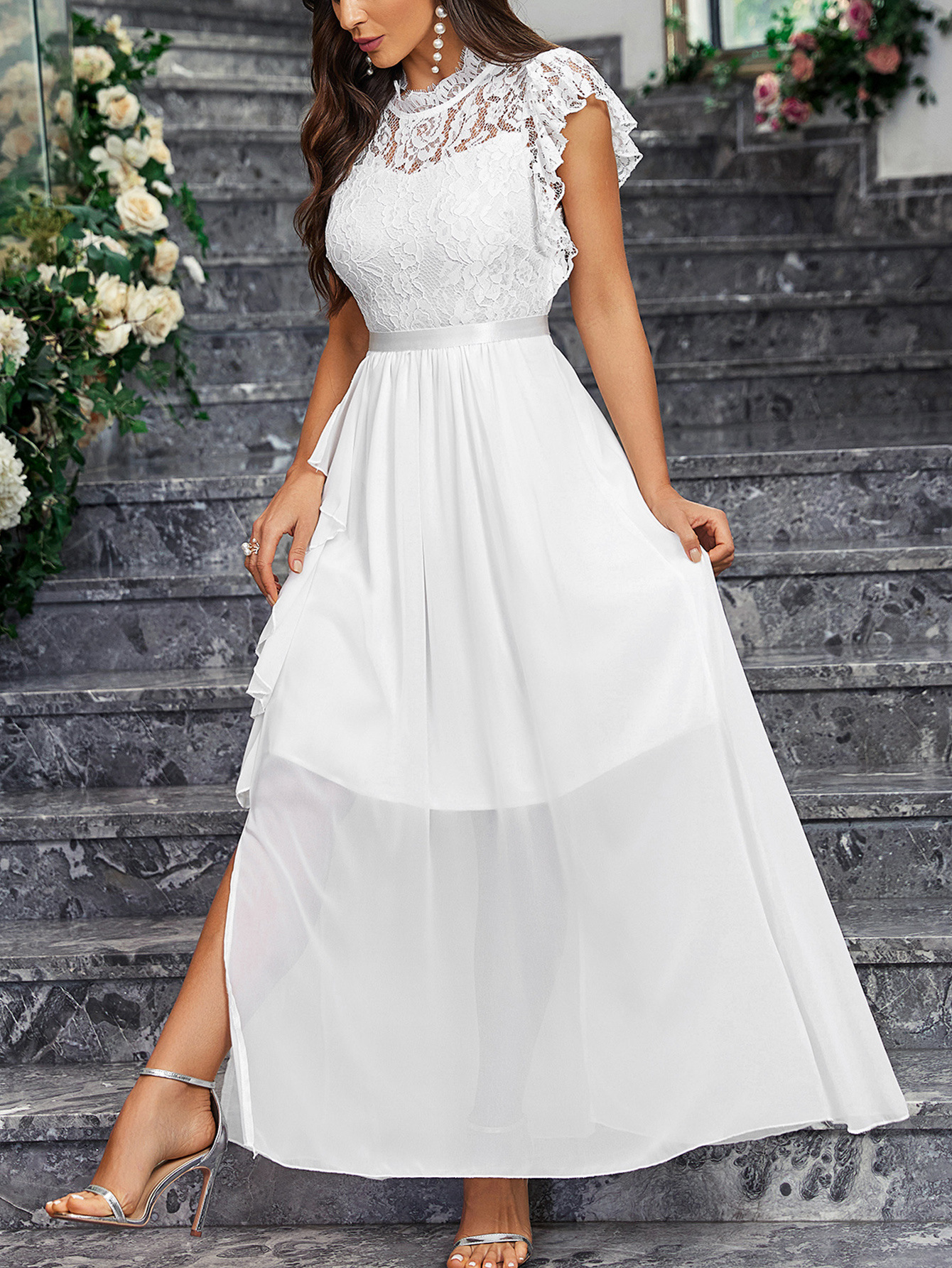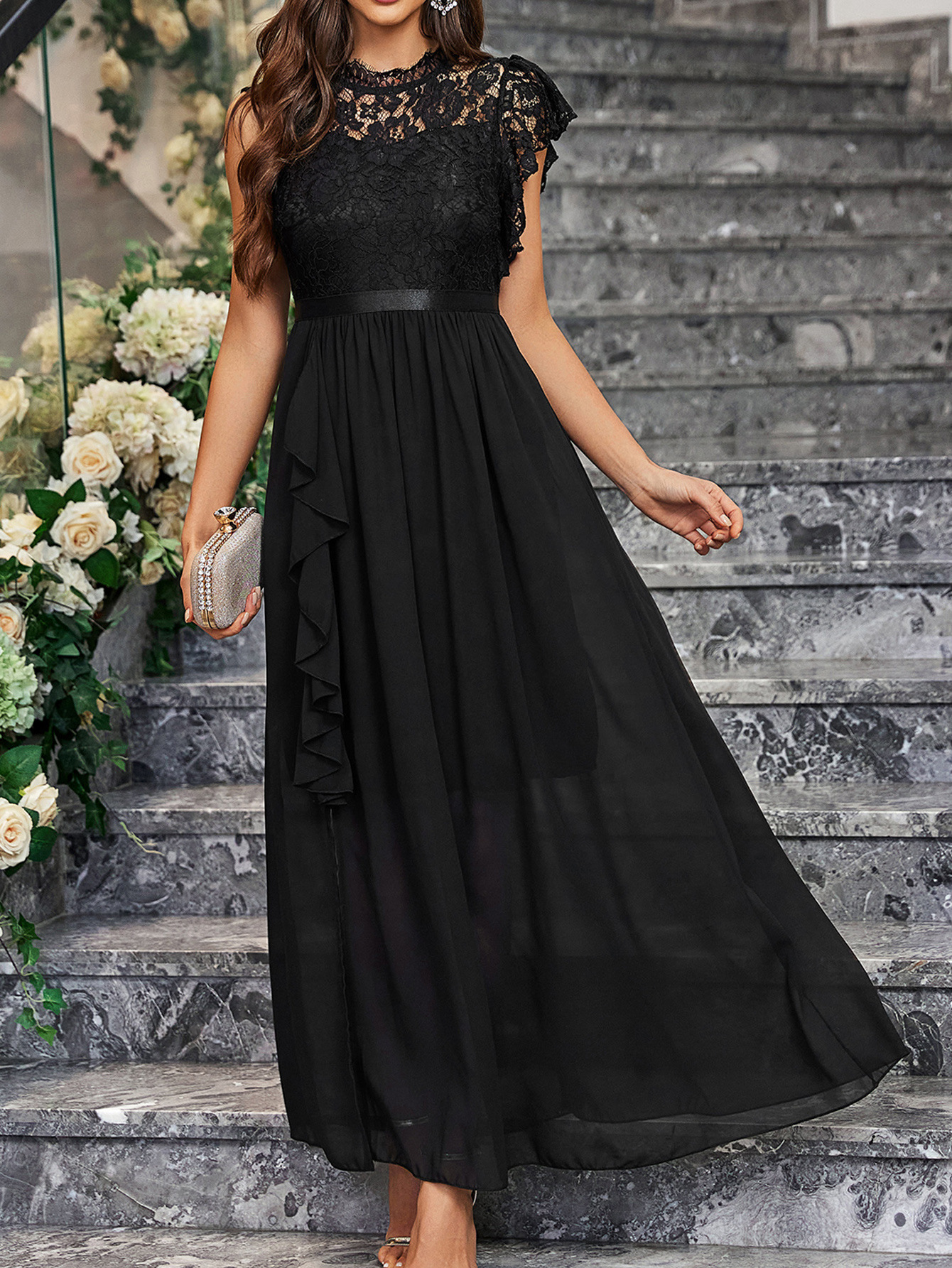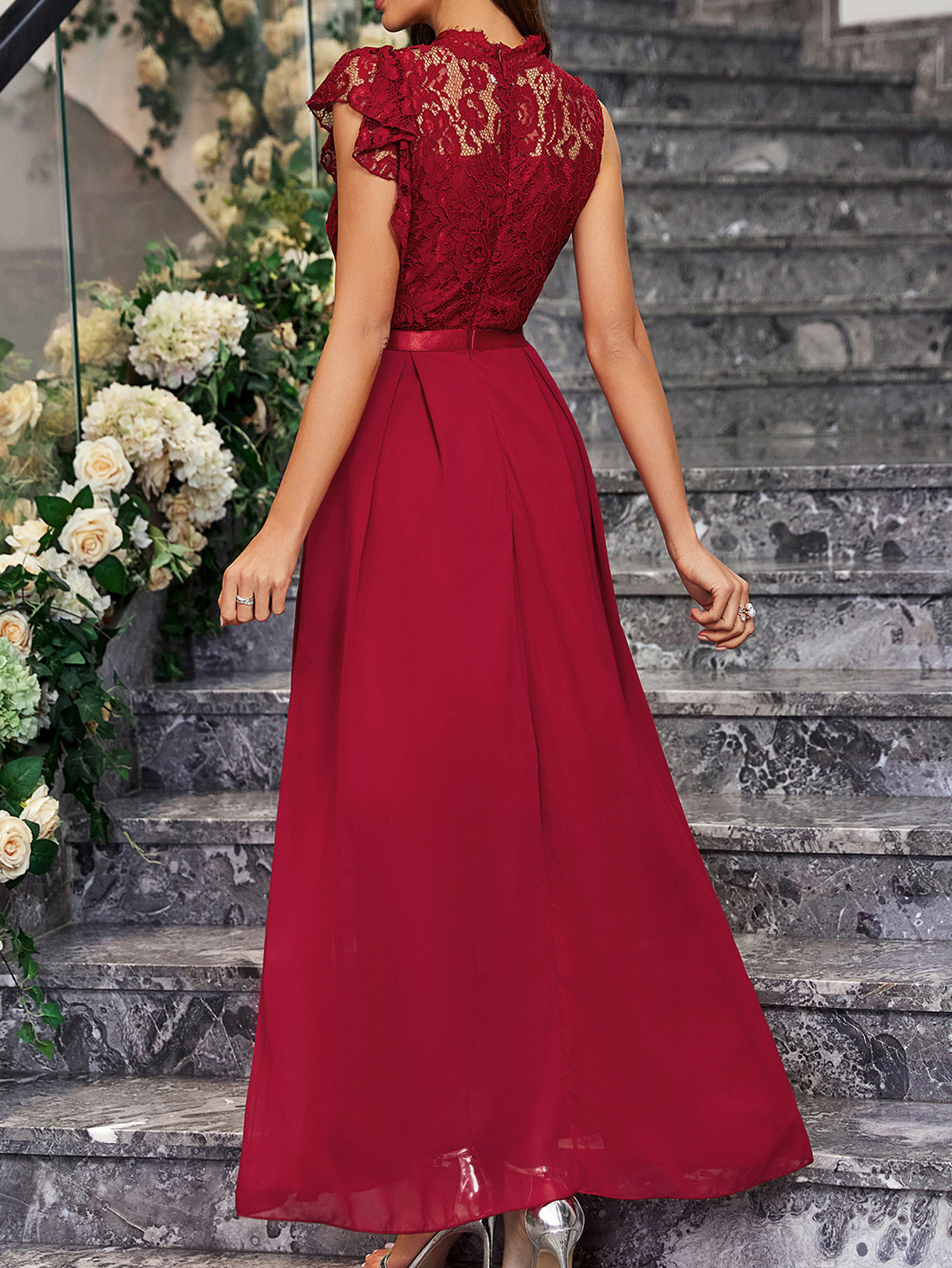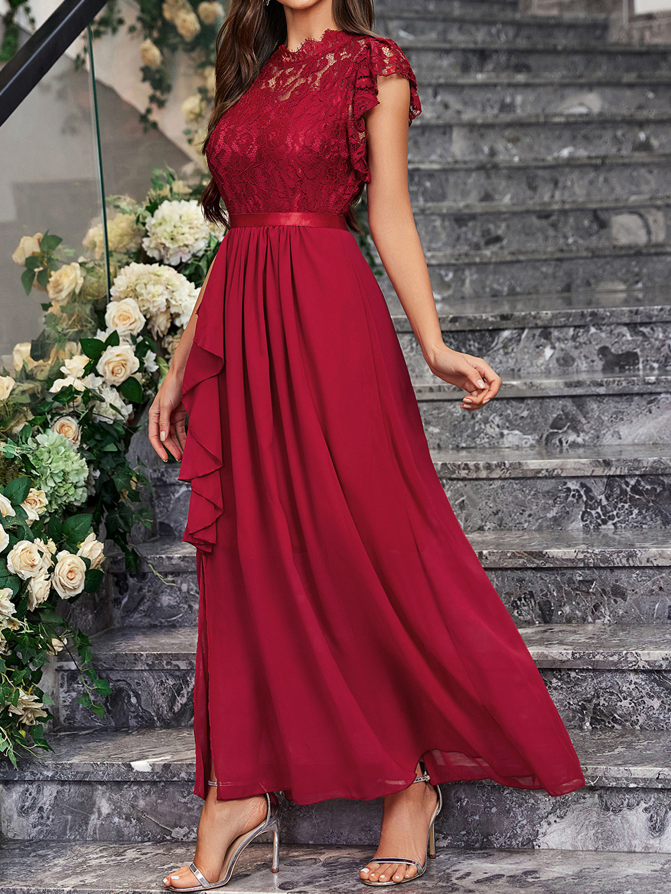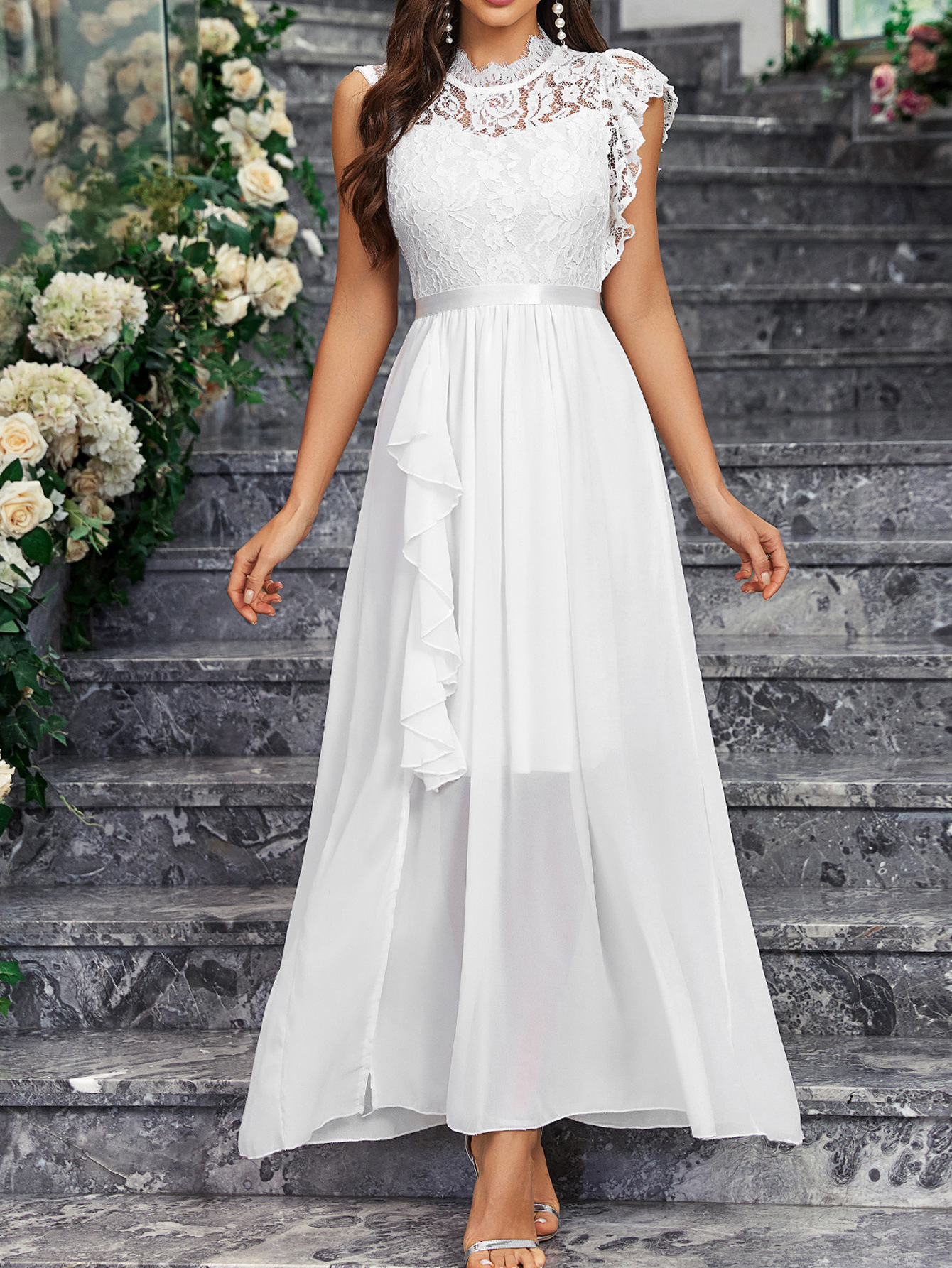 Европейская и американская внешнеторговая женская трансграничная новая амазонка сексуальный кружевной шифоновый круглый воротник без рукавов свадебное платье подружки невесты