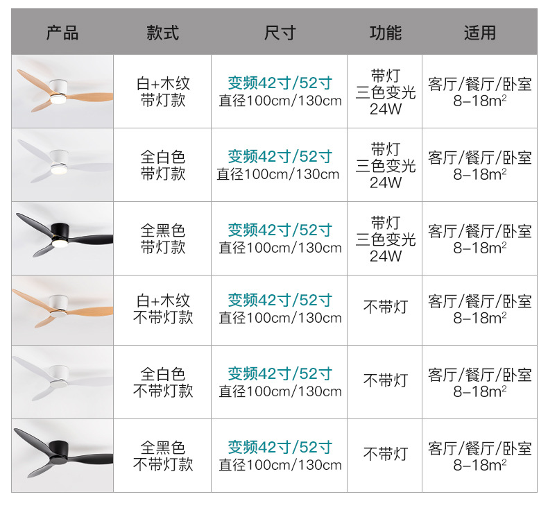 42inch полностью белый пульт дистанционного управления с преобразованием частоты; 52inch большой двигатель, полностью белый, с дистанционным управлением с преобразованием частоты; 42inch полностью черный пульт дистанционного управления с преобразованием частоты; 52inch большой двигатель, полностью черный, с дистанционным управлением с преобразованием частоты; 42inch пульт дистанционного управления с преобразованием частоты белого дерева; 52inch большой мотор с белым деревом, преобразование частоты, пульт дистанционного управления; 42inch Пульт дистанционного управления с преобразованием частоты серого дерева; 52inch большой мотор с серым деревянным зерном, преобразование частоты, пульт дистанционного управления; 42inch пульт дистанционного управления с преобразованием частоты черного дерева; 52inch пульт дистанционного управления с преобразованием частоты черного дерева; 42inch Пульт дистанционного управления с преобразованием частоты всех текстур древесины; 52inch Пульт дистанционного управления с преобразованием частоты всех текстур древесины; 42inch серебристый пульт дистанционного управления с преобразованием частоты темного дерева; 52inch серебристый пульт дистанционного управления с преобразованием частоты темного дерева