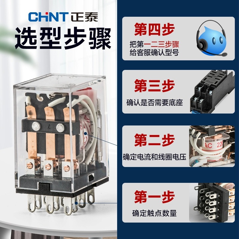 正泰JZX中间继电器小型8脚14脚220v交流380直流24v电磁继电器开关