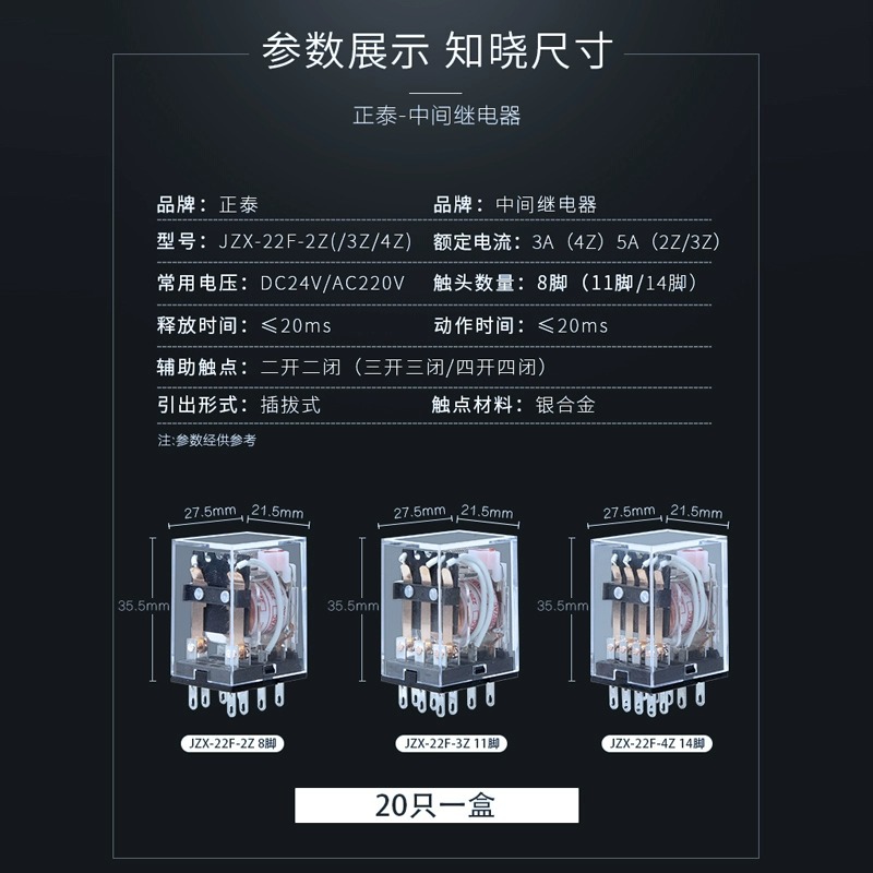 Электромагнитное реле Zhengtai JZX малого размера, 8-контактное, 14-контактное, 220В AC, 380В DC, 24В.