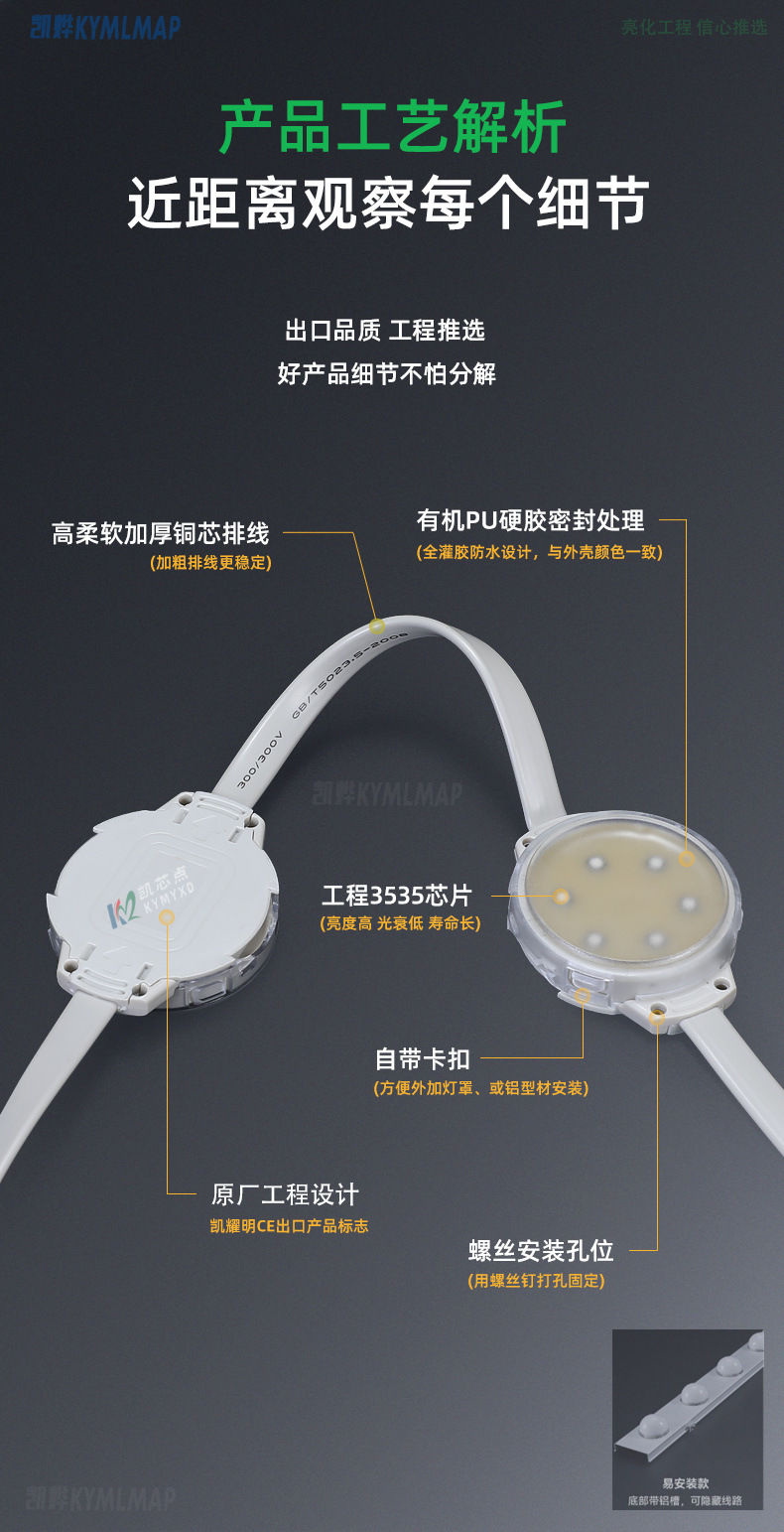 20mm 30mm 35mm 40mm 45mm 50mm 60mm 80mm LED Color DMX DJ Twinkly DOT Pixel Point Lights RGB UCS512C3IC LED Point Amusement Permanent Christmas Light DMX Pixel Lighting DMX512RGBW LED POINT LIGHTS SOURCE KYMLAMP® IP67