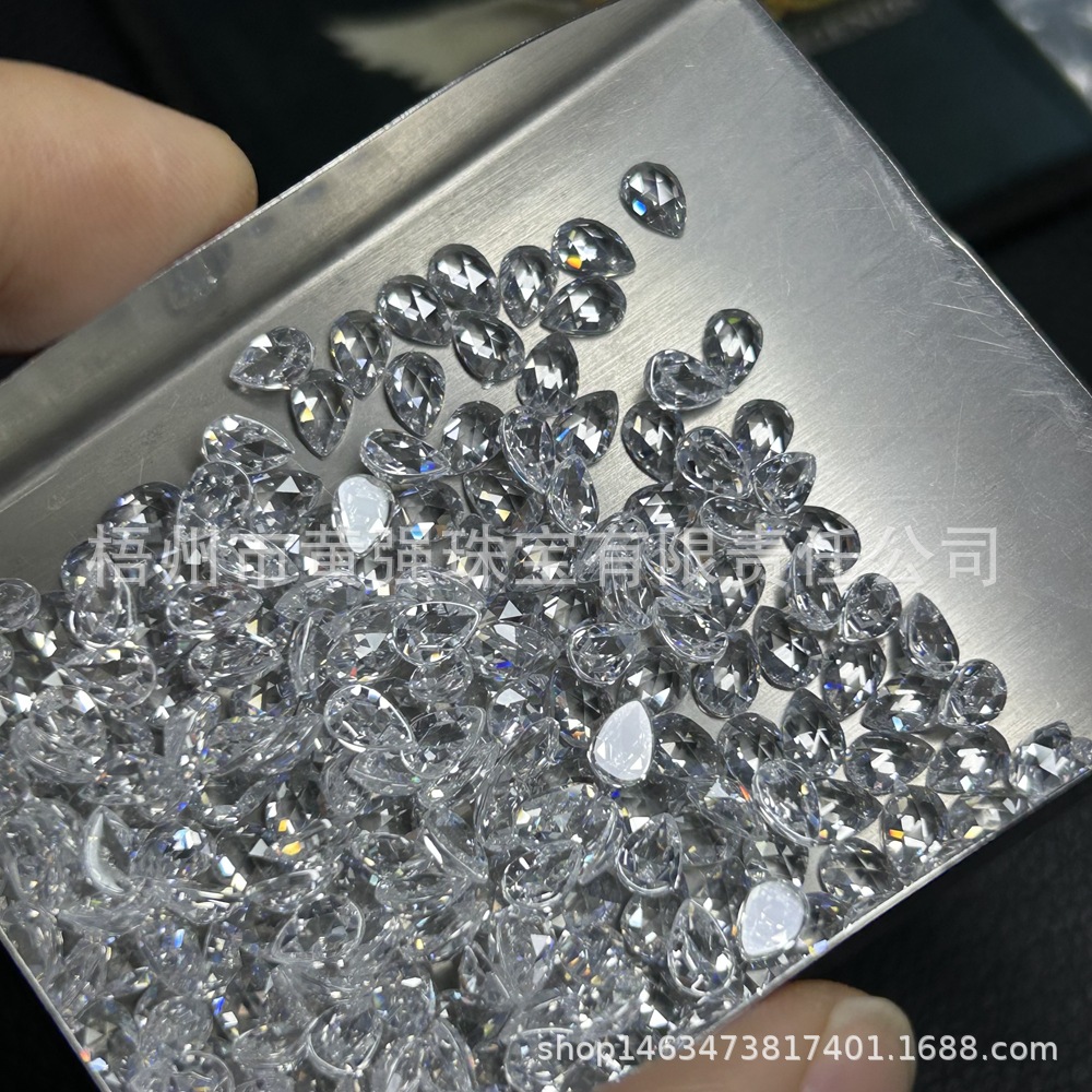 梧州工厂现货1.5m--8m圆形梨形旦形白色锆石平底玫瑰切氧化锆裸石