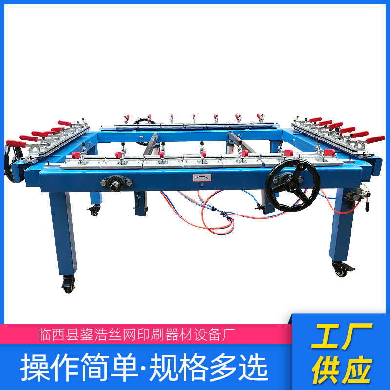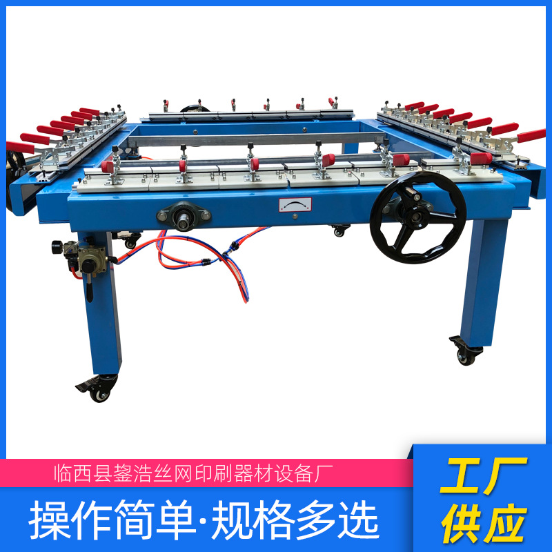 Инструмент для трафаретной печати для натяжения и установки трафаретов, полуавтоматический механический цепной тип с четырьмя регулируемыми балками.