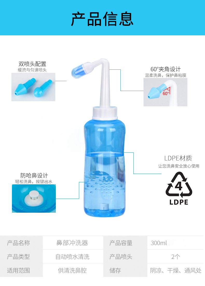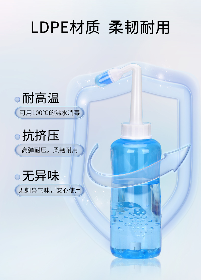 Назальный ирригатор для промывания носа, устройство для промывания носа с двойным соплом из ПВД, автоматический клапан, медицинский класс