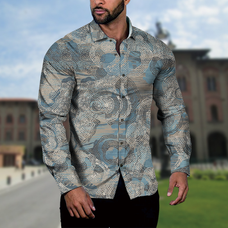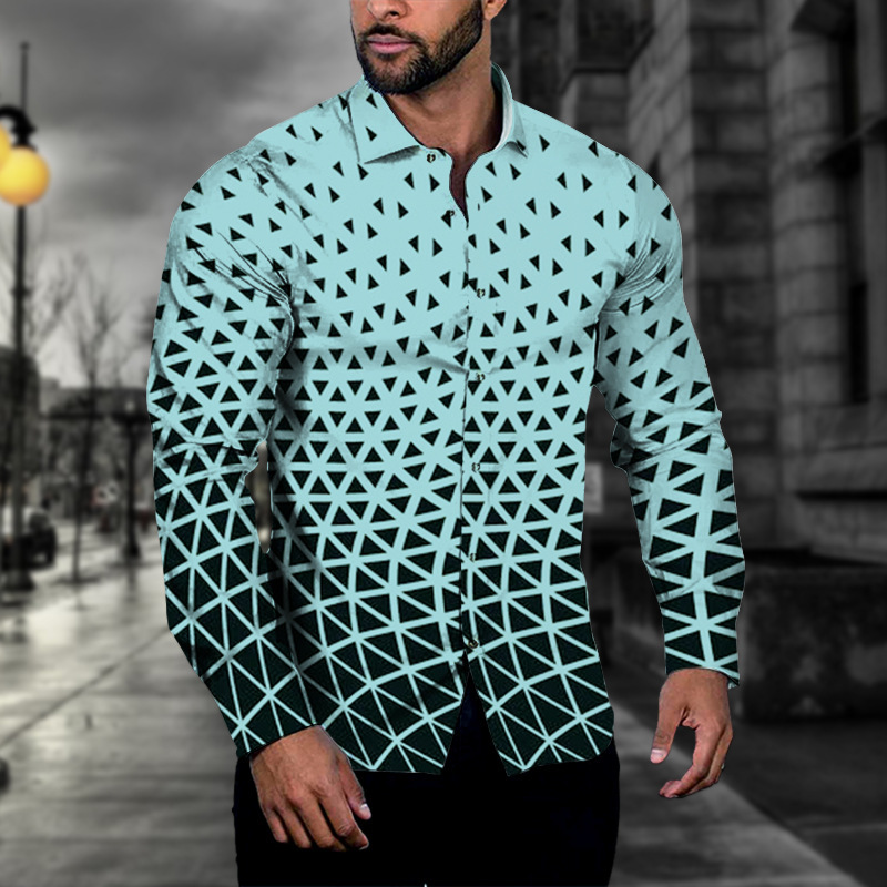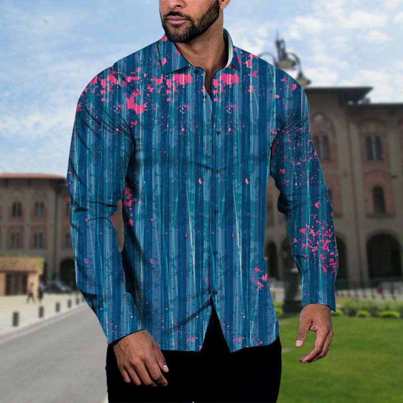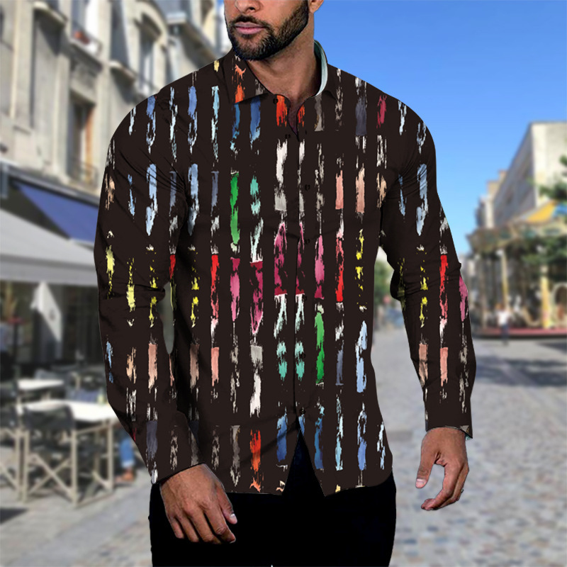 2023 внешняя торговля Amazon wish независимая станция 3D цифровая печать полосатая мужская повседневная хлопковая рубашка с длинными рукавами