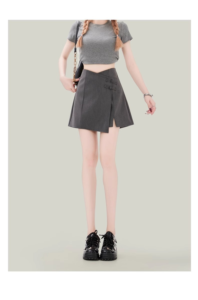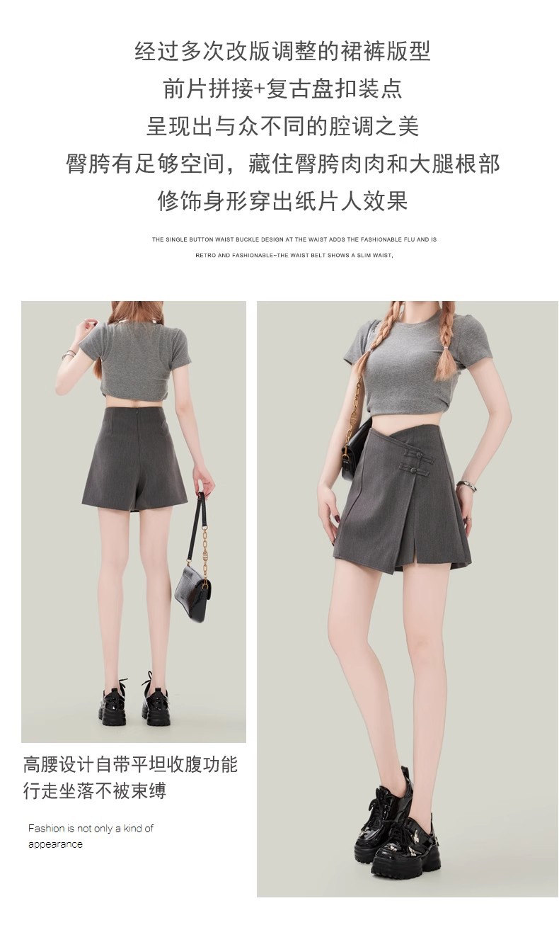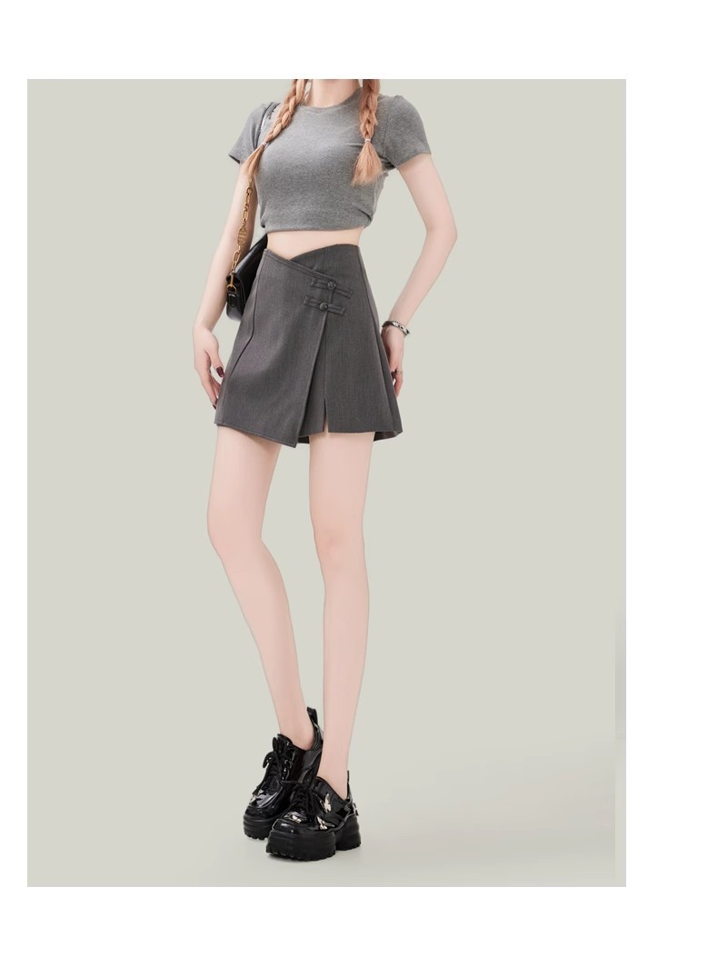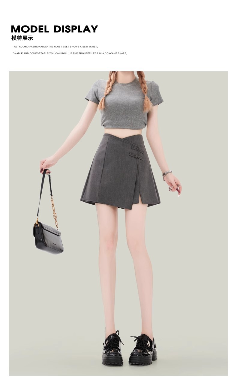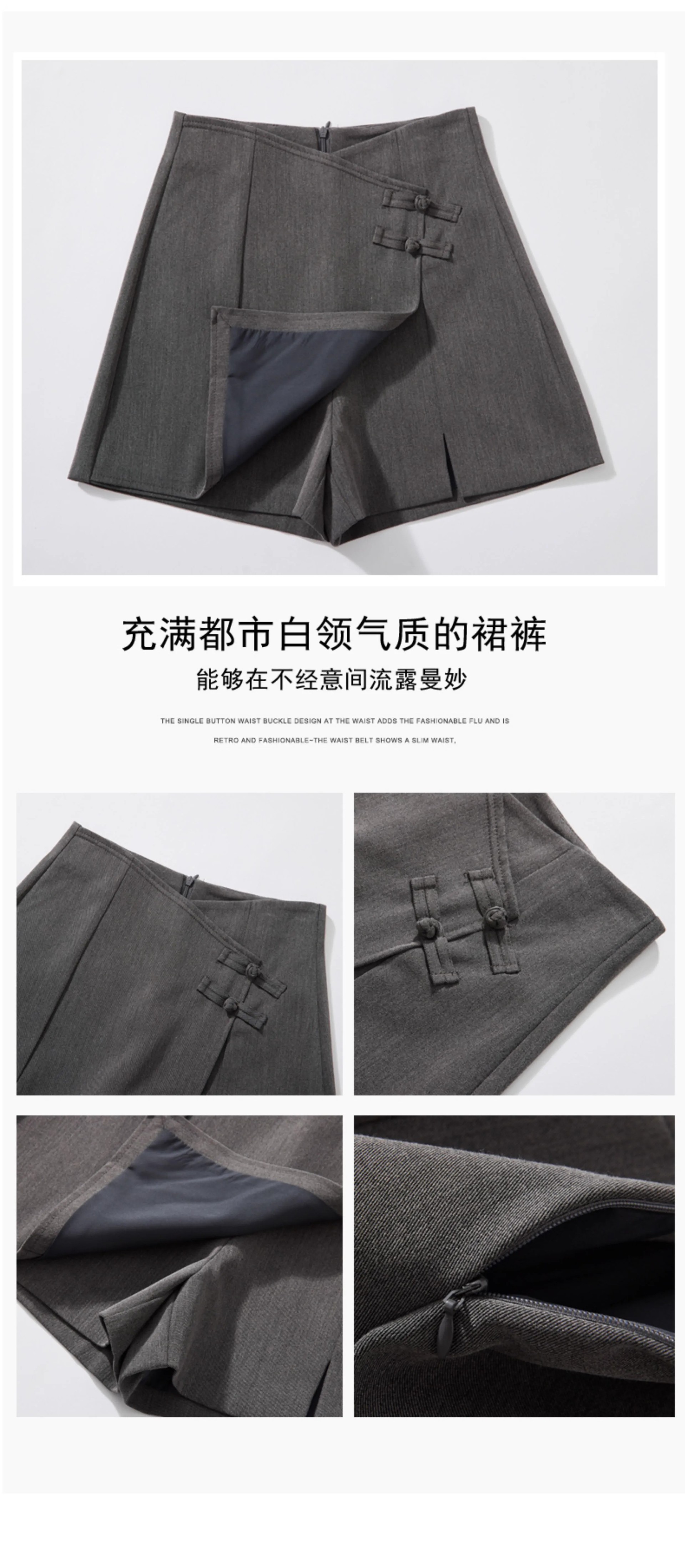 2024 новый национальный ветер нерегулярная пряжка широкая юбка брюки женские серые брюки с высокой талией брюки летние юбки брюки