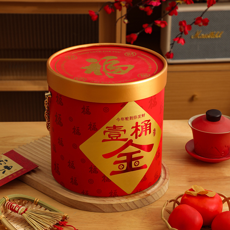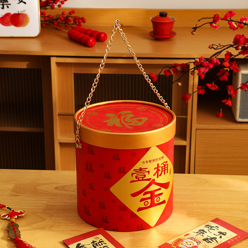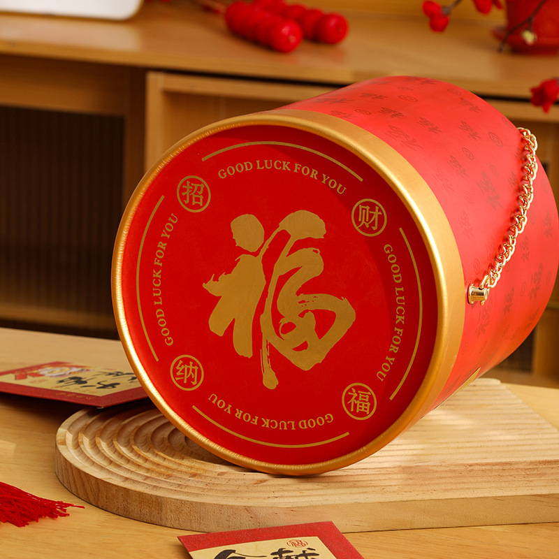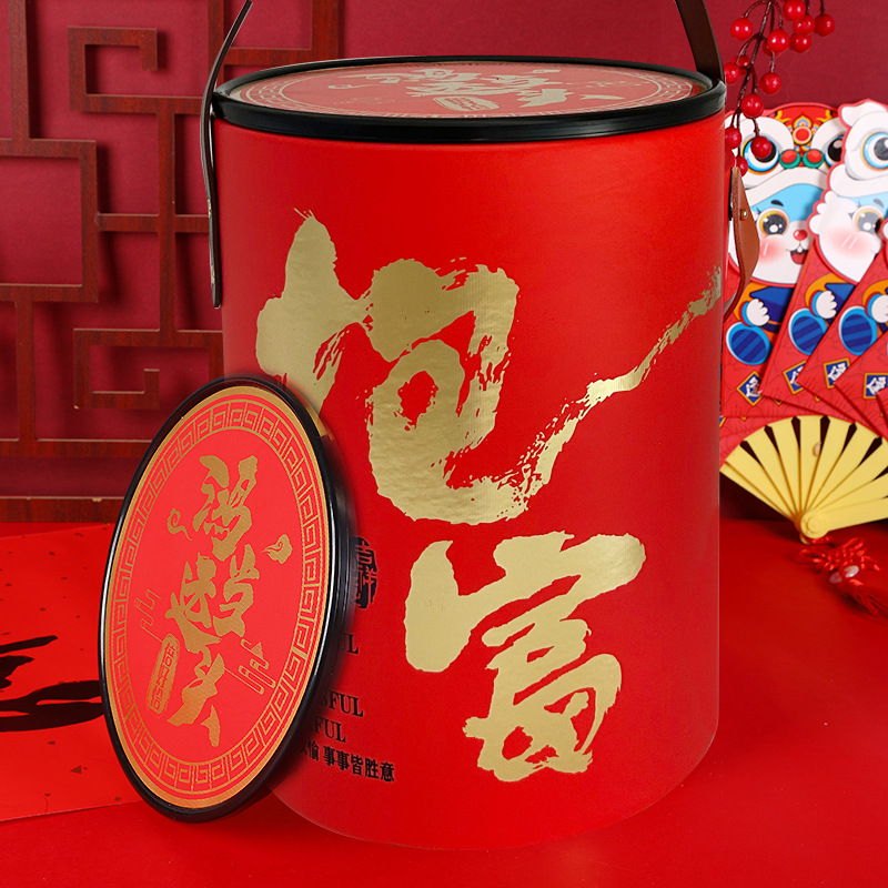 Новогодняя подарочная коробка, держащая ведро, новогодние орехи закуски, пластиковая крышка, держащая богатое ведро, подарочная коробка пустая коробка