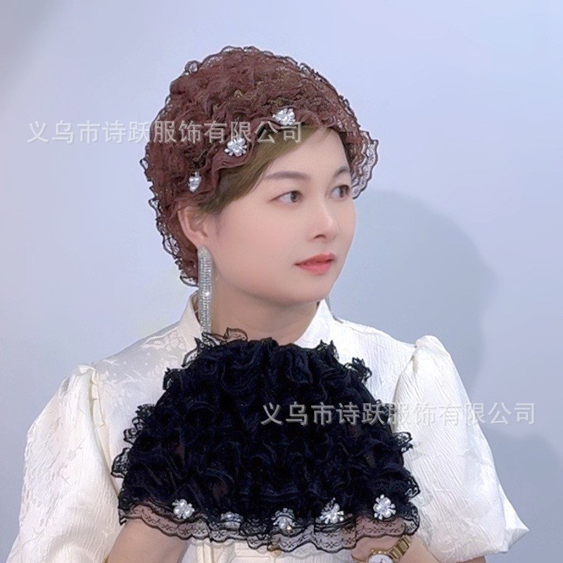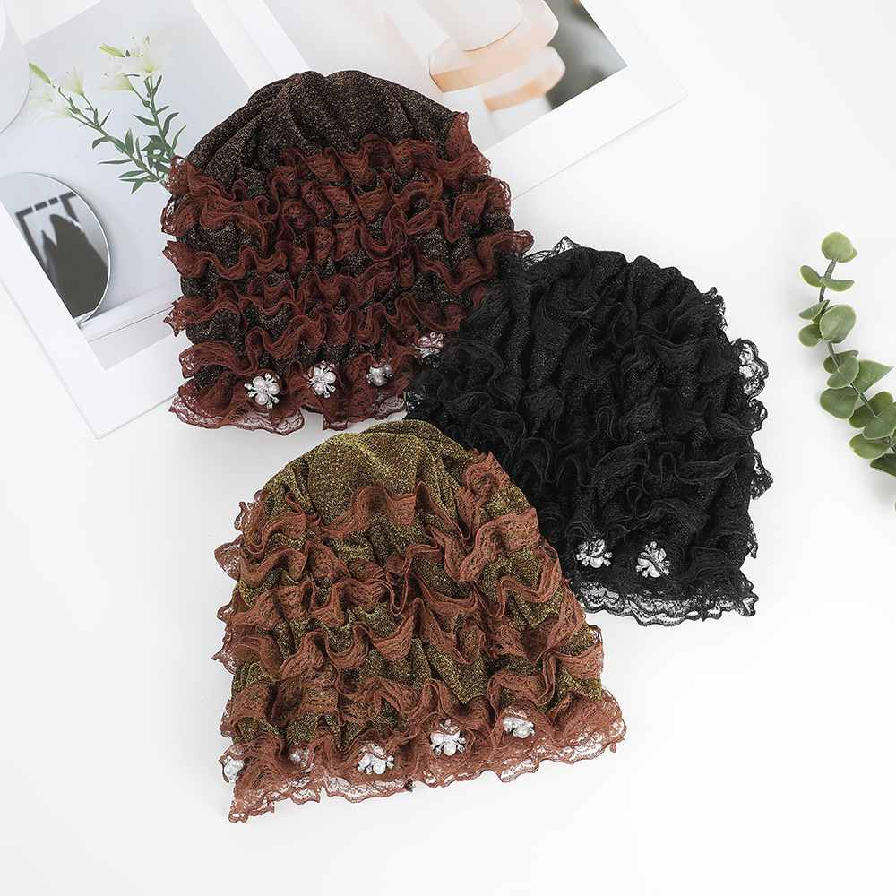Четыре сезона кружевные бисерные шапки маленькие цветы пыленепроницаемые и солнцезащитные многослойные женские белые волосы