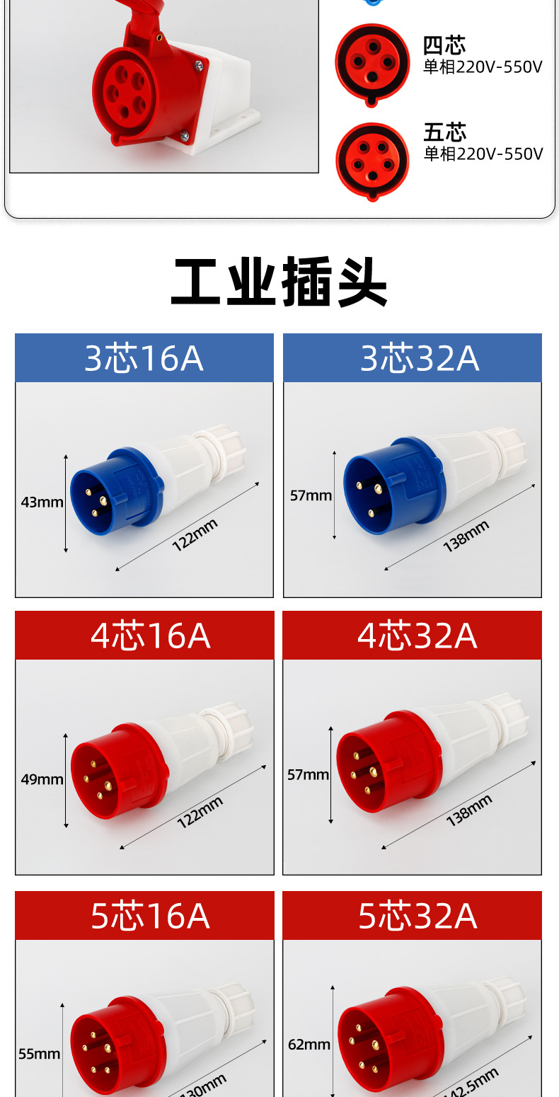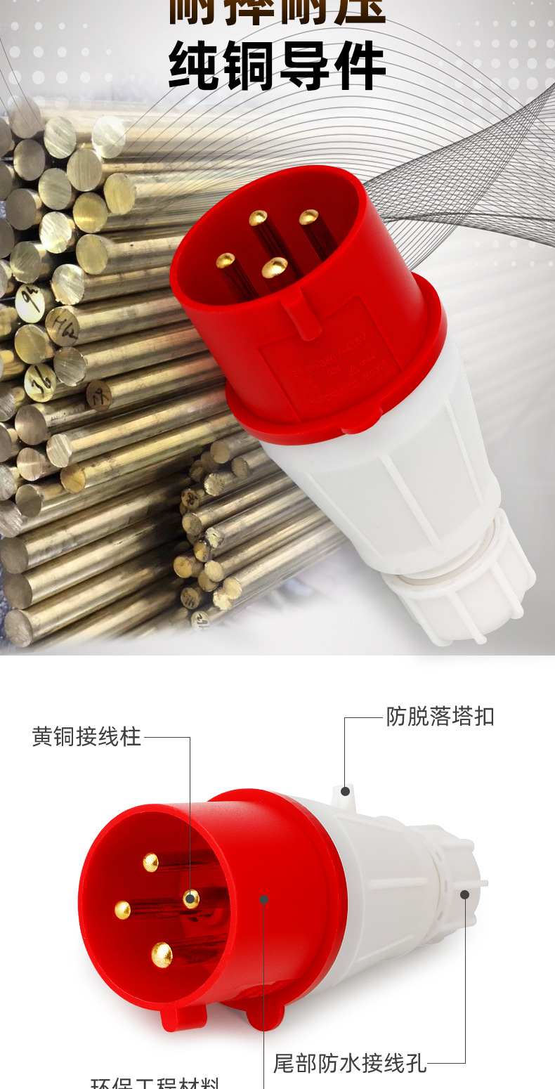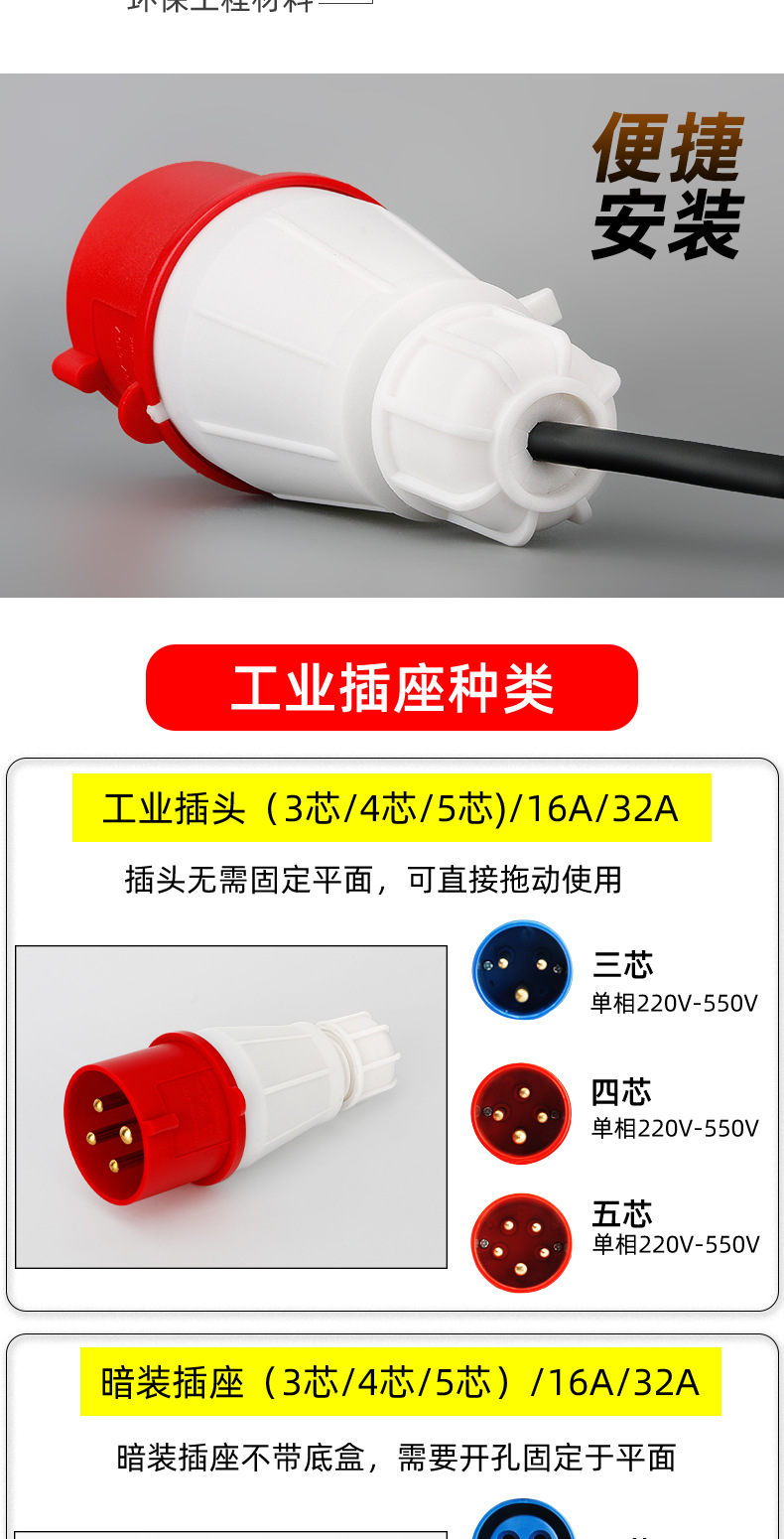 Промышленный штепсельный разъем 16/32A авиационный разъем трехфазный четырехпроводный 3/4/5 ядра промышленный водонепроницаемый стыковочный штекер