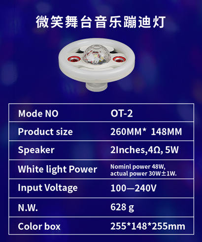 Фабрика прямых продаж E27 Bluetooth музыкальный сценический свет улыбка двойной динамик большой волшебный шар, смена цвета RGB три в одном