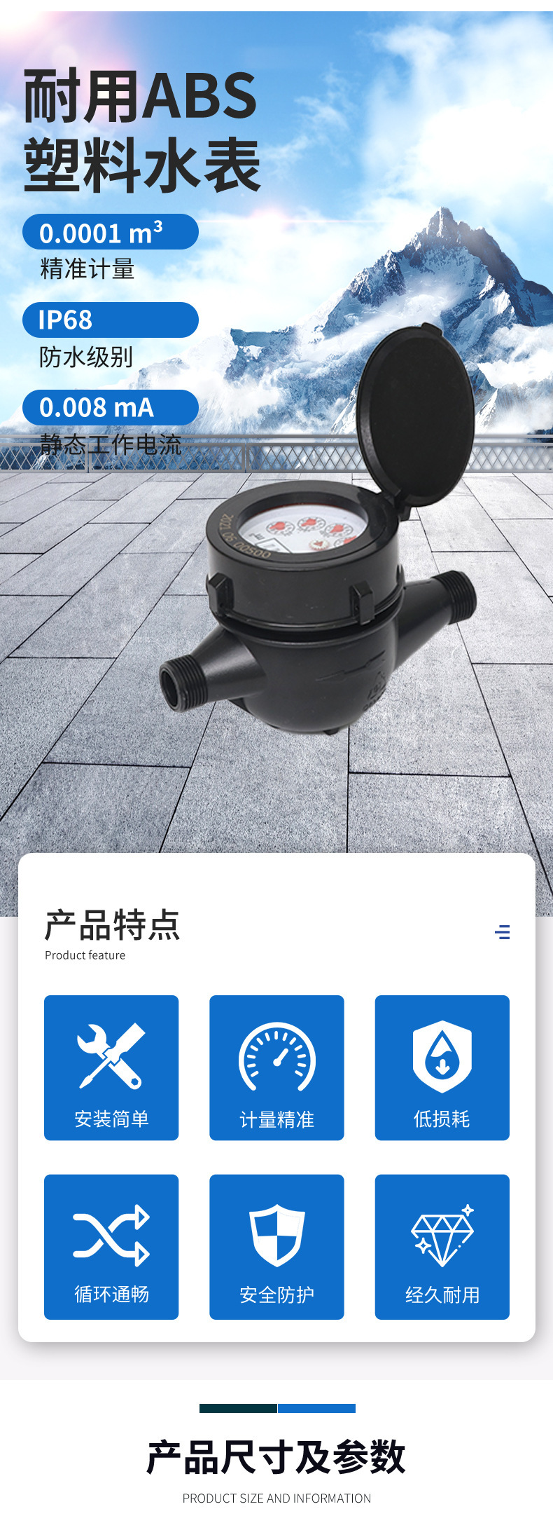 Пластиковый счетчик воды роторного типа ABS Домашний счетчик воды водопроводной воды Экспорт счетчик воды