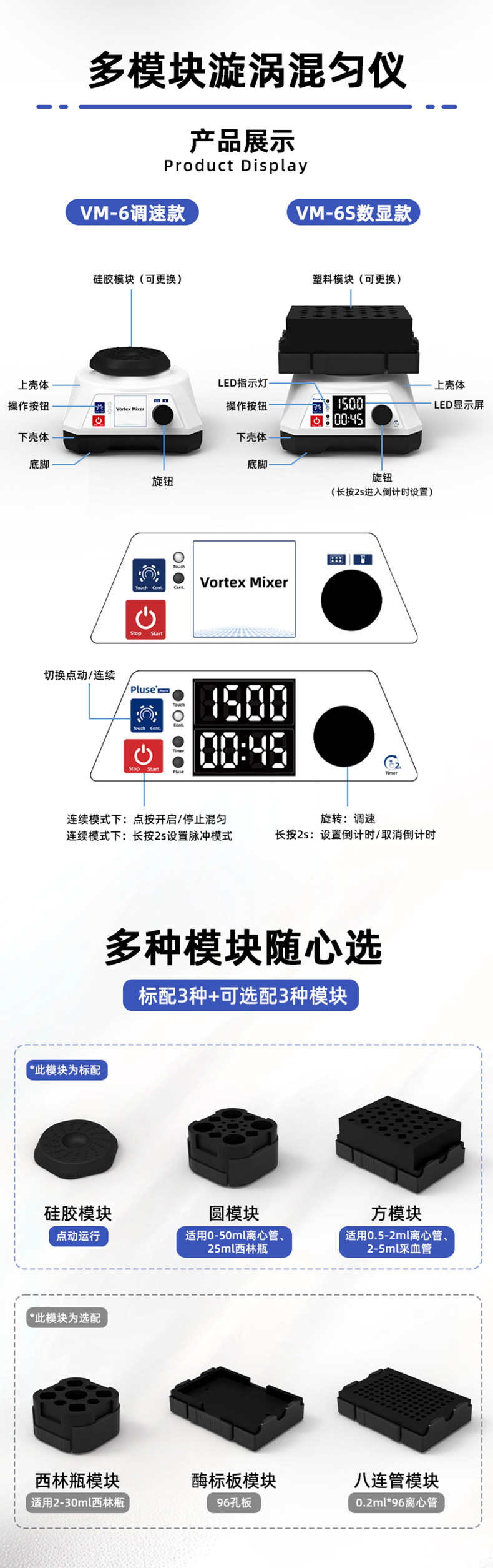 Модель VM-1 с фиксированной скоростью; Модель регулирования скорости VM-1S; Модель VM-1L с фиксированной скоростью (щетковый двигатель); Модульная модель VM-6 (стандартно с 3 модулями); Модель VM-6S с несколькими модулями (эксклюзивный импульсный режим); [Адаптировано для серии VM-6] Стандартный силиконовый модуль; 【Совместимость с серией VM-6】Стандартный модуль формулы; [Адаптировано для серии VM-6] Стандартный круглый модуль; 【Совместимость с серией VM-6】Опциональный модуль для флаконов; 【Совместимо с серией VM-6】Опциональный модуль на восемь пластин; [Адаптировано для серии VM-6] Дополнительный модуль для 96-велловой пластины