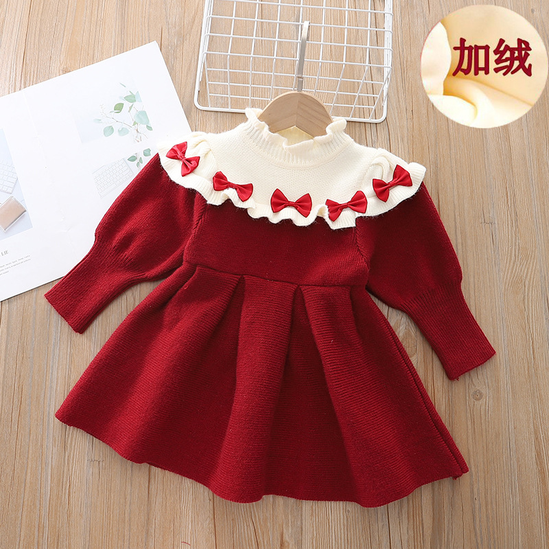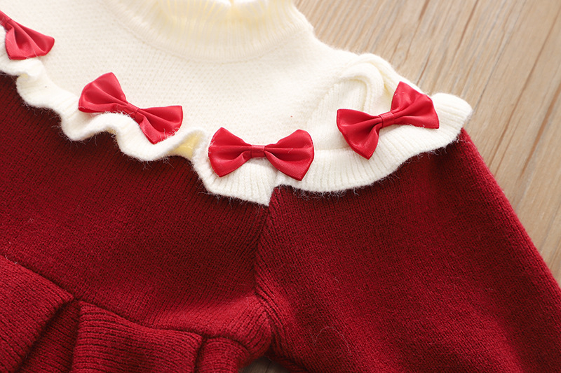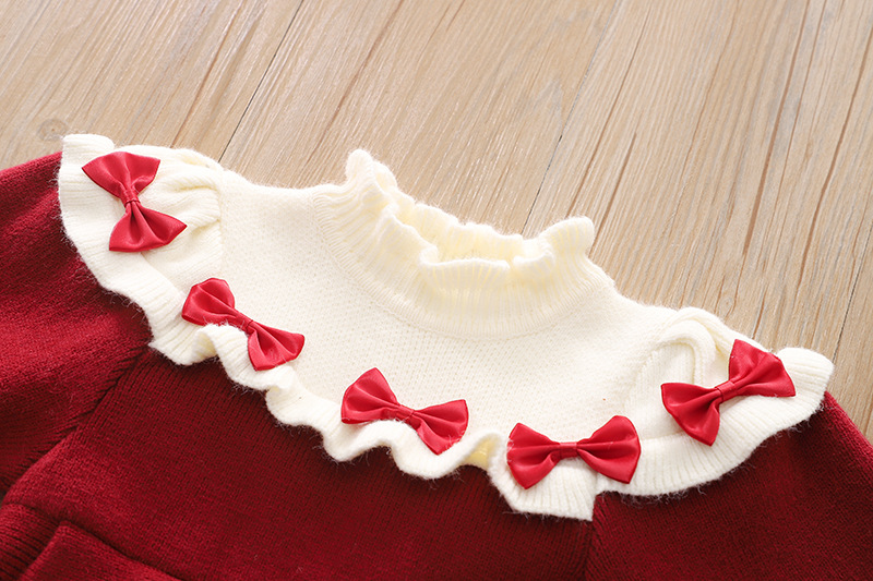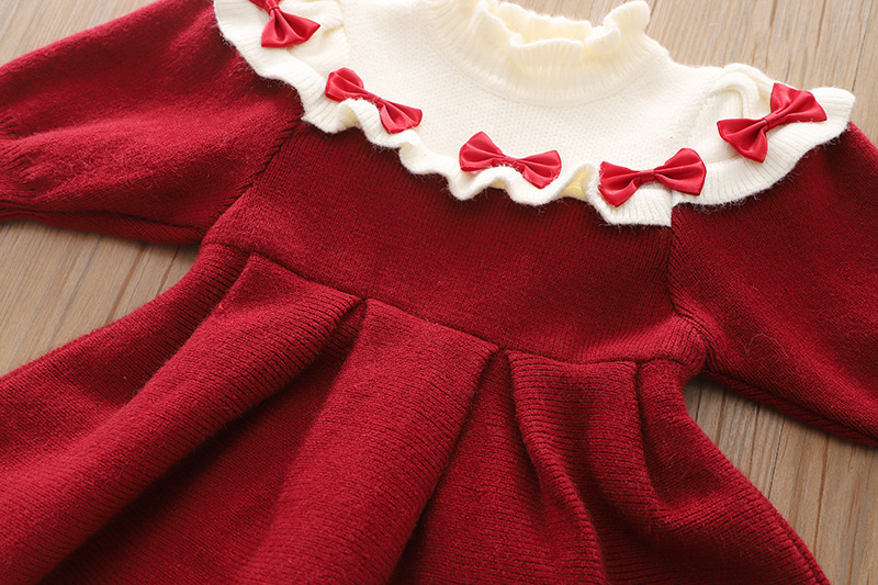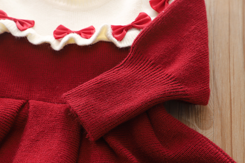 Внешняя торговля детская одежда фабрика 2024 новый бант платье для девочек платье для волос платье для детей красная милая вязаная длинная юбка