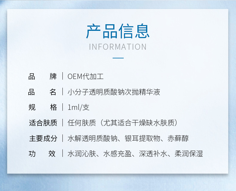 Эссенция для лица с гиалуронатом натрия малой молекулярной массы, OEM-производство, длительное увлажнение, двухфазная эссенция, OEM-обработка