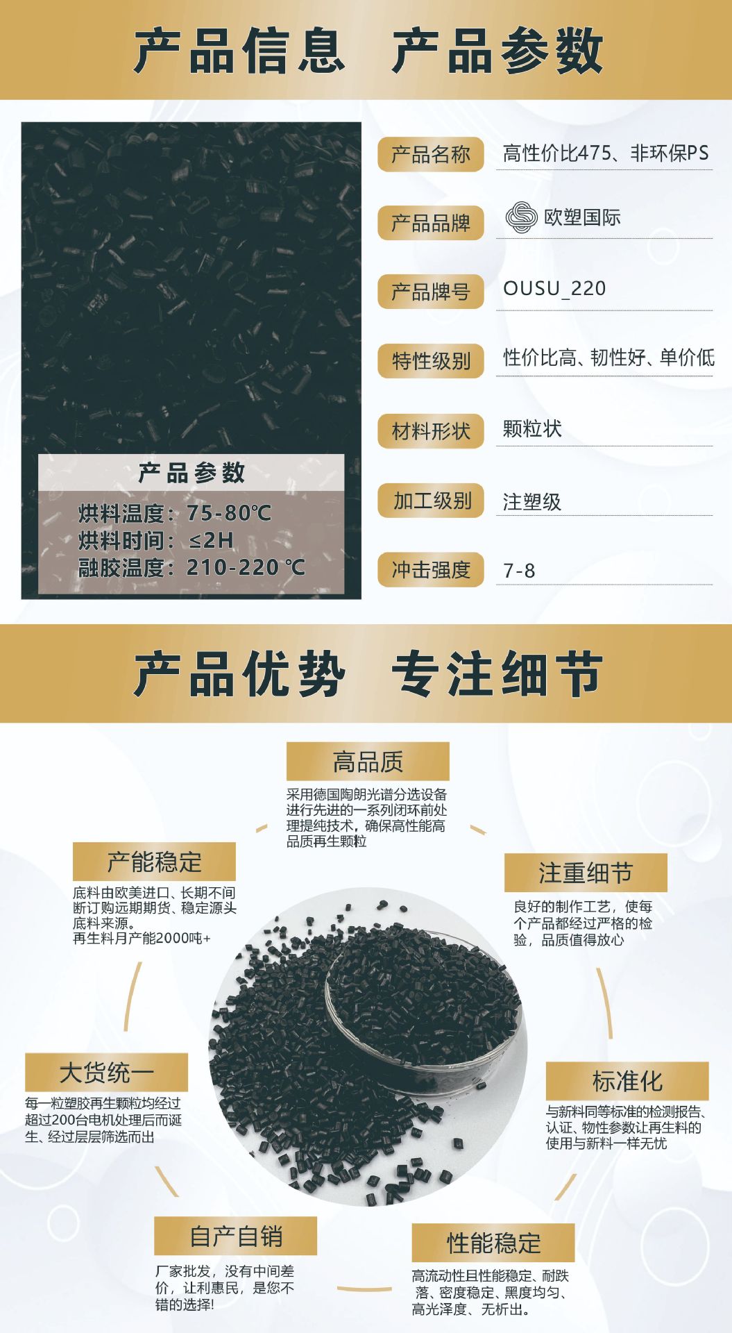 Гранулы переработанного материала PS, специальный матовый материал для косметических коробок, высокопрочные черные гранулы HIPS для литья под давлением.