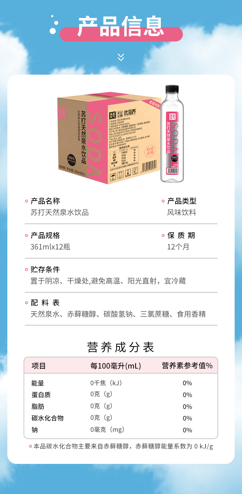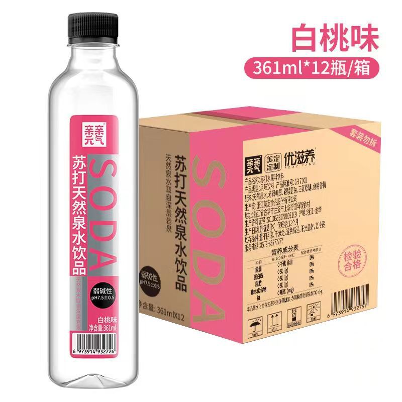 【Доставка в день заказа】Напиток Qinqin Yuanqi 361 мл, слабо щелочной, без сахара, со вкусом, натуральная слабощелочная газированная вода