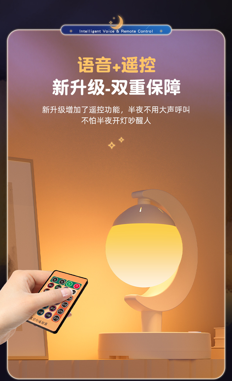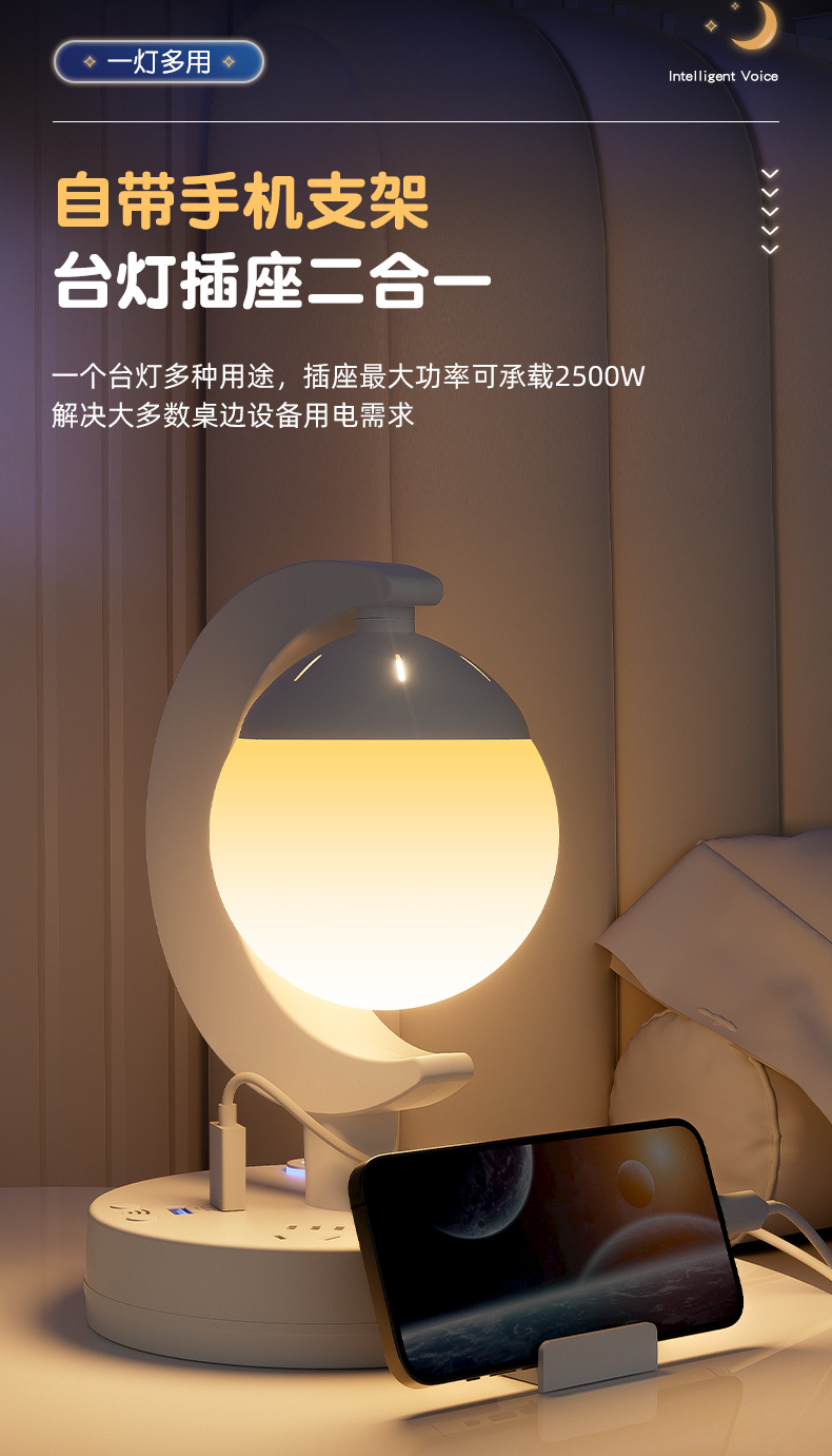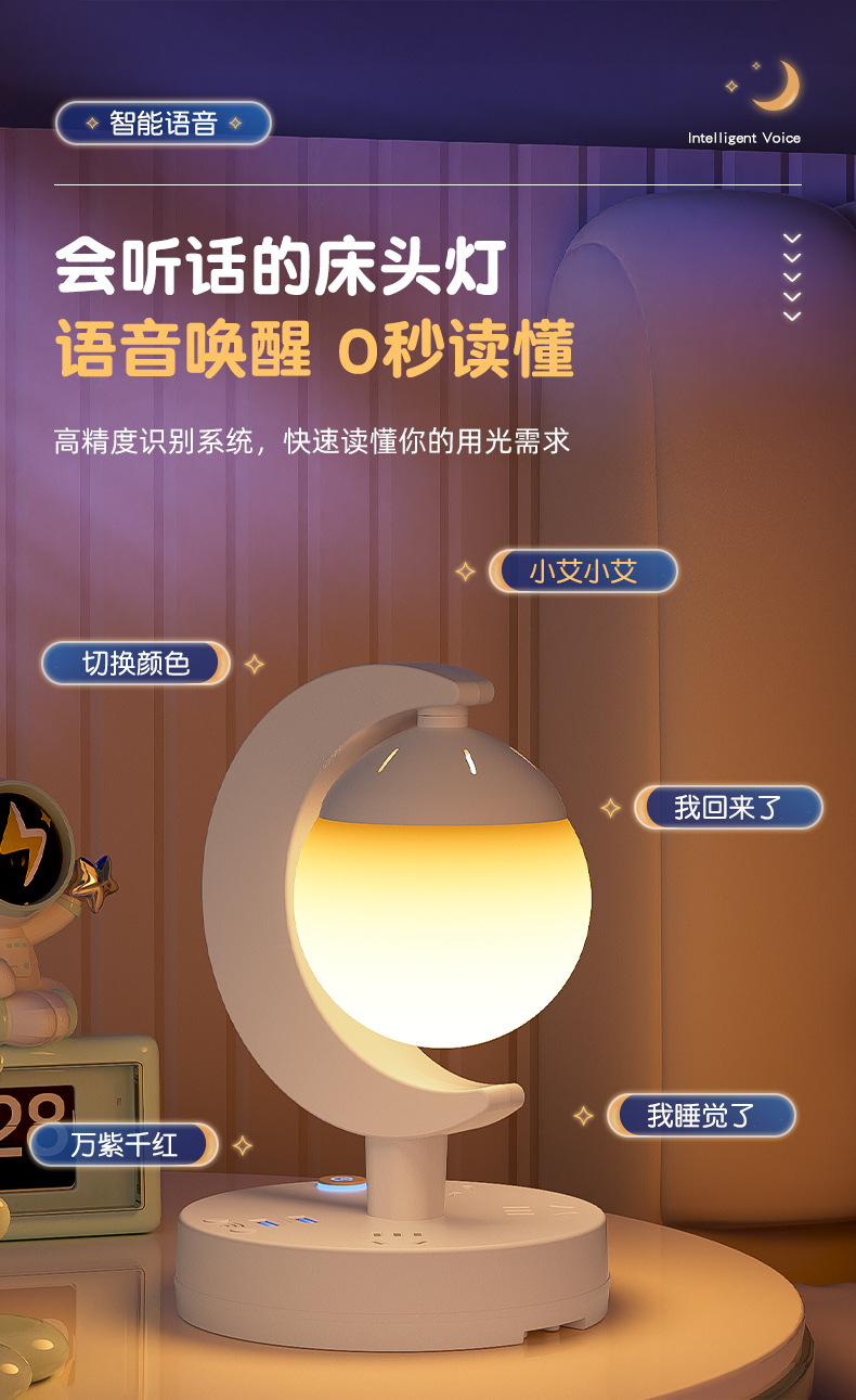 Прикроватная лампа для спальни, голосовой пульт дистанционного управления, настольная лампа, светодиодная атмосферная лампа, многофункциональный ночник, лампа для защиты глаз
