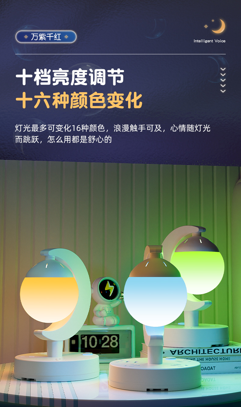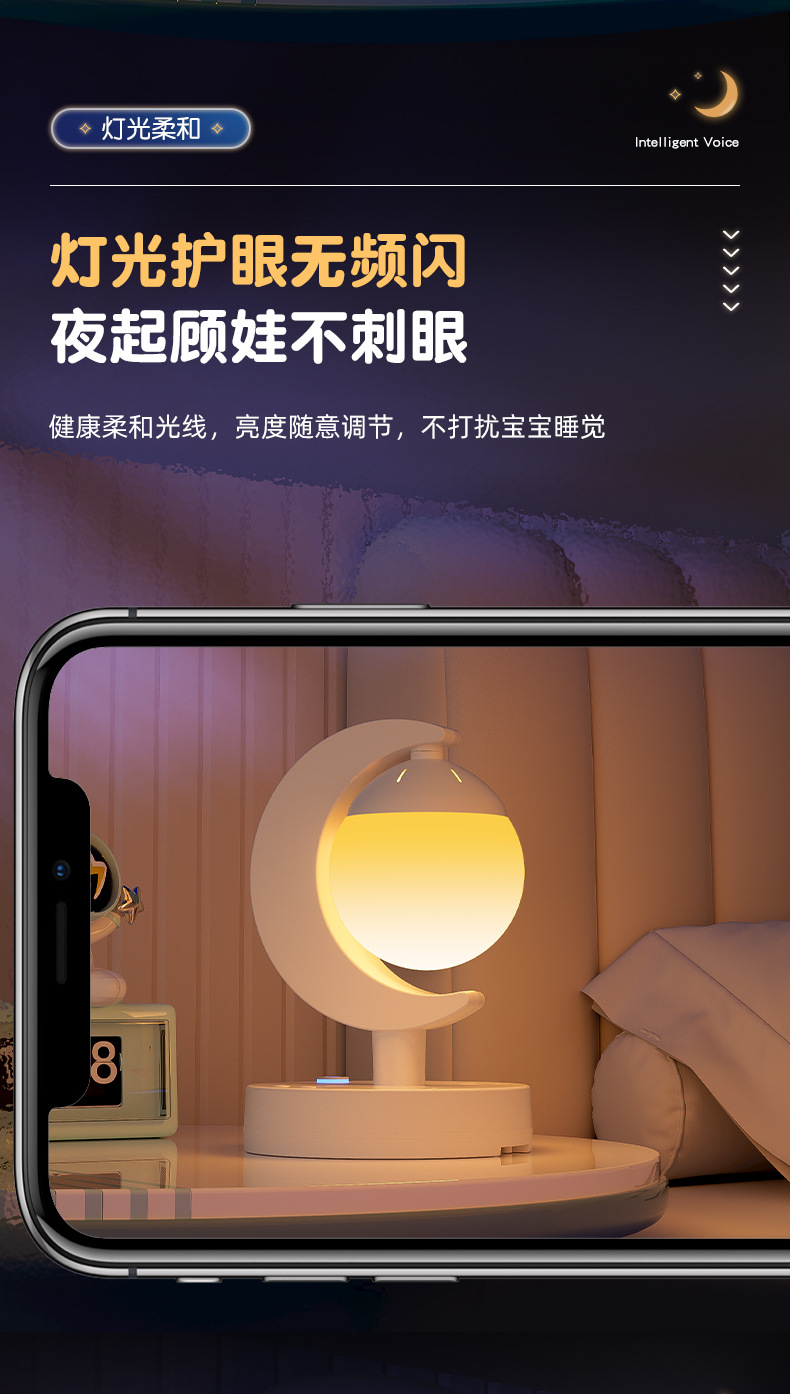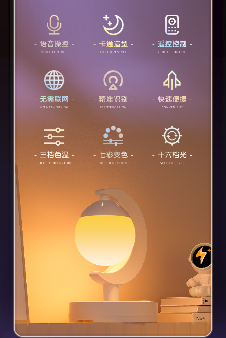 Прикроватная лампа для спальни, голосовой пульт дистанционного управления, настольная лампа, светодиодная атмосферная лампа, многофункциональный ночник, лампа для защиты глаз
