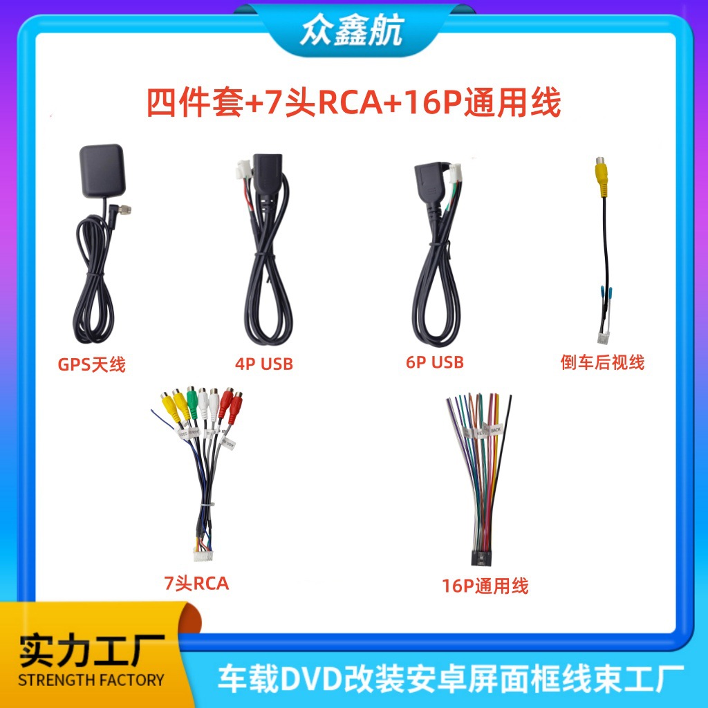 Комплект из 4 предметов + 7-головный RCA + универсальный кабель 16P.; Набор из 4 предметов + 7 головок RCA; Комплект из 4 предметов + 16П универсальный; 4 комплекта; 7 головок RCA; 4P USB; 6P USB; Взгляд задним ходом; GPS антенна; 4G антенна; 16P Универсальная линия
