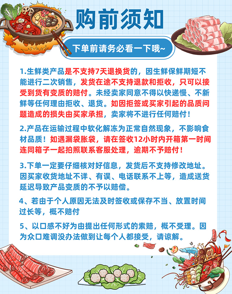 *Любая покупка [Бесплатная доставка при заказе более 50 сумок]; Кишки свиные свежие 180г/пакет; 1.0m Сырые утиные кишки 500 г/пакет (содержание твердых веществ ≥75%); Кишки свежего гуся 180г/пакет; Сырые гусиные кишки 500 г/пакет (содержание твердой части ≥75%); Свежая плазма утиной крови 500 г/пакет (требуется приготовить дважды, из одного пакета получается 7–8 порций); Острая печень Сяоцзюнь 150 г/пакет (без шампуров); Spicy Dance Xiaojun печень 500 г/пакет (без знаков); Хао Ю Гун Хрустящее анхойское филе рыбы 150 г/пакет; 6 штук гусиных мешочков с 6 ножами/пакет (3 ножа/полоса); (13 шт.) Филе краба Bawang Thousand Silk 1 кг/пакет; V-образные крабовые палочки, 1 кг/пакет (около 55 штук); Пельмени из рыбной кожи и креветок 180г/коробка (упаковка 6 шт.); Рыба треска розовая 170г (10 шт.)/пакет; Слайд кальмара из черного золота 500г/пакет; Haoyu поставляет желтое горло свиньи Цяньси, 500 г/пакет (твердое вещество ≥80%); Мягко сваренный кальмар 500 г/пакет (твердость ≥80%); Кальмар-ракета Haoyu 1 кг/пакет (твердое вещество ≥80%); Нож для пшеничных цветков черный кальмар 1 кг/пакет (твердое вещество ≥80%); Цветок медузы 500 г/пакет (содержание твердых веществ ≥50%, около 10-12 штук); Несколько нарезанные кусочки раковины, 200 г/пакет (содержание твердых веществ ≥100 г); Тушёный говядина 1 кг/пакет (содержание мяса ≥65%); Хаою предоставляет золотистые тушеные куриные ножки, 1 кг (без супа).; Жареные в масле черные золотистые куриные наггетсы 500 г (без супа); Курица Qingyuan ручной резки 150 г/пакет; Ротанговое перцовое масло королевское куриное 500 г/пакет; Передовые куриные сухожилия 1кг/пакет (около 170 штук, без учета шампуров); Пыльца бобов-пудинга 600 г/пакет (можно приготовить 36 мисок); Рисовый пирог «Золотое яйцо» (6 шт.) 150 г/пакет (содержит коричневый сахар + бобовую муку); 5 пакетиков клейкого рисового пирога со снежинками (по 8 штук в пакете + 30 г сиропа) + 1 пакетик отрубей со снежинками.; 5 пакетиков фиолетовых рисовых клейких рисовых пирожных (8 штук в упаковке + 30 г сиропа) + 1 пакетик отрубей в виде снежинок; Haoyu Thousand Silk Eel (аромат виноградного перца) 130 г/пакет; Кристально нежная свинина фермерского дома, 500 г/пакет (не в вакуумной упаковке, содержит кусочки имбиря); Ручная нарезка костей из свежей курицы, 500 г/упаковка (содержит 8 яичных желтков); (Прямоугольные) Молочные розовые желе из корня лотоса, 118 г/пакет (упаковка из 6 штук); (Сердцевидное) Молочно-розовое желе из корня лотоса, 85 г (7 штук); Тушёные куриные ножки, 500 г/пакет (около 12 штук); Жирные тушеные черные куриные лапки 500 г/пакет (Чистые и Аутентичные); Куриные ножки из тигровой кожи средней длины, 1 кг/пакет (содержание твердых веществ ≥65%, около 20 штук); Креветки-бамбуковые грибы скользкие 168г/пакет (12шт); Костный мозг говяжий 150г/пакет (не вакуумный! Не мыть); Красный молочный бореот 400г/пакет (твердый ≥50%); Юньнаньские галлинофакты 400 г/пакет (твердое вещество ≥50%); Горячая кастрюля с лягушкой (аромат виноградного перца) 200 г/пакет; Лапша тушеная красная 500г/пакет (без этикеток, вакуумная упаковка); Сочные колечки из колбасы, 500 г/упаковка (около 10–12 штук); Головка тушеной колбасы премиум-класса 500 г/пакет (степень удаления масла 80%); Старая тушеная колбаса 500г/пакет (степень удаления масла 80%); Жирная колбаса с пятью специями 500 г/пакет (степень удаления масла 90%); Ароматное клейкое говяжье сухожилие Лао Лу 150 г/пакет; Ароматные клейкие тушеные свиные ноги 250г/пакет (чистый вес); Трипе с пряными приправами 150г