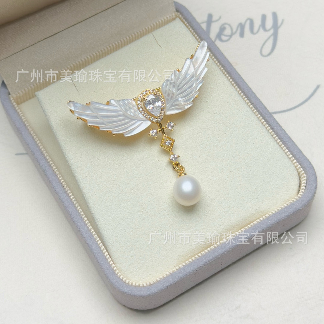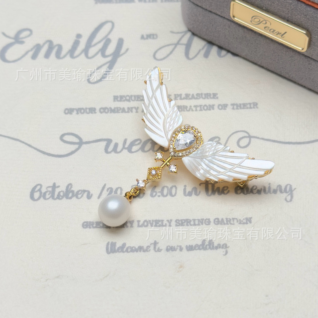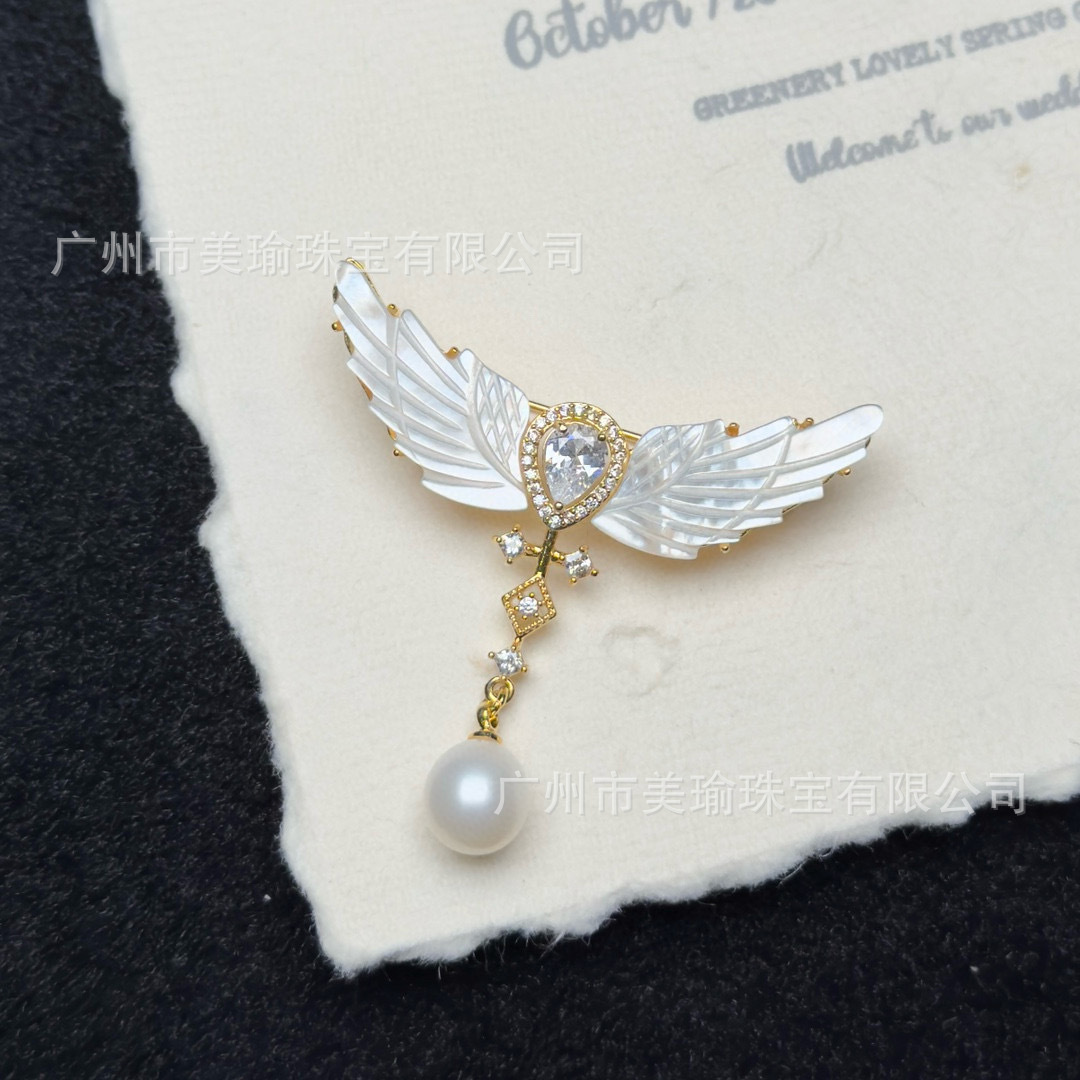 Готовый продукт: брошь «Крылья ангела» из натурального жемчуга, высококачественная, простая и элегантная винтажная брошь-значок, аксессуар для подарка на День матери.