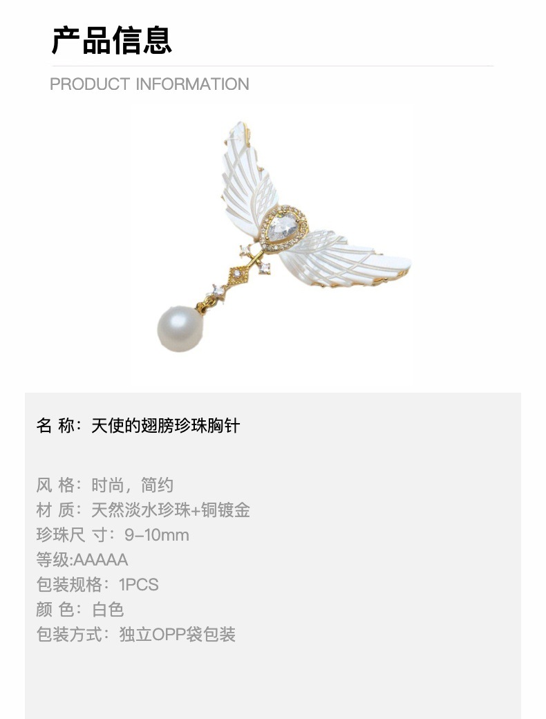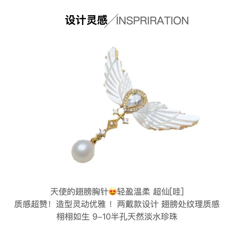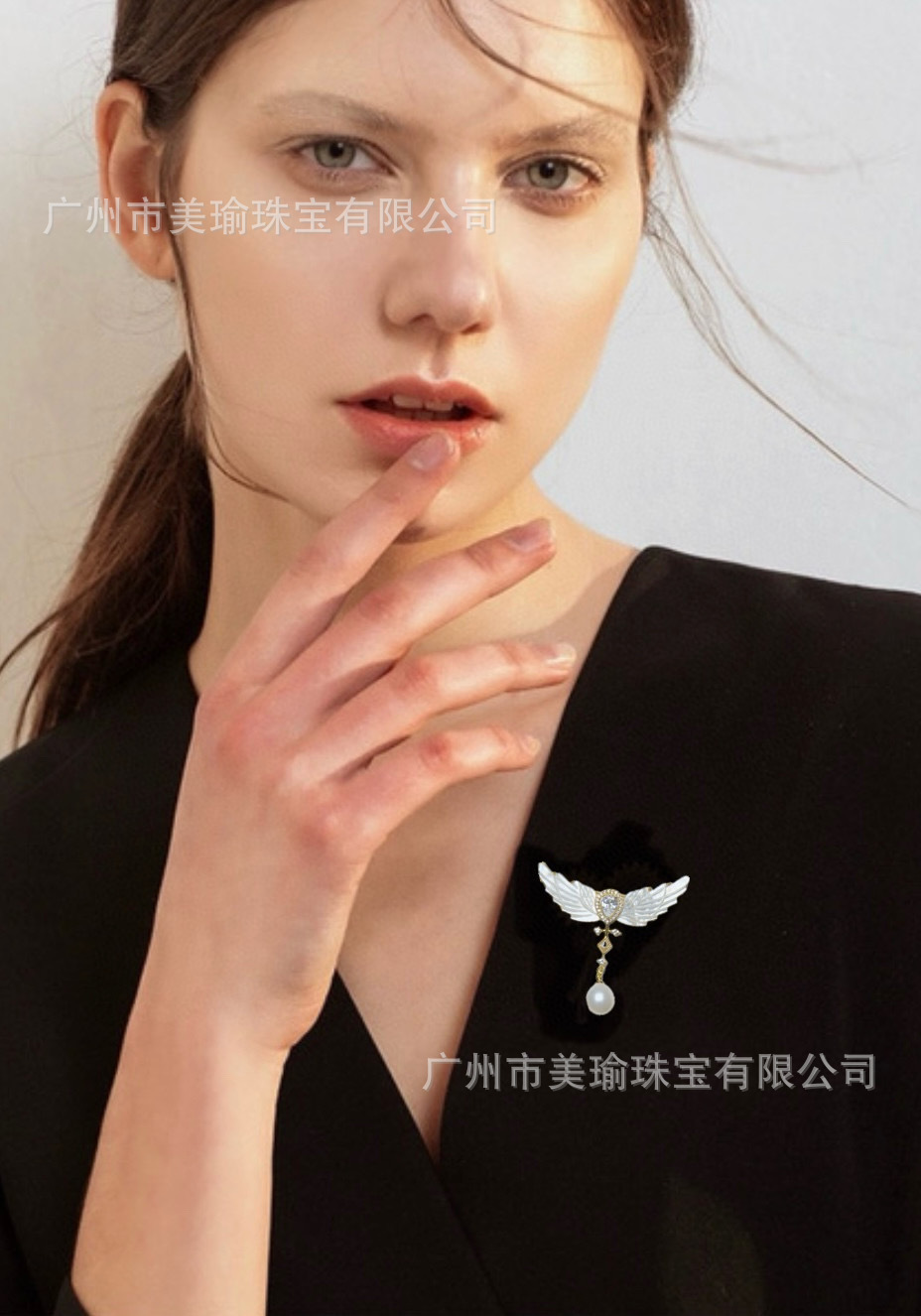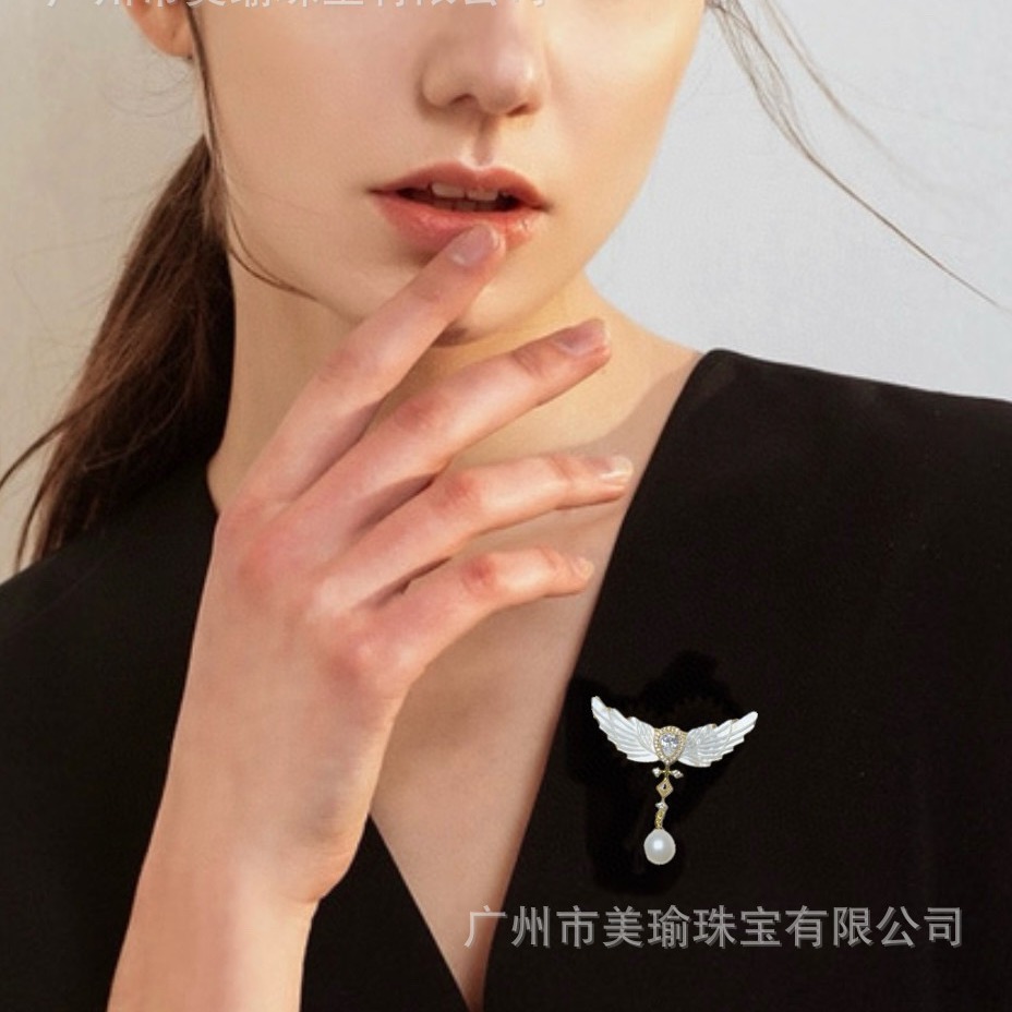 Готовый продукт: брошь «Крылья ангела» из натурального жемчуга, высококачественная, простая и элегантная винтажная брошь-значок, аксессуар для подарка на День матери.