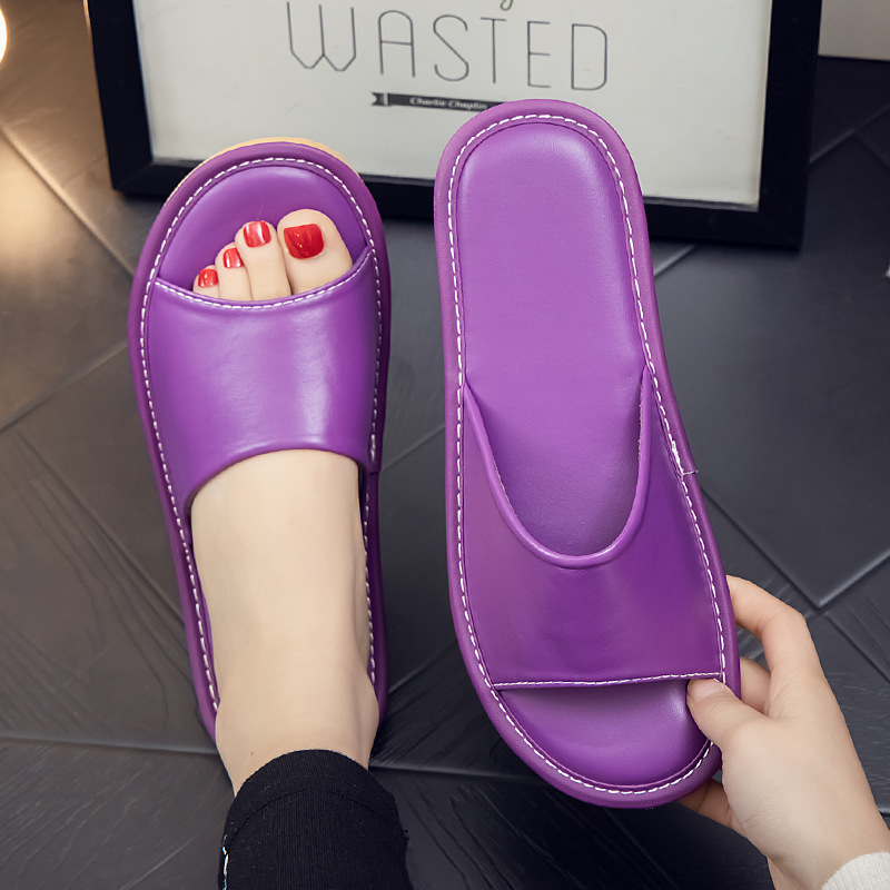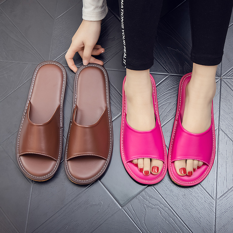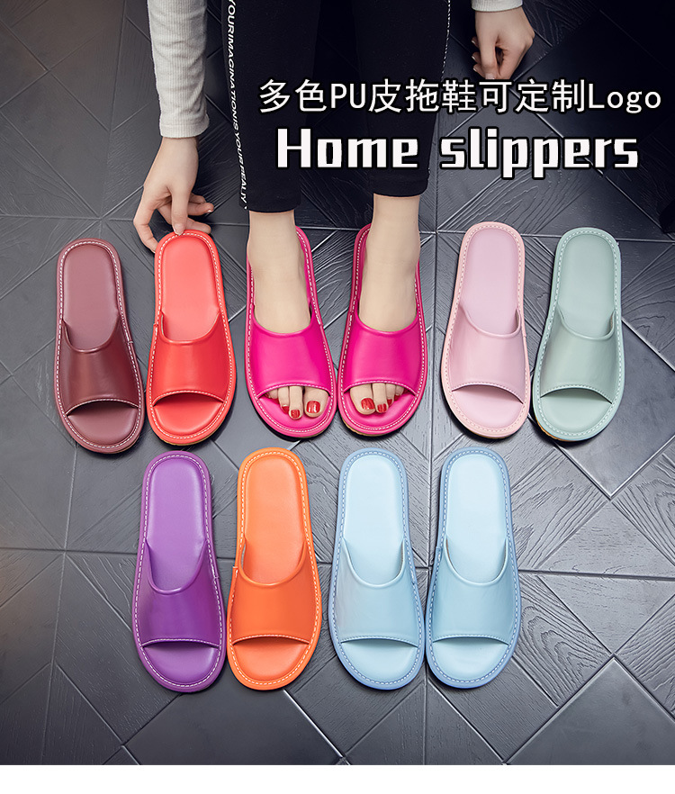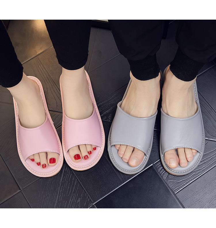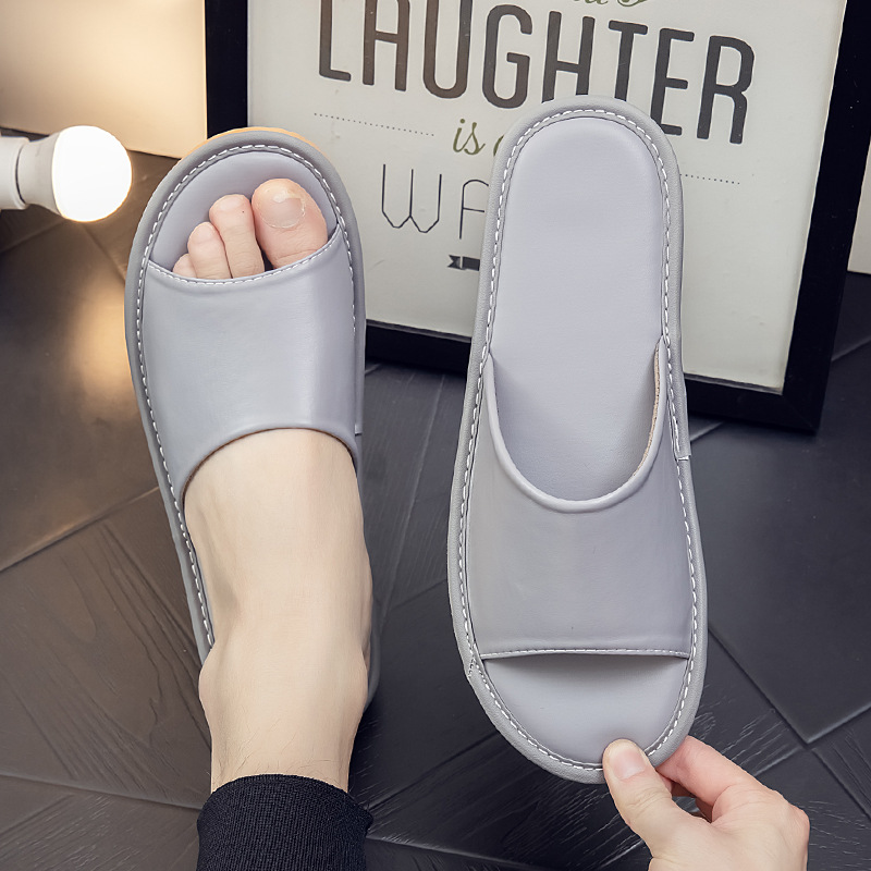 Летние кожаные тапочки для мужчин и женщин, индивидуальный логотип, домашняя примерочная, тапочки для гостиничного салона красоты, мягкая толстая подошва.