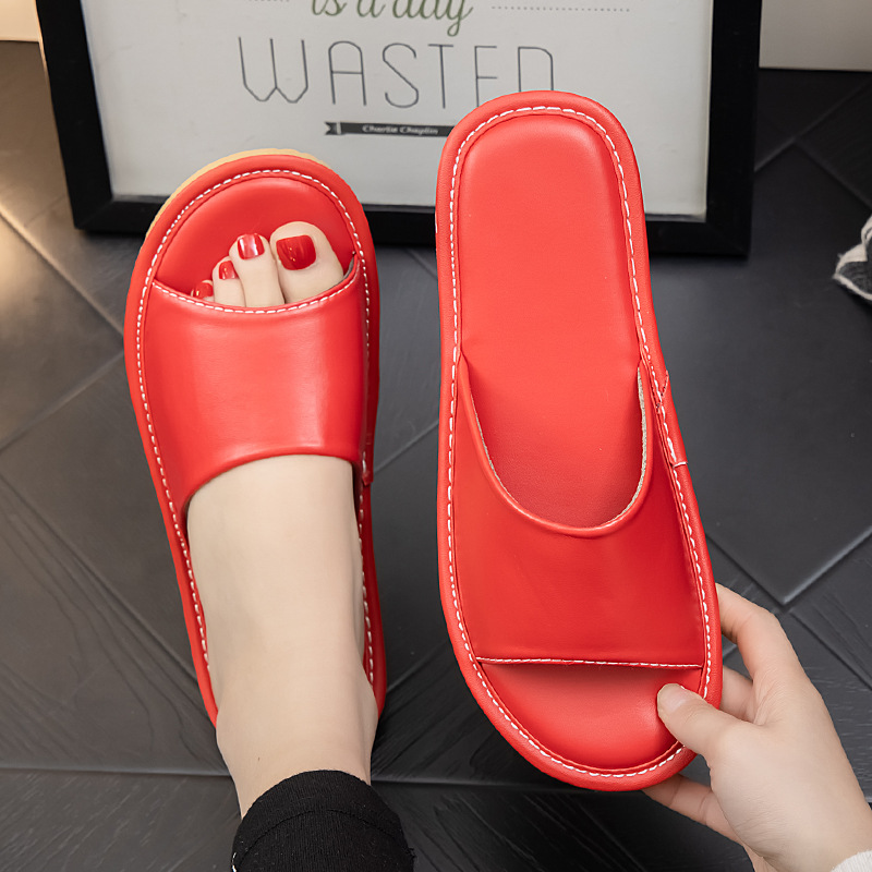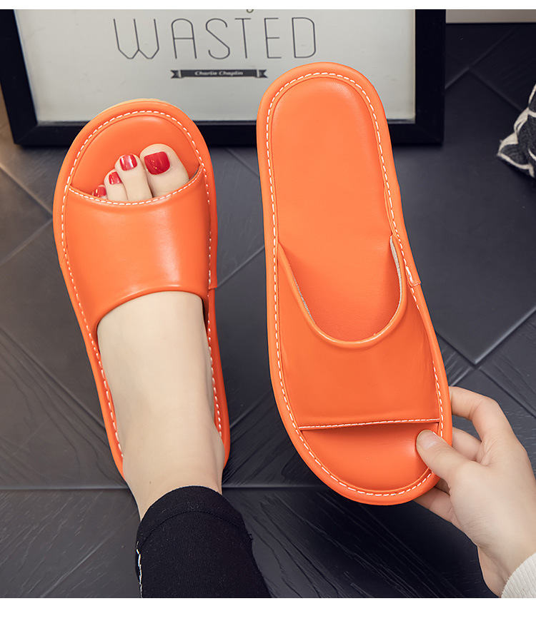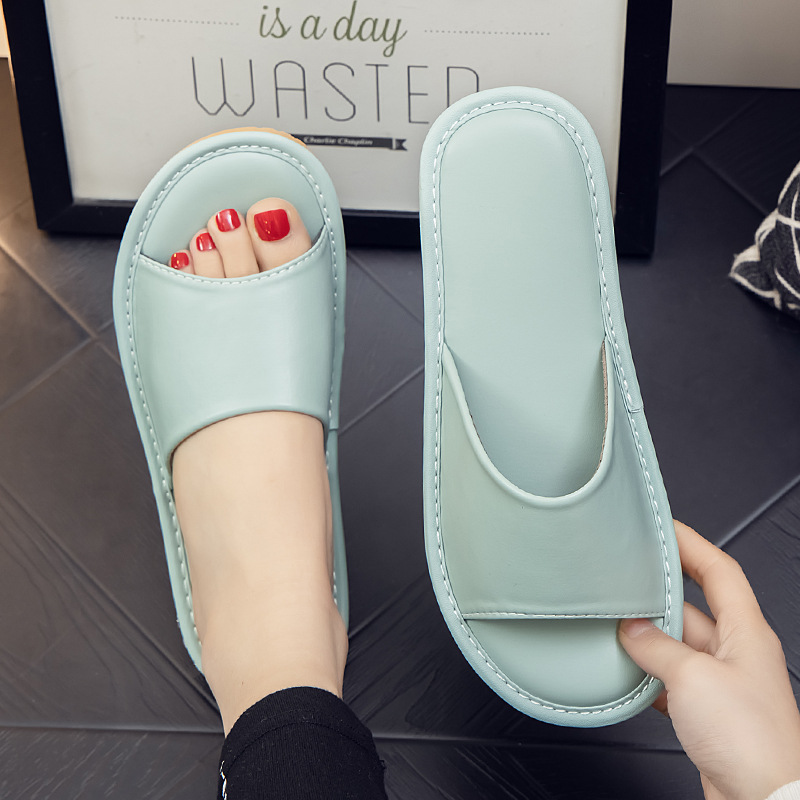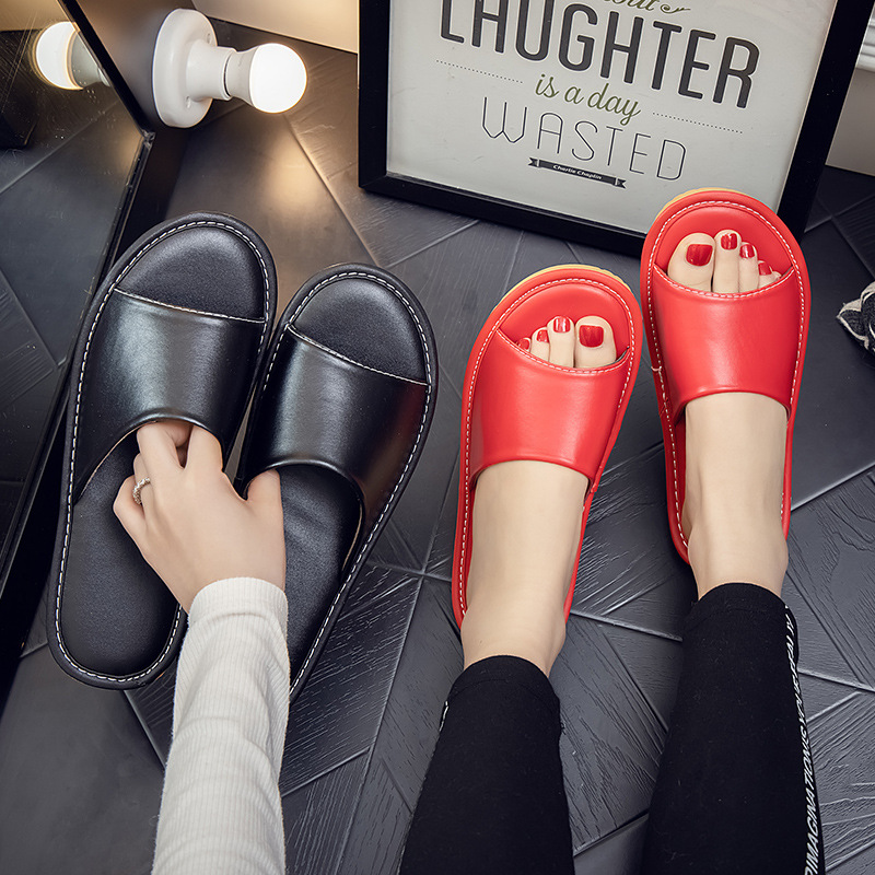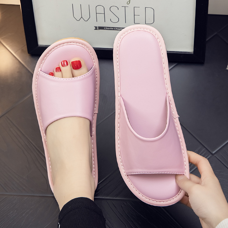 Летние кожаные тапочки для мужчин и женщин, индивидуальный логотип, домашняя примерочная, тапочки для гостиничного салона красоты, мягкая толстая подошва.