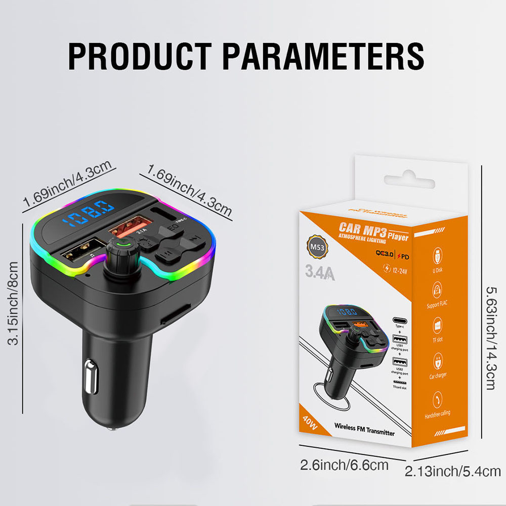 Автомобильный Bluetooth MP3-плеер, функция громкой связи, поддержка USB-накопителей и карт памяти, автомобильный FM-трансмиттер, цветная подсветка