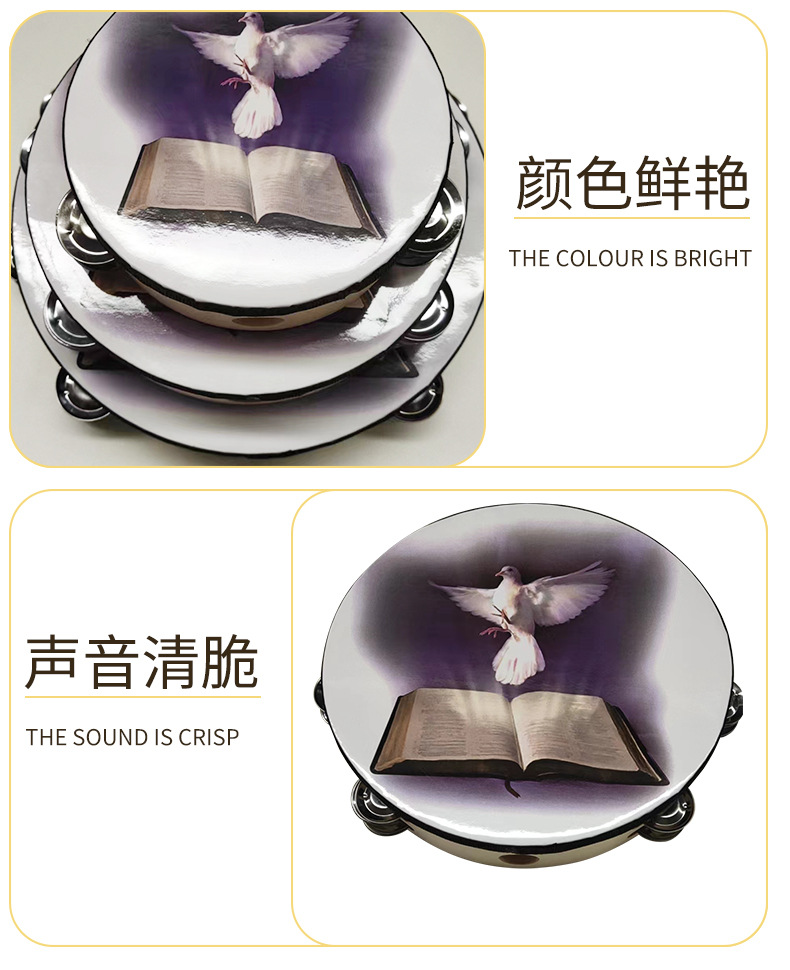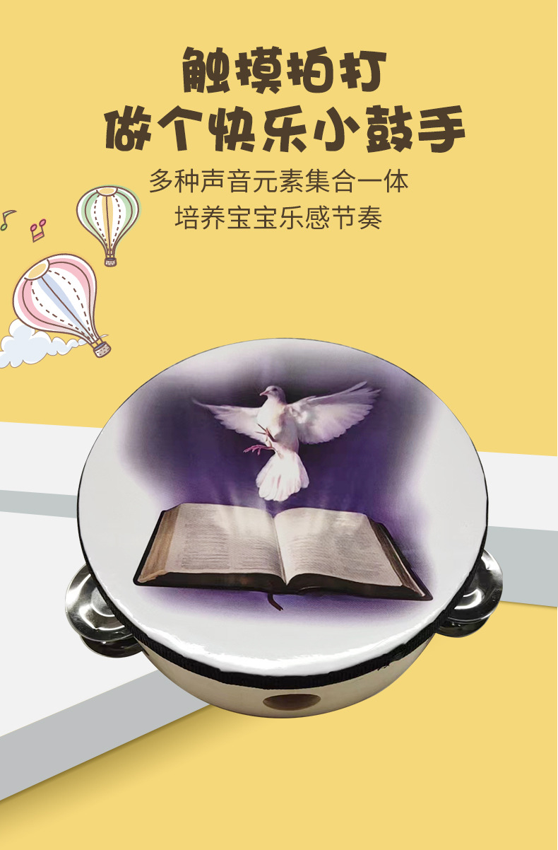 Двухрядный бубен Орф перкуссионный инструмент Двухрядный библейский голубое небо и голубь мира ручной барабан 6 дюймов 8 дюймов 10 дюймов бубен