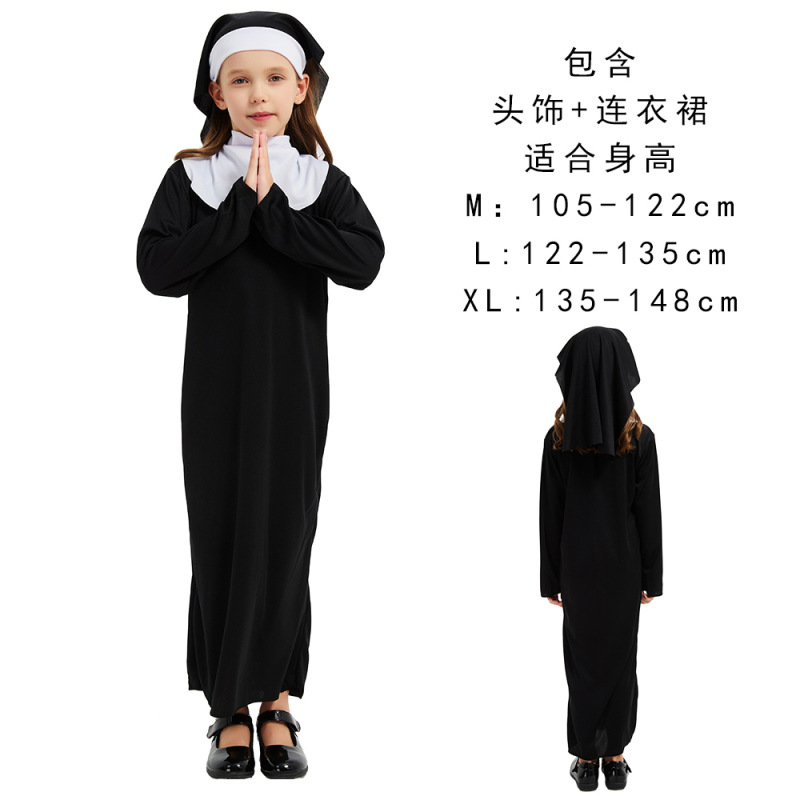 Костюм на Хэллоуин для взрослых: черный костюм монахини/монаха для ролевых игр, драматических представлений и фестивалей (Мария)