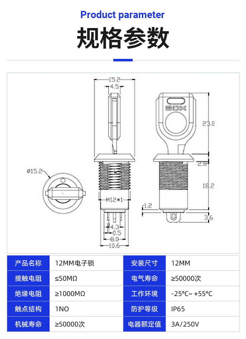 12 мм электронный замок