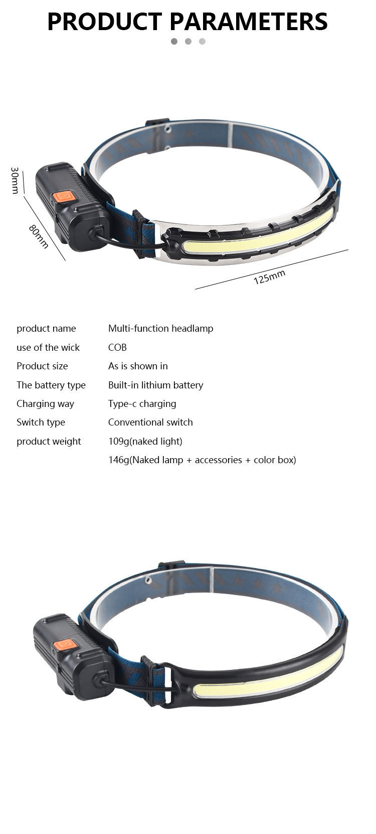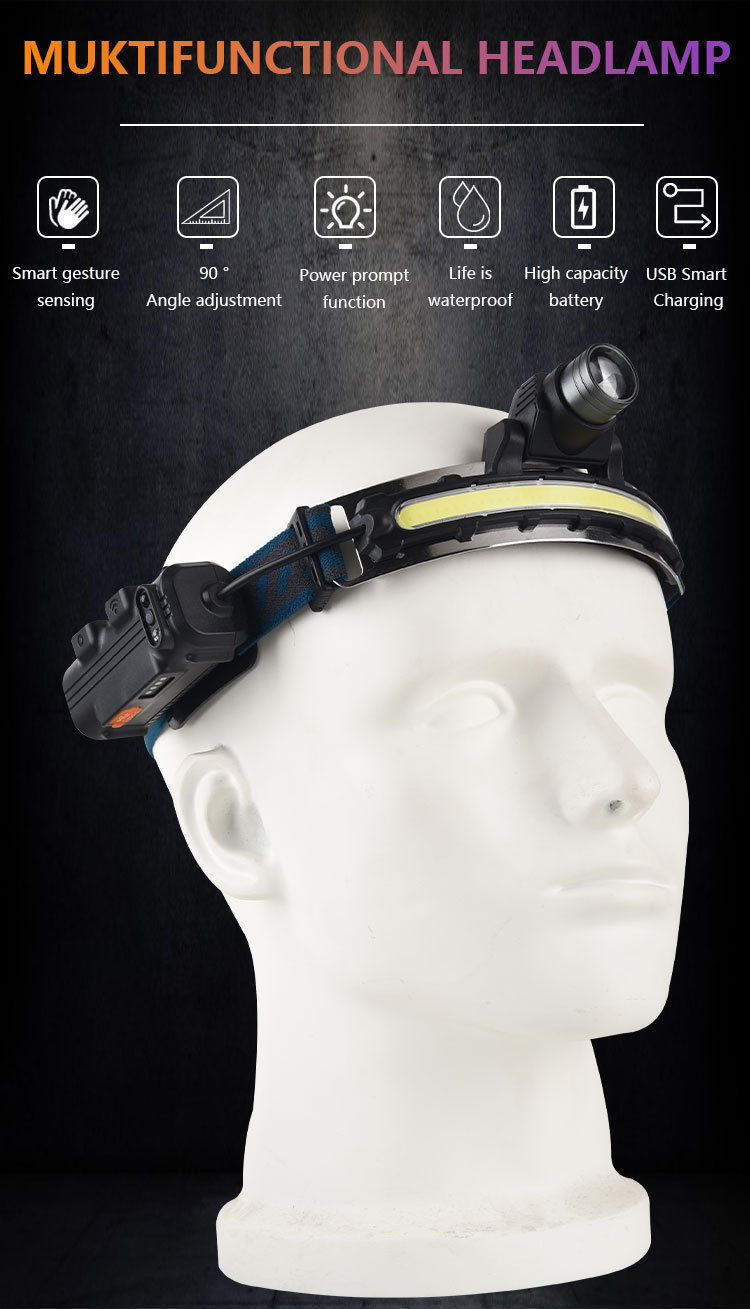 Трансграничный новый светодиодный мини-многофункциональный размах, чтобы надеть свет COB Открытый Приключение Рыбалка яркий фонарик