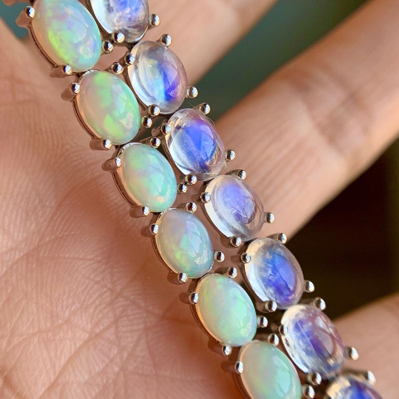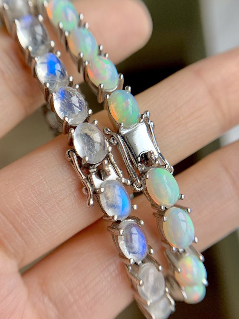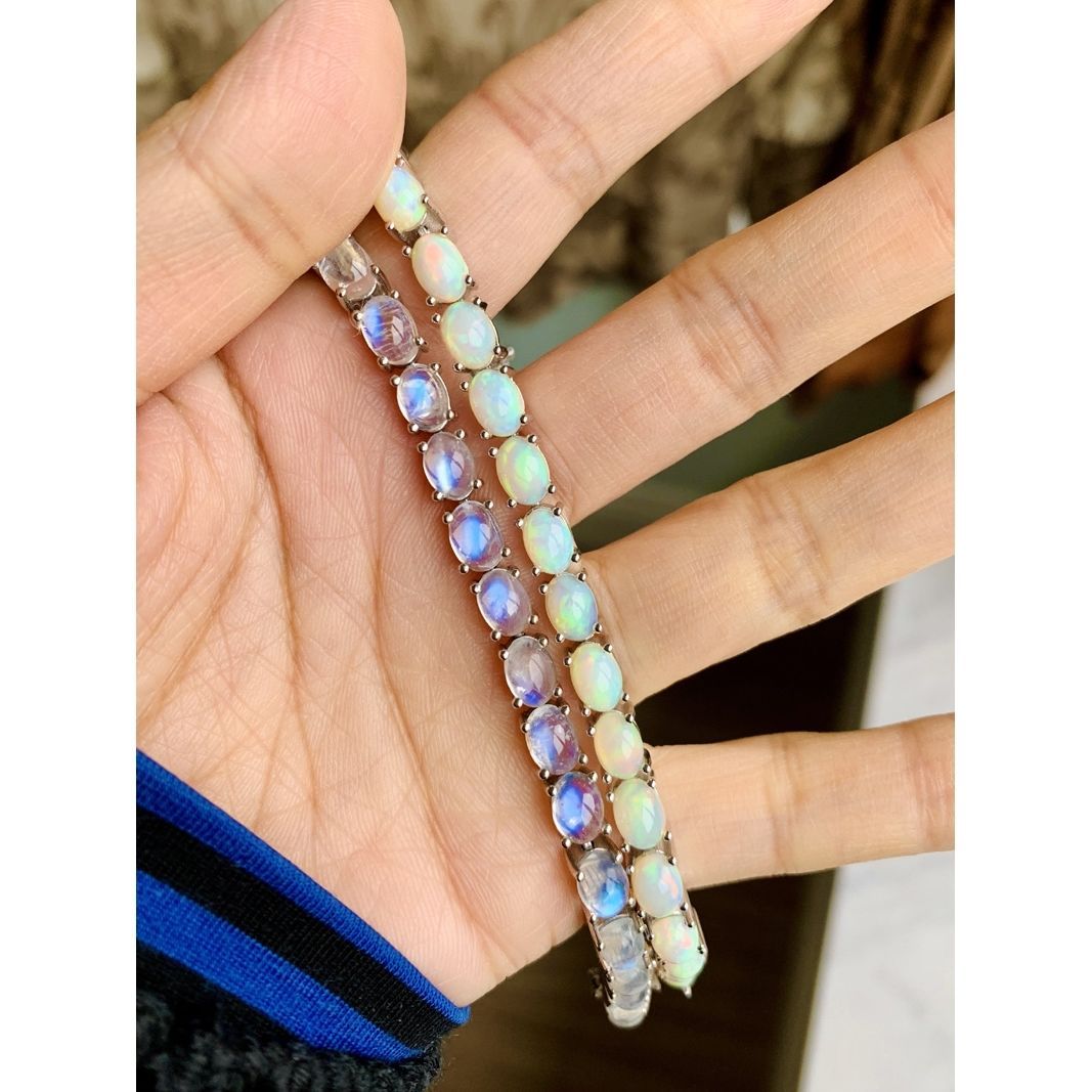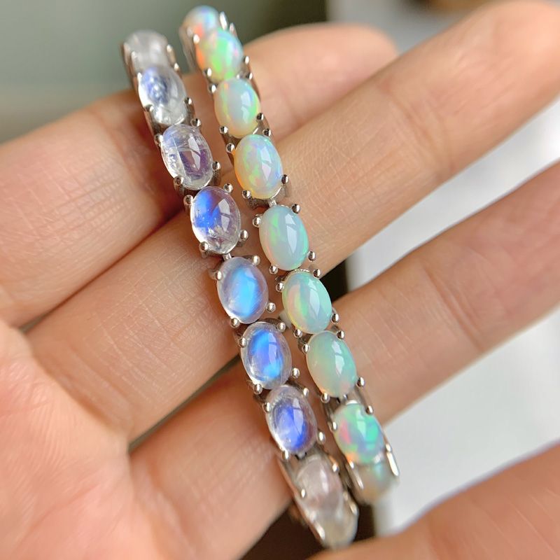 Индийские непальские серебряные украшения из стерлингового серебра с инкрустацией натуральных камней, кристаллов, радужного лунного камня и опала, браслеты и ювелирные изделия