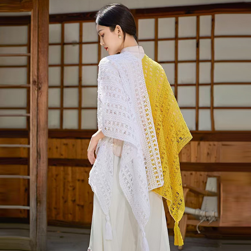 Женская шаль в этническом стиле, летняя верхняя одежда, белый кардиган с изысканным дизайном, вязаный ажурный чонсам в сочетании с накидкой с кистями.