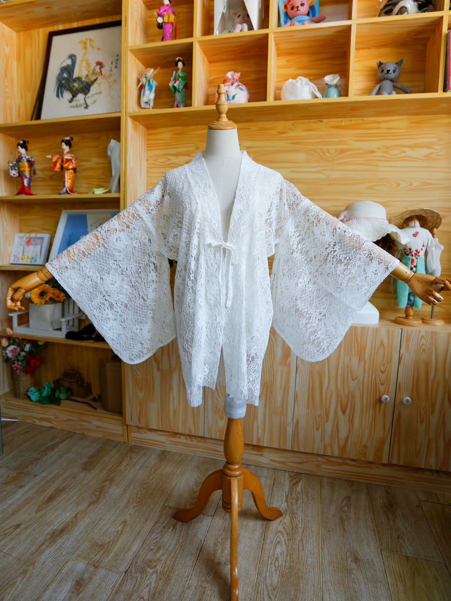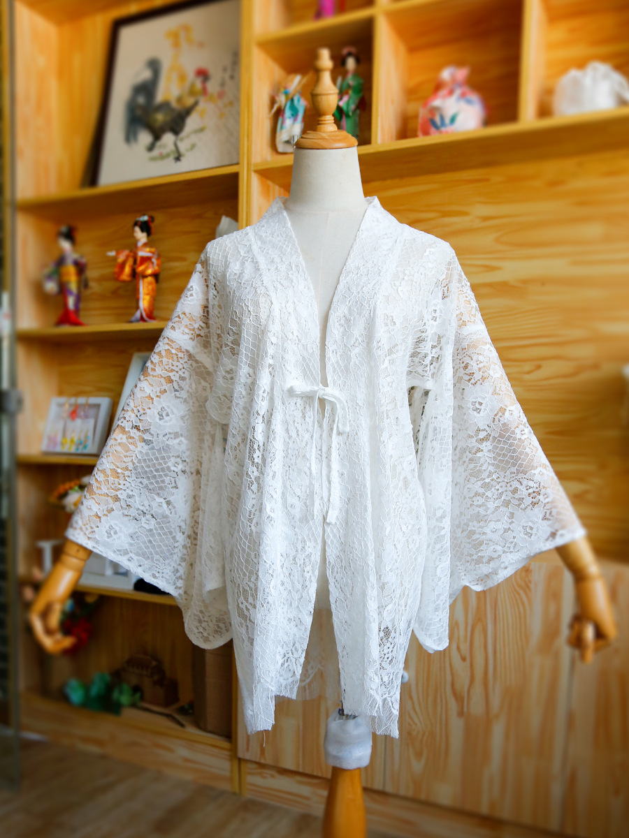 Японское перо ткацкое пальто и ветровое кружевное полое солнцезащитное пальто средней длиной