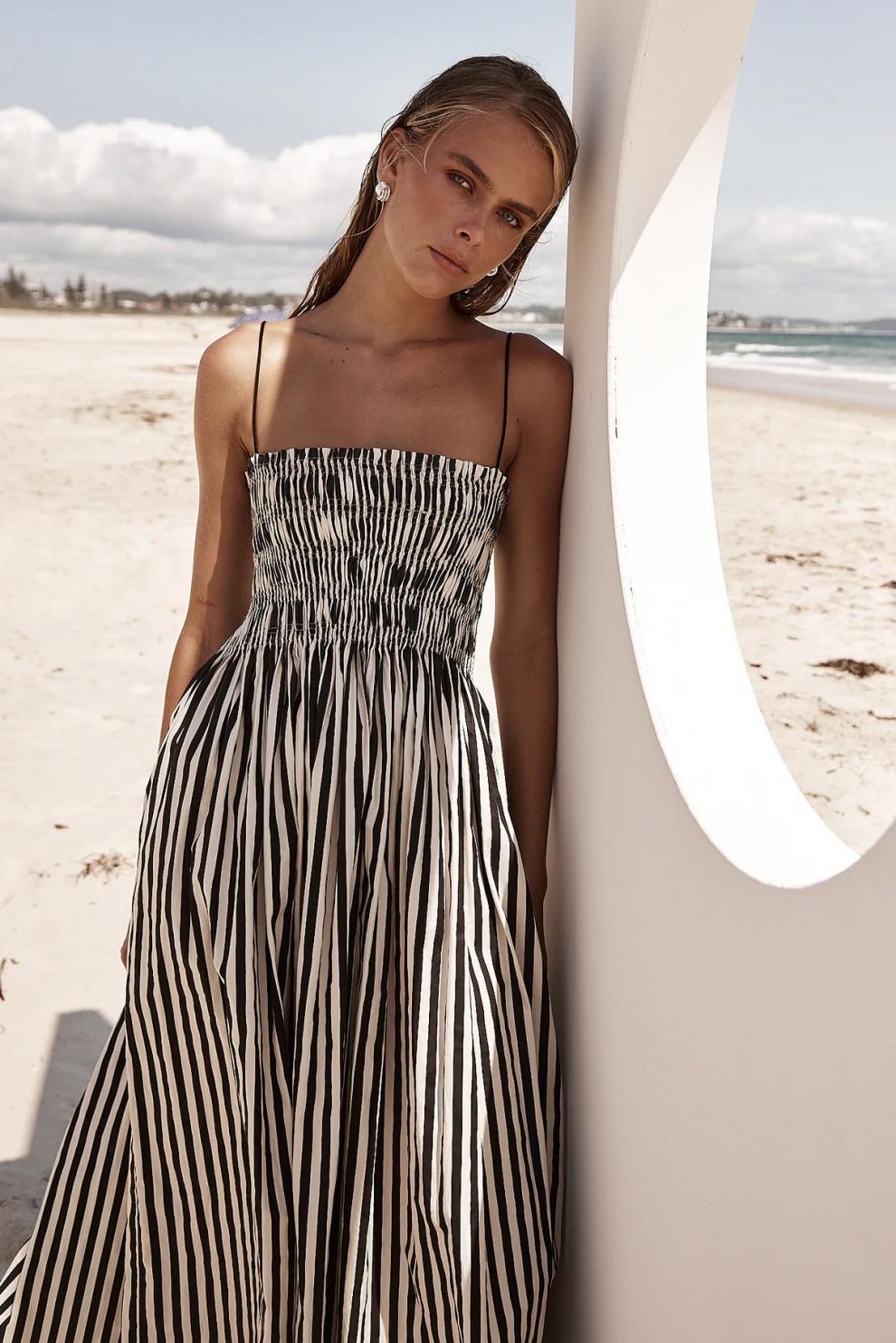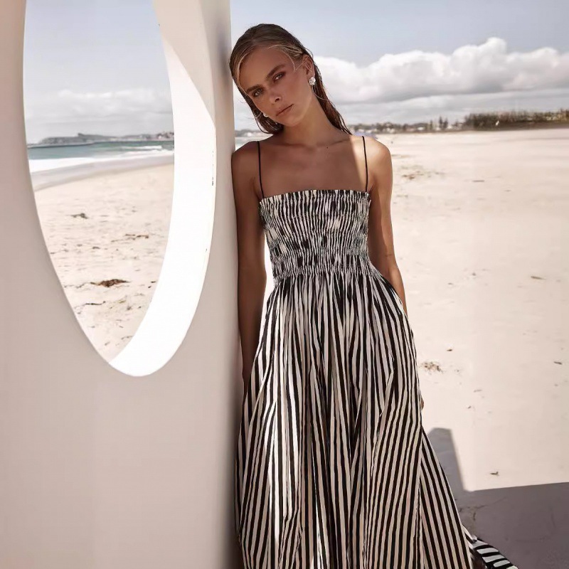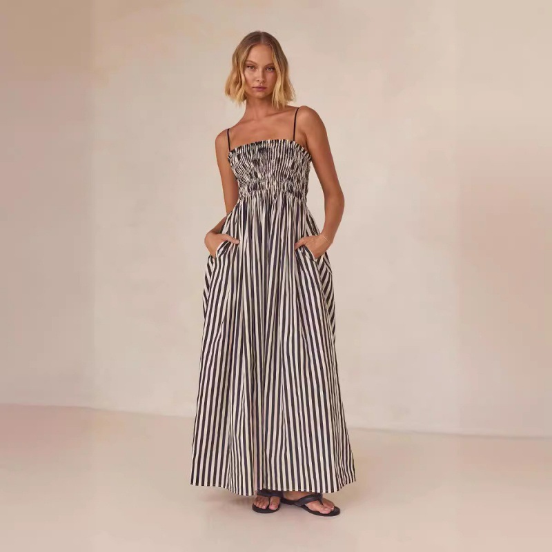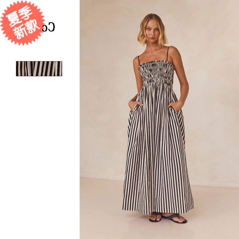 24-летнее европейское и американское трансграничное весеннее и летнее платье в полоску с резиновым принтом
