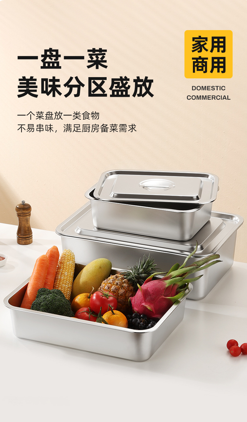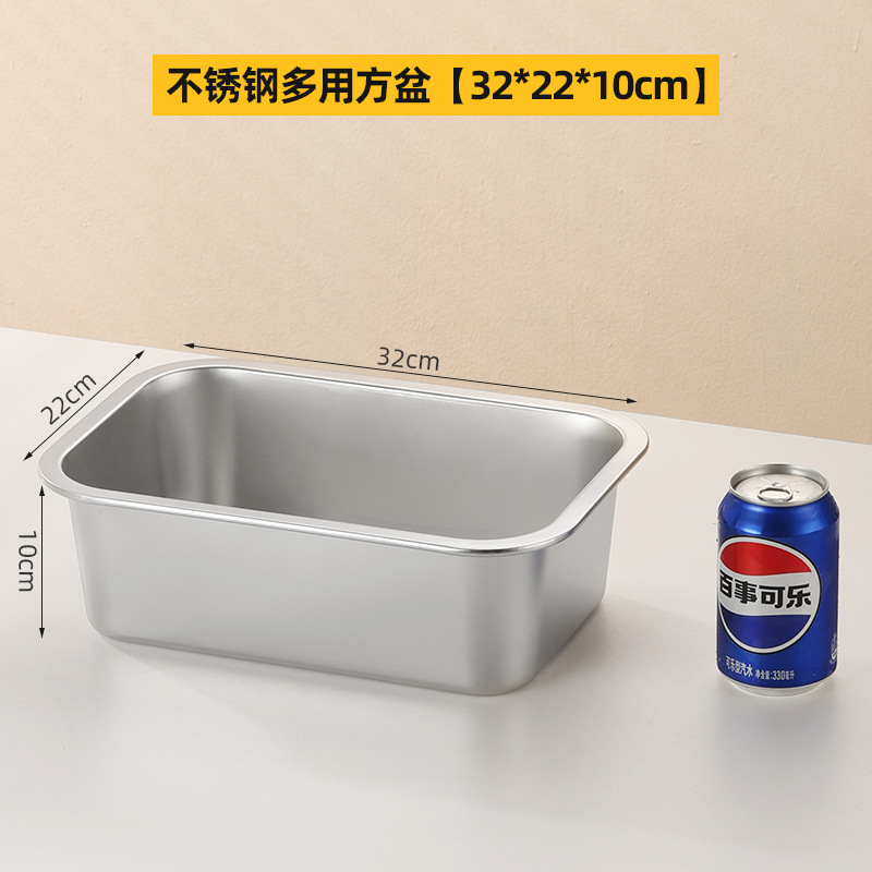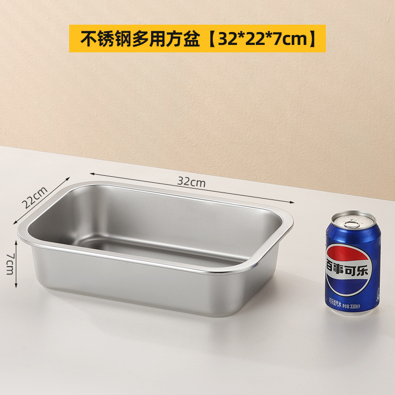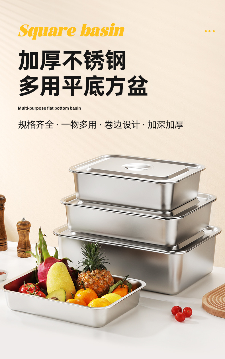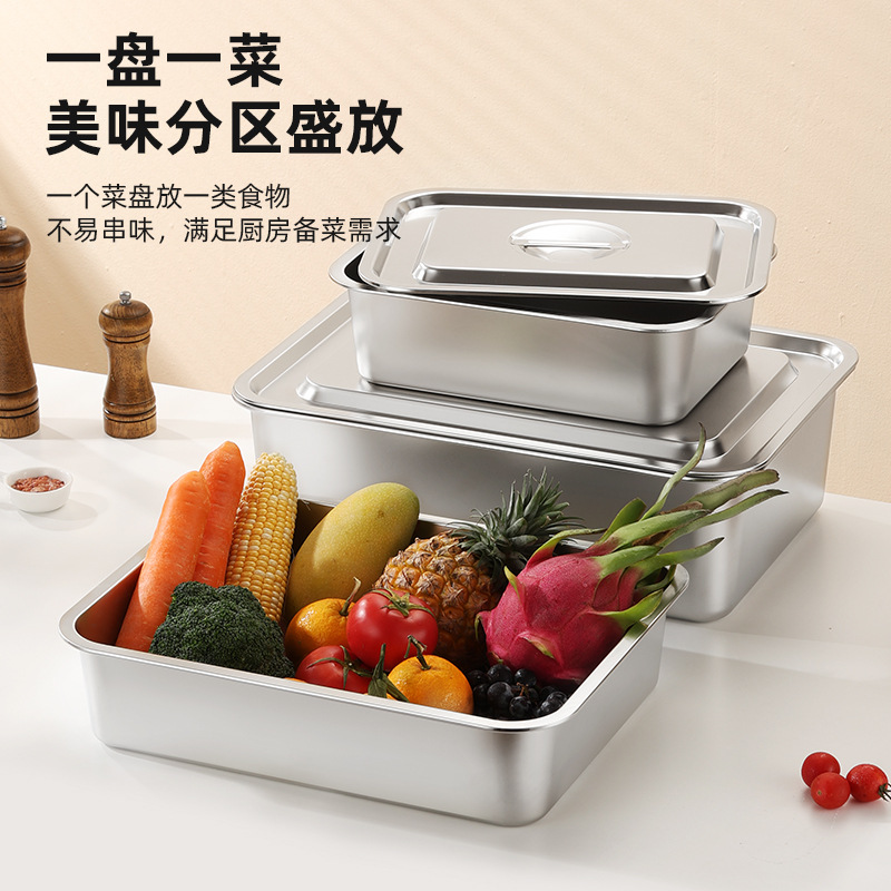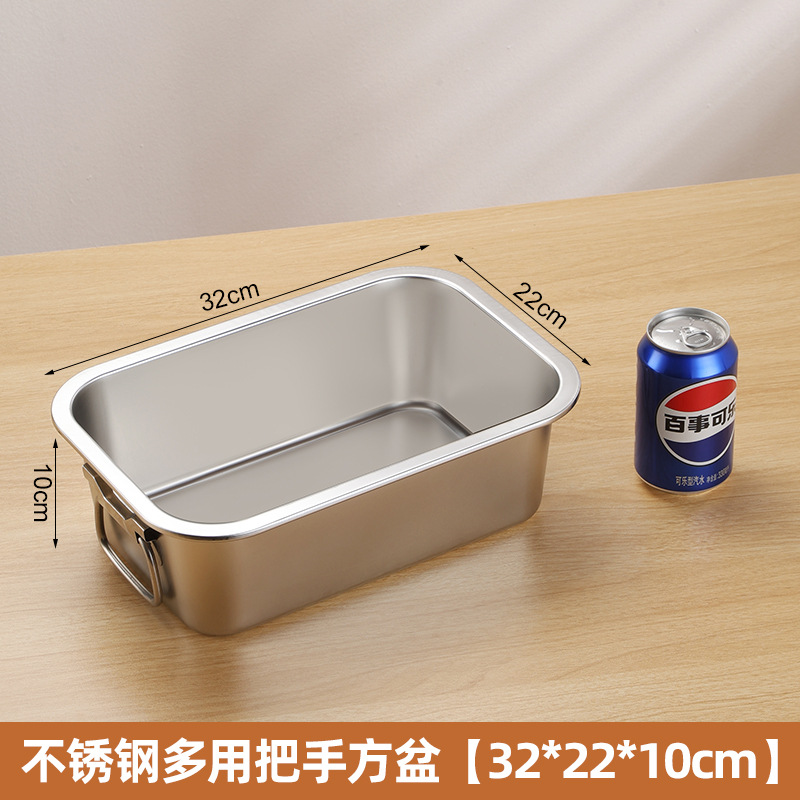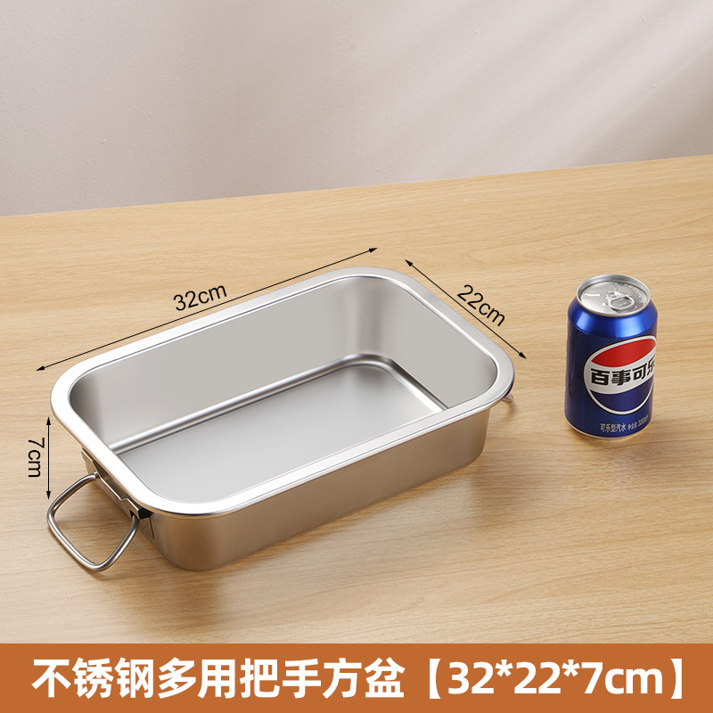 Миска из нержавеющей стали с ручками, утолщенная, с крышкой, квадратная миска с плоским дном, поднос для приготовления риса на пару, миска для фуршета, порционная миска, сервировочное блюдо.