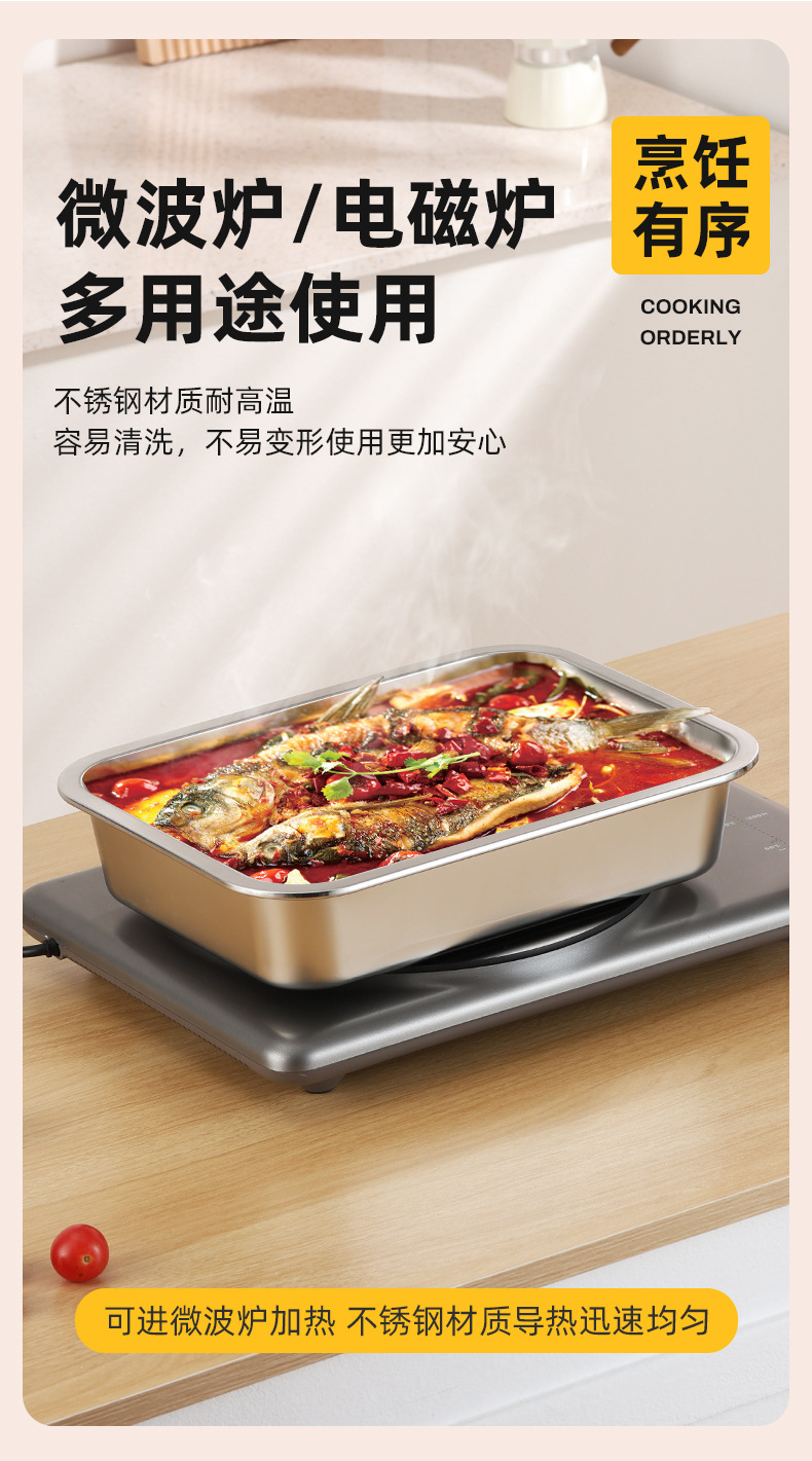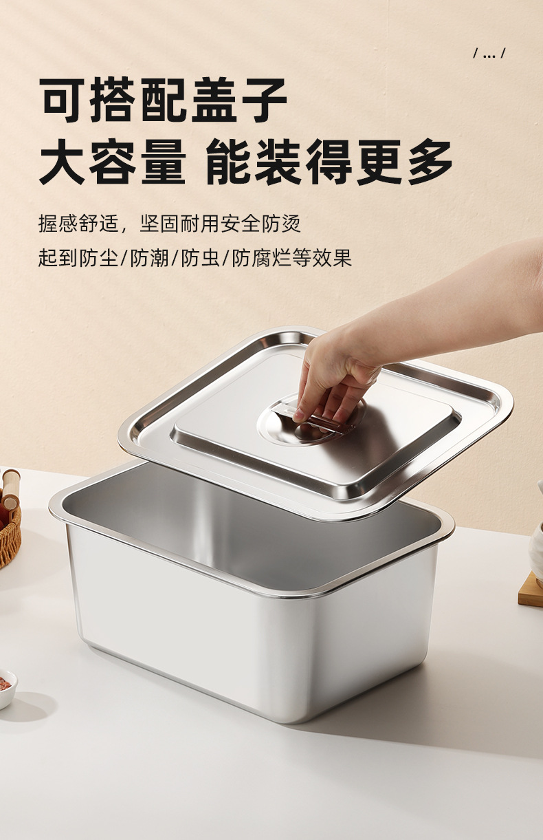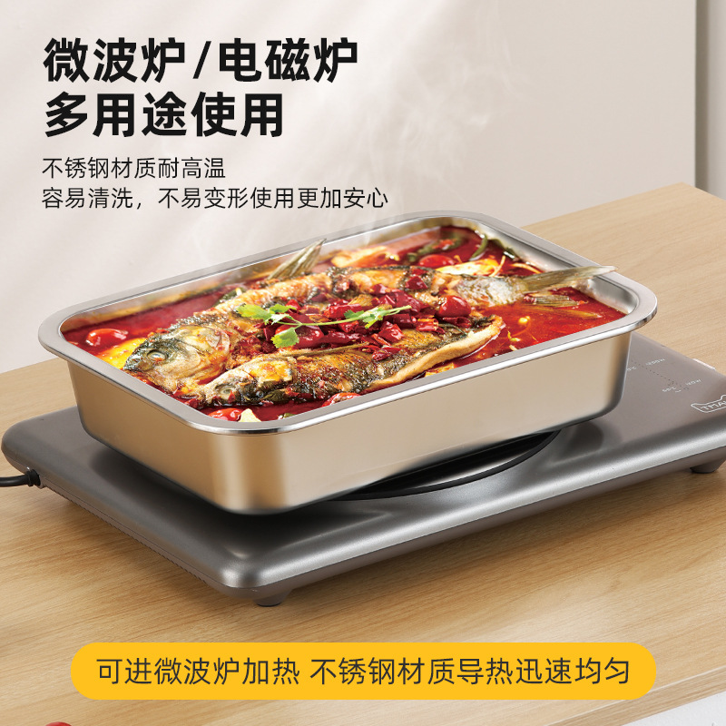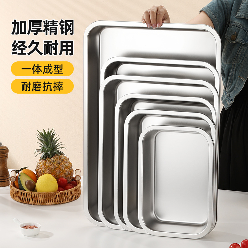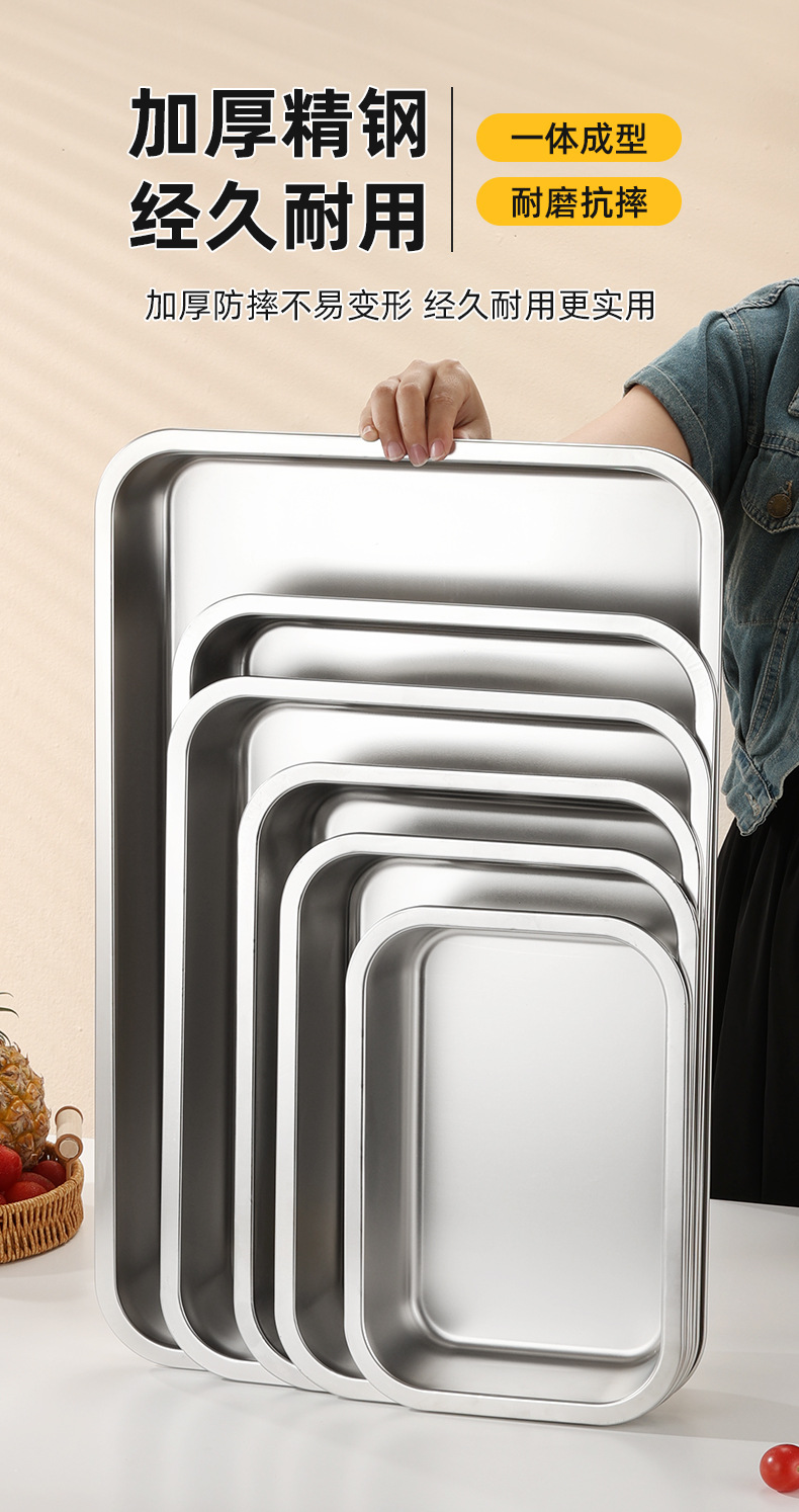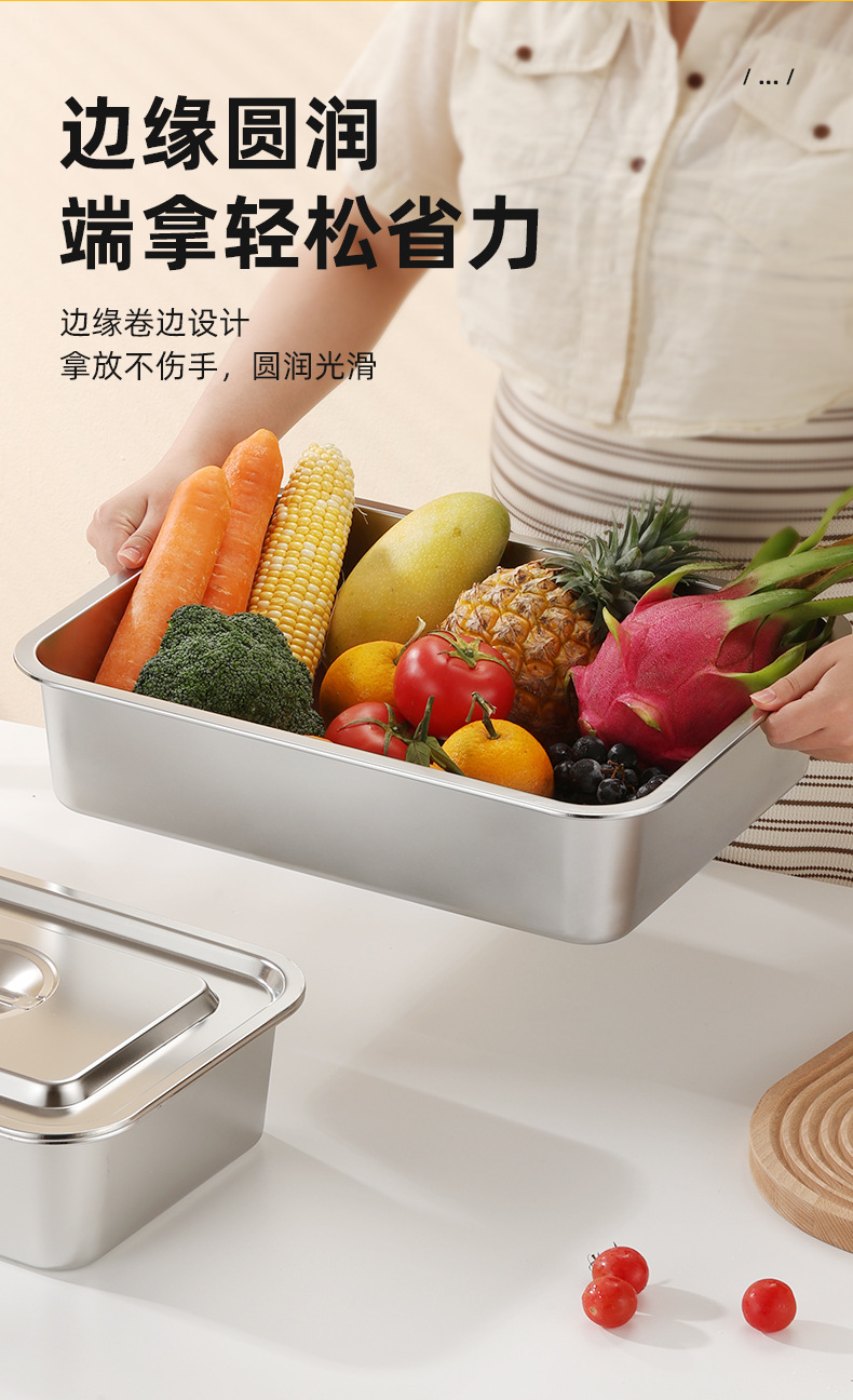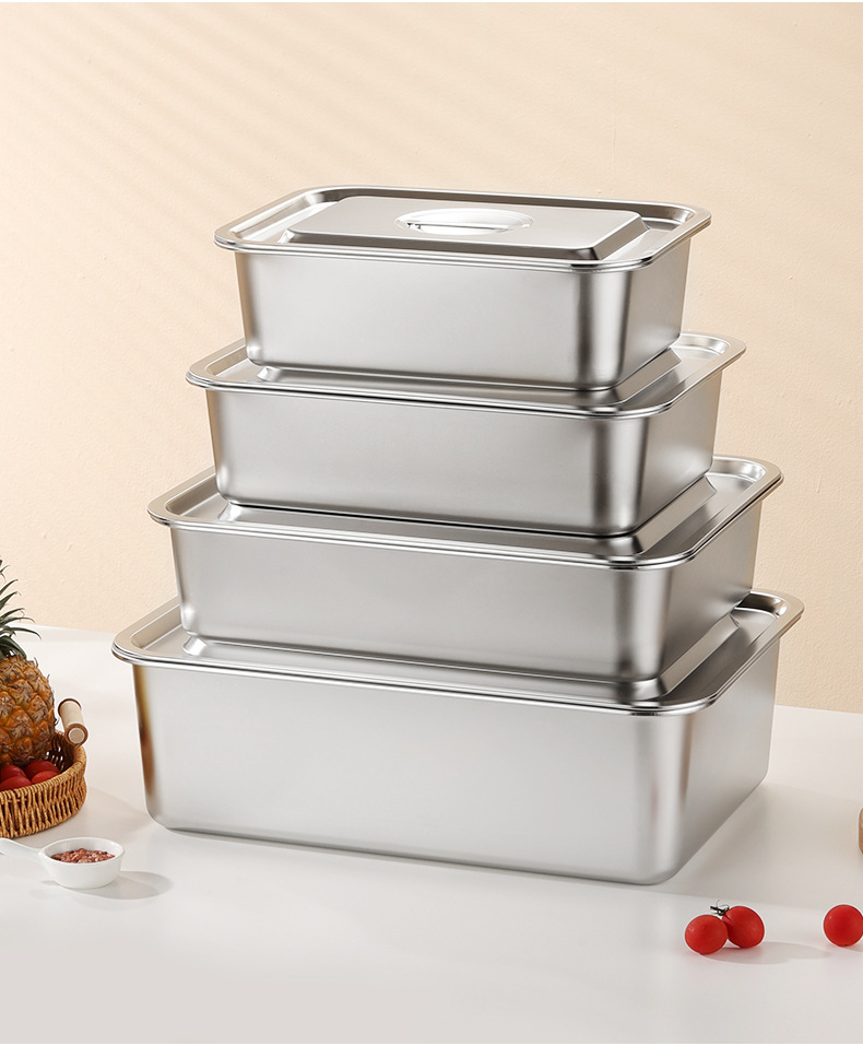 Миска из нержавеющей стали с ручками, утолщенная, с крышкой, квадратная миска с плоским дном, поднос для приготовления риса на пару, миска для фуршета, порционная миска, сервировочное блюдо.