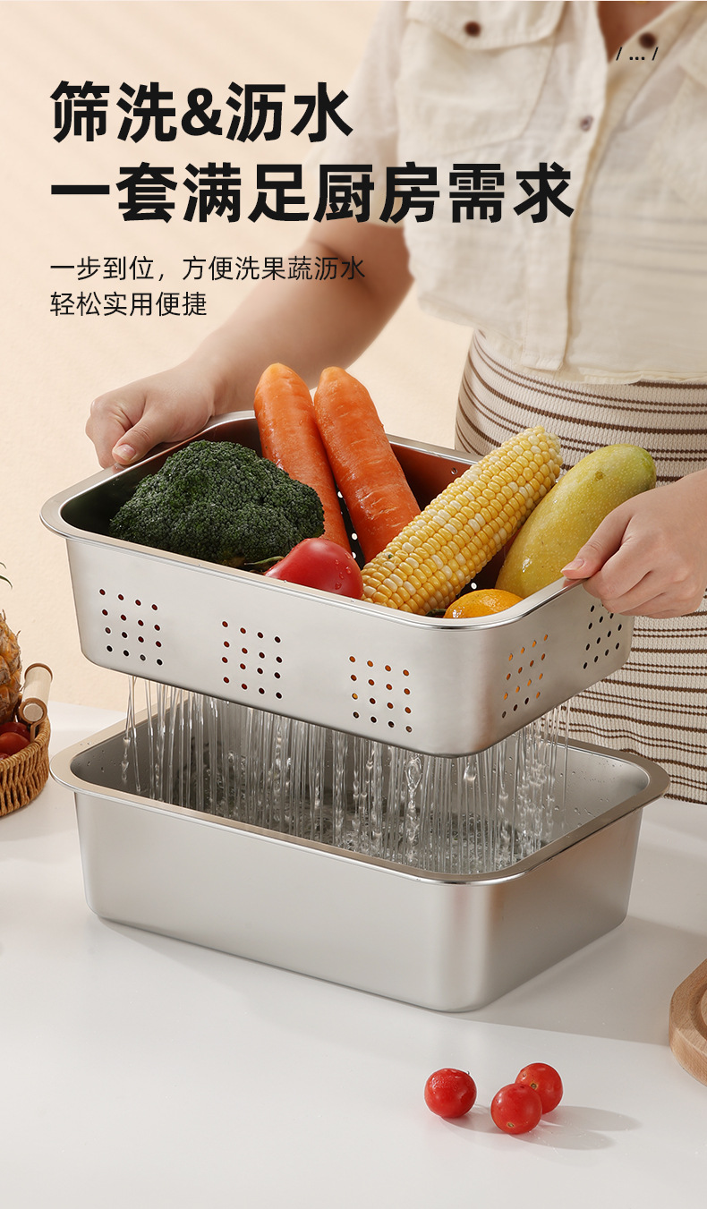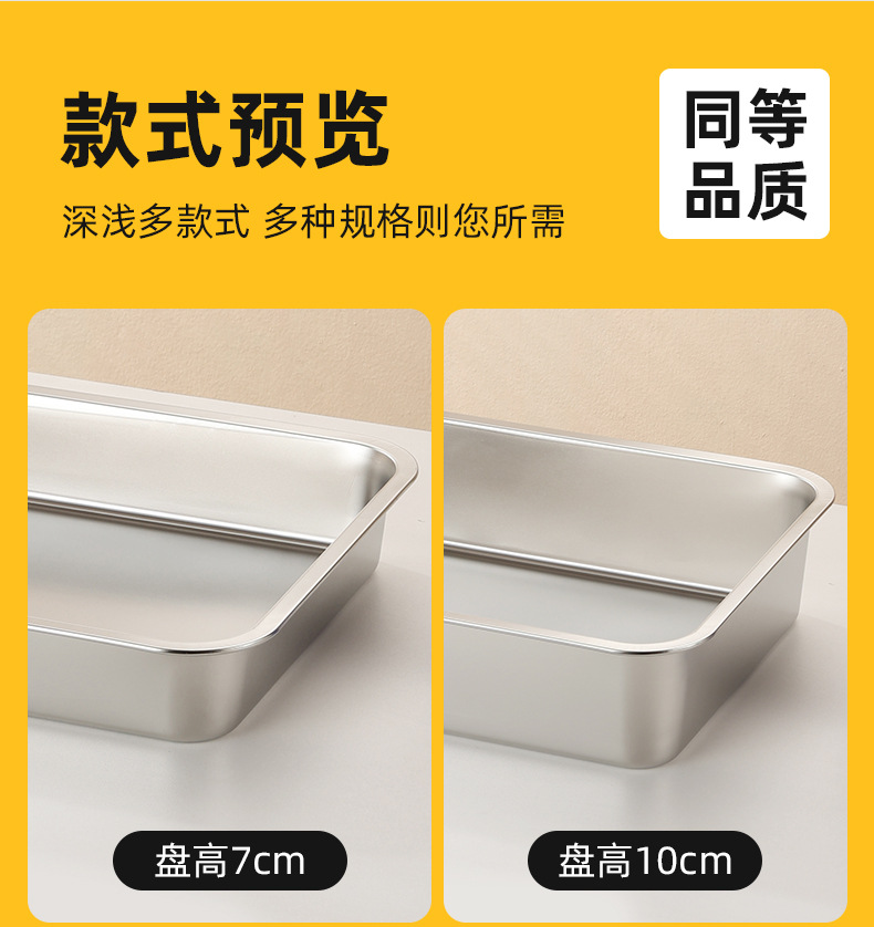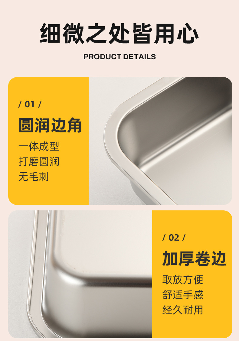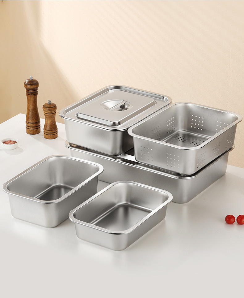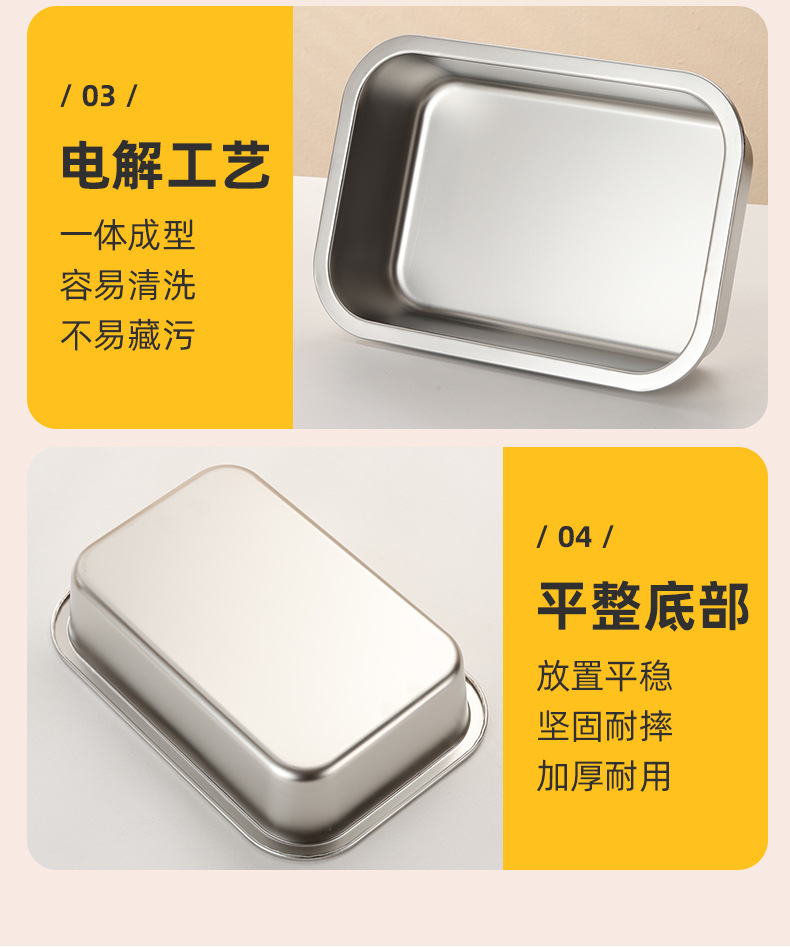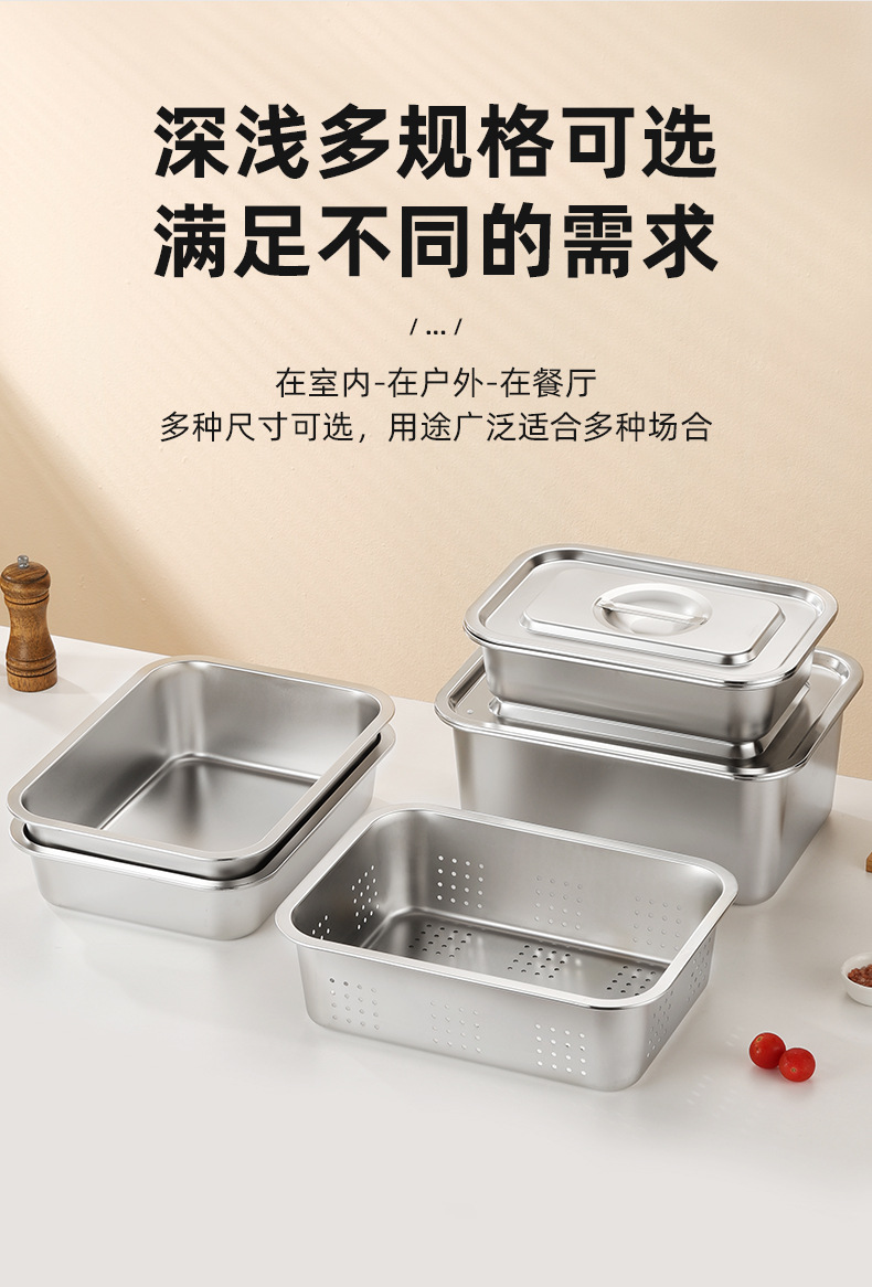 Миска из нержавеющей стали с ручками, утолщенная, с крышкой, квадратная миска с плоским дном, поднос для приготовления риса на пару, миска для фуршета, порционная миска, сервировочное блюдо.