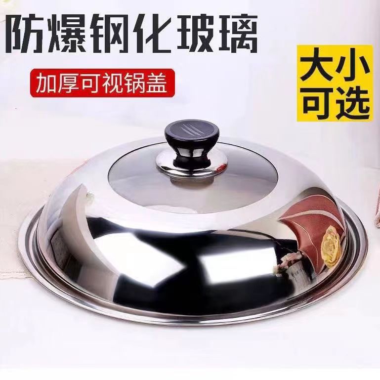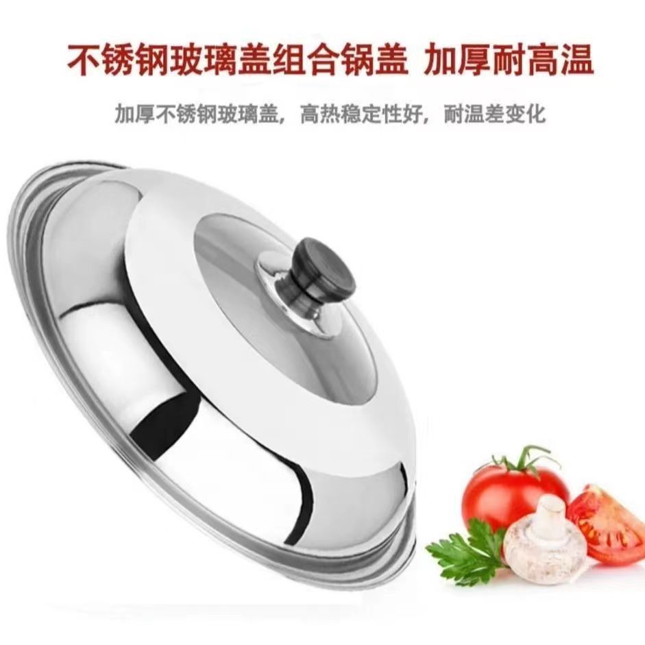 Оптовая продажа, комбинированная крышка, крышка для бытовой кастрюли, устойчивая к высоким температурам, утолщенная перспективная взрывозащищенная стеклянная крышка для кастрюли из нержавеющей стали