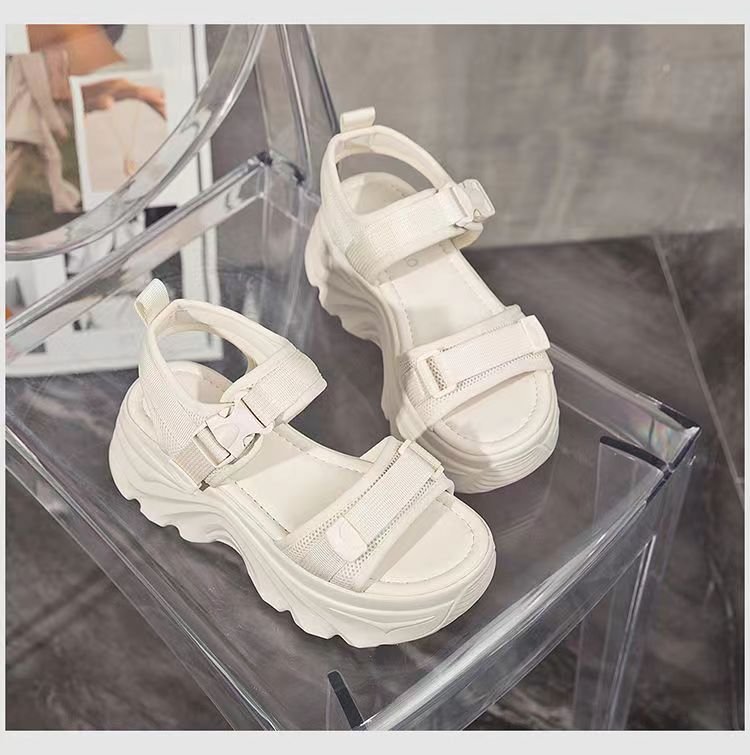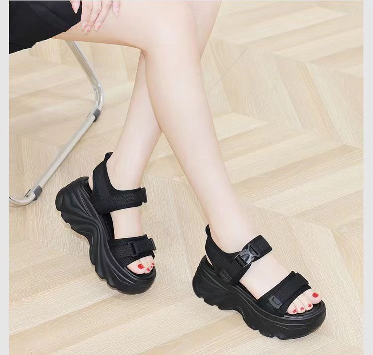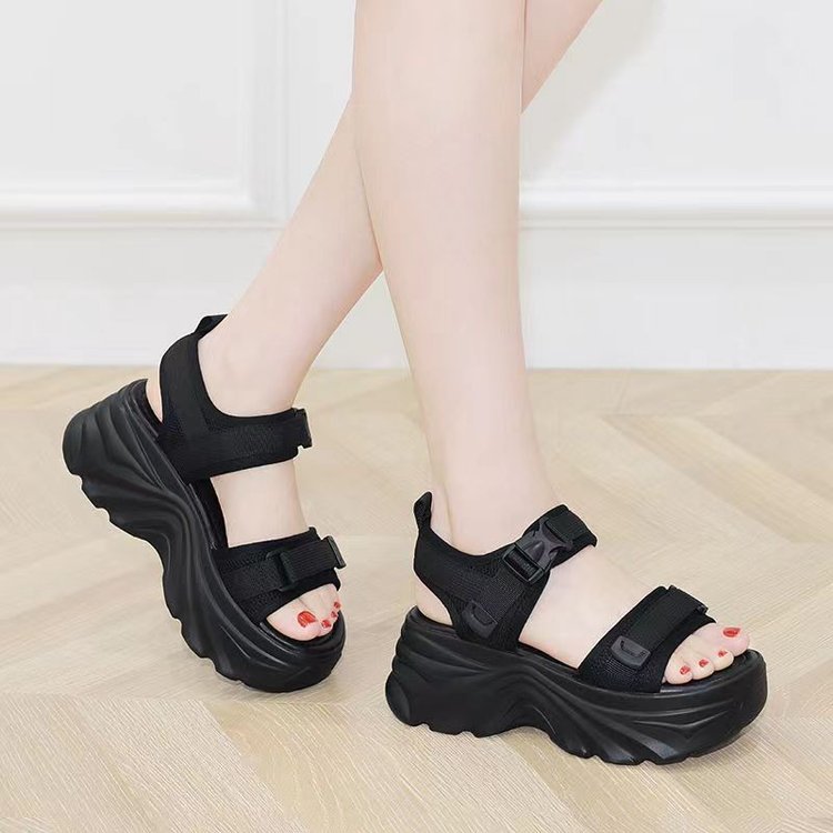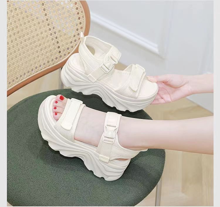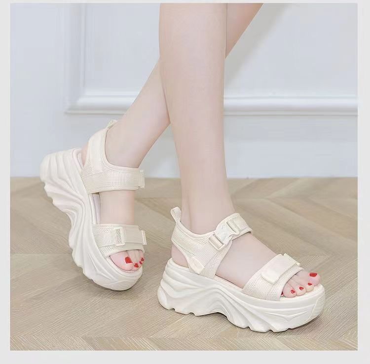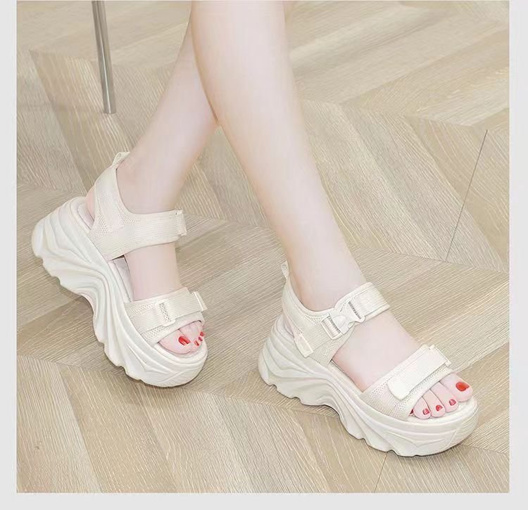 Спортивные сандалии для кексов женские 2024 летние новые корейские женские туфли на толстой подошве липучки случайные наклейки на каблуке увеличены сандалии