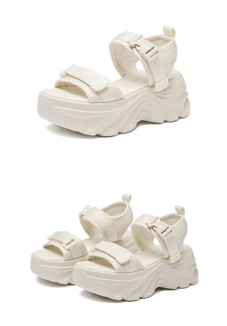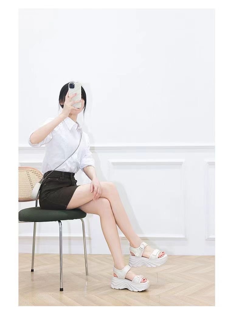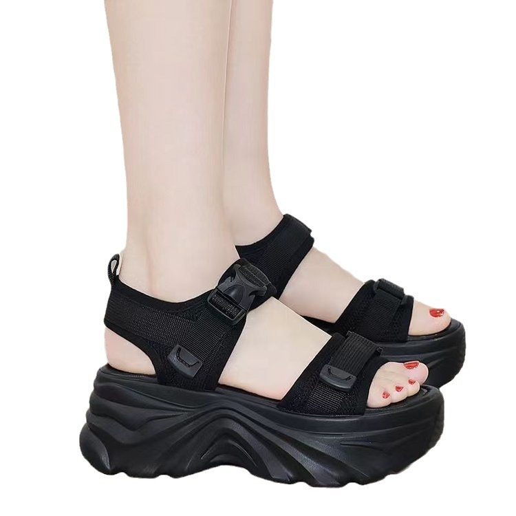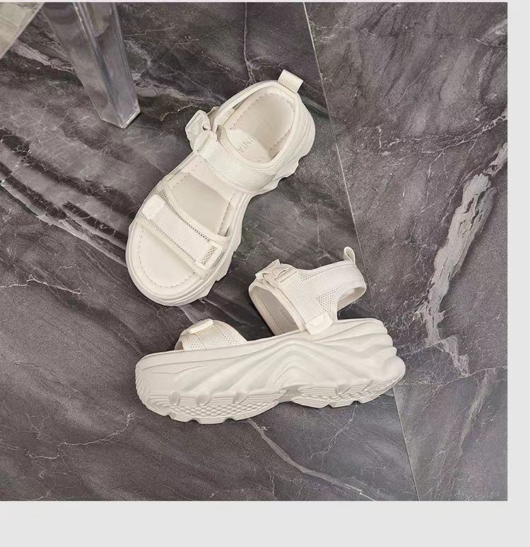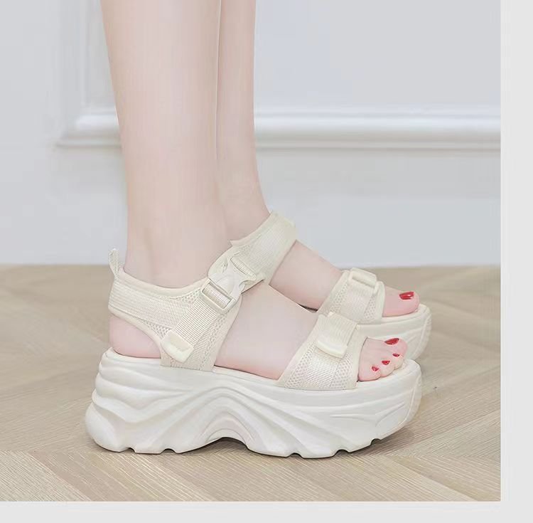 Спортивные сандалии для кексов женские 2024 летние новые корейские женские туфли на толстой подошве липучки случайные наклейки на каблуке увеличены сандалии
