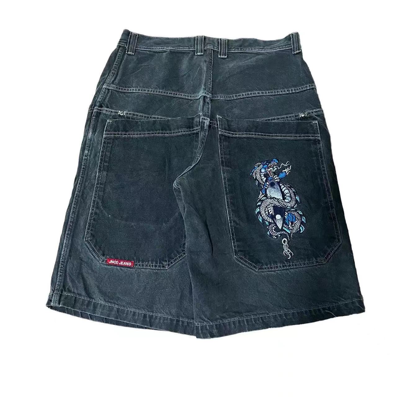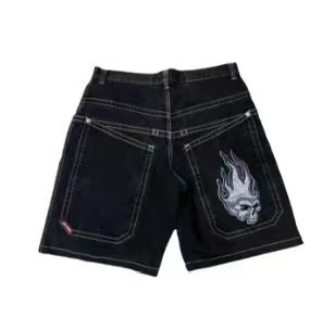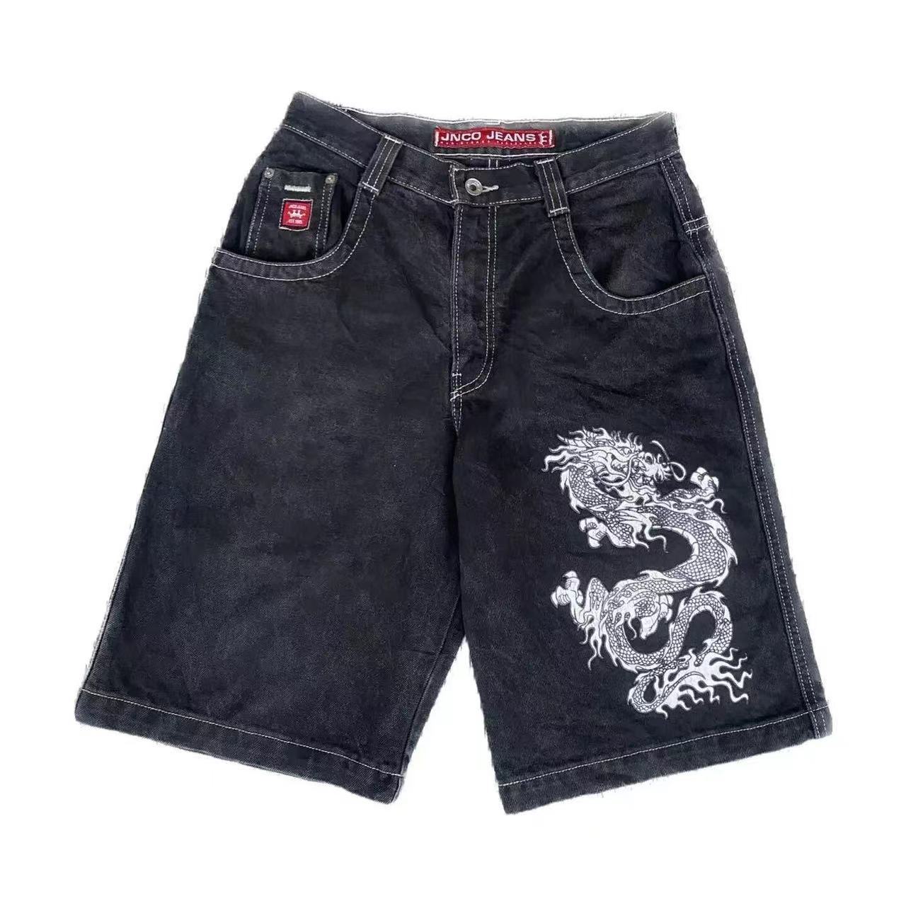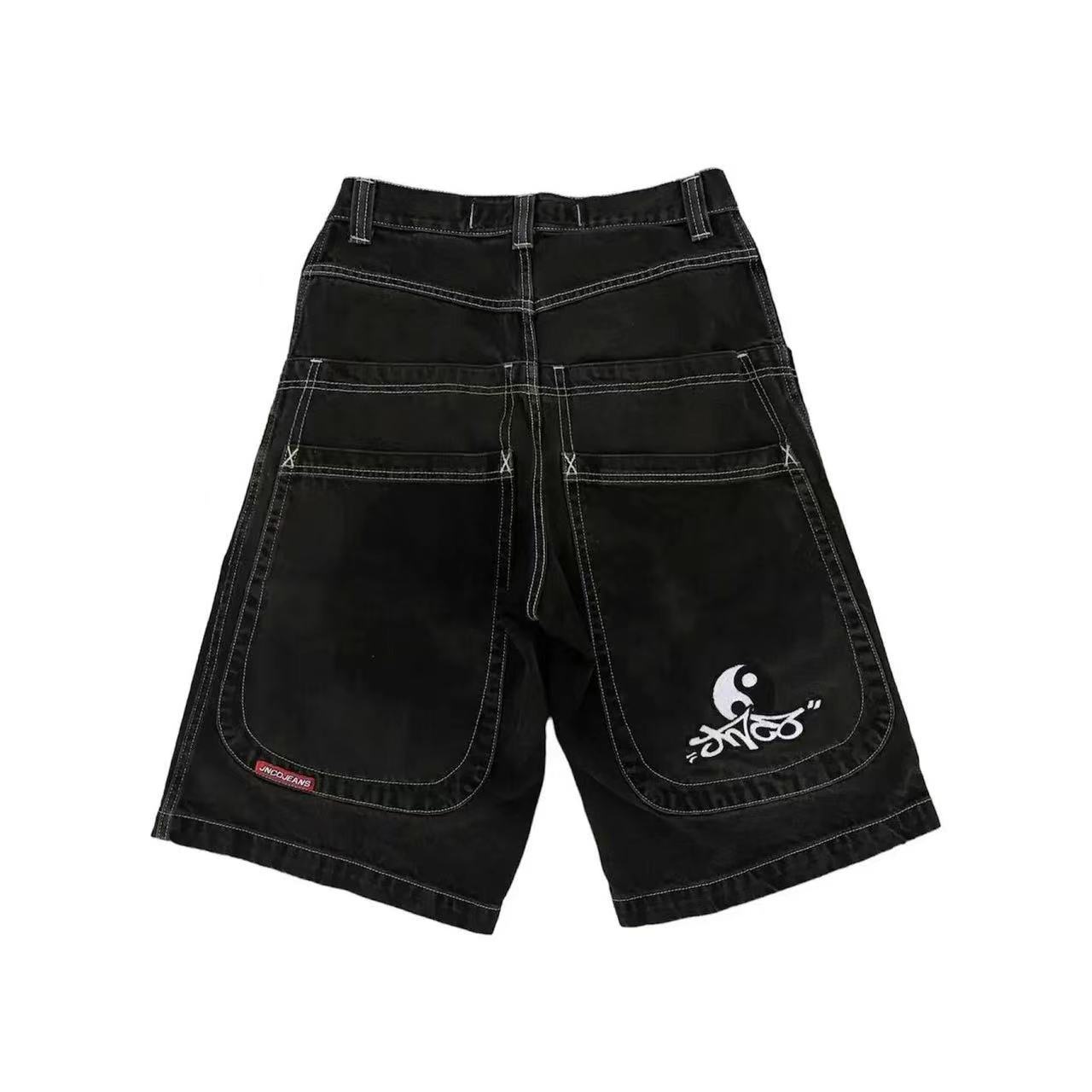 Трансграничная фабрика прямых продаж Y2k джинсовые шорты High Street хип-хоп ретро персонализированный принт черные свободные шорты