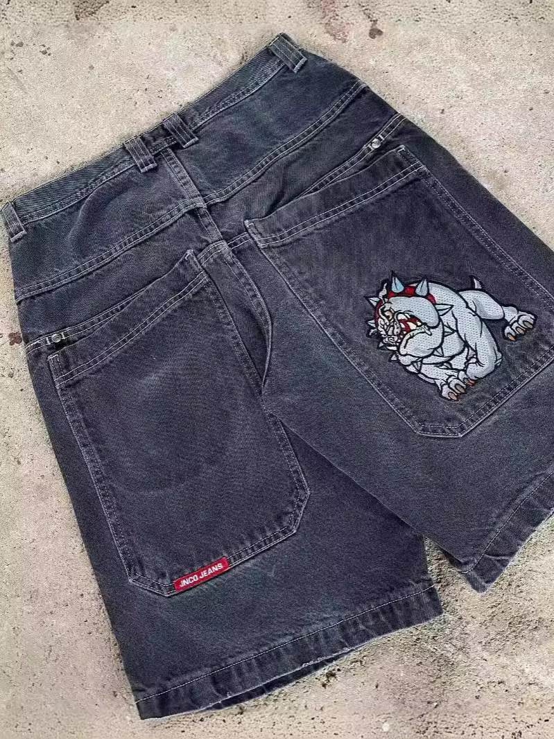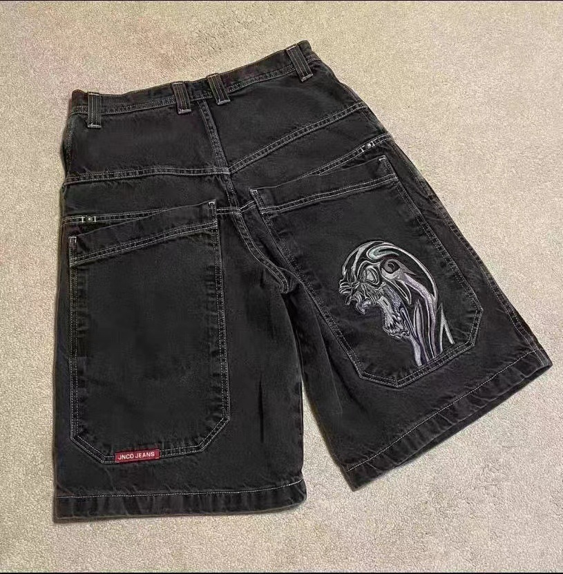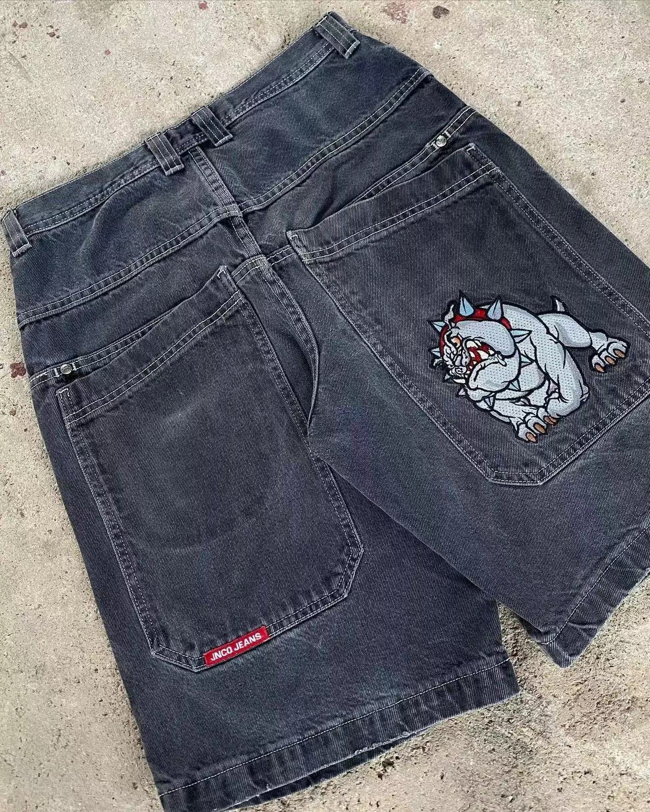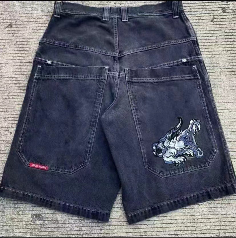 Трансграничная фабрика прямых продаж Y2k джинсовые шорты High Street хип-хоп ретро персонализированный принт черные свободные шорты