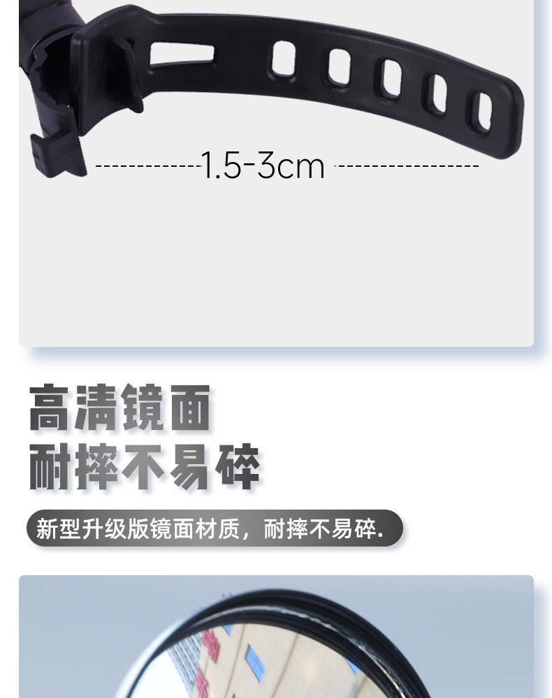 3.每款都有3维360度调节轴向,理论上后视镜面反射光线无盲区,不过如果装在车把中间,骑行时身体或手臂可能会挡住视线哦。